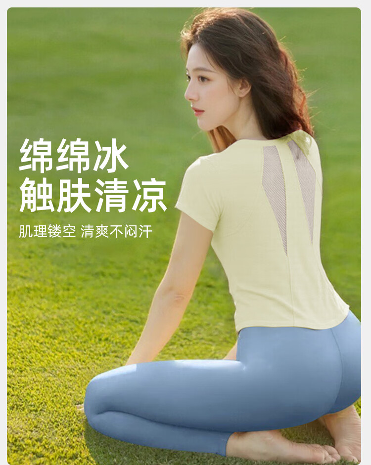 Shuangxiu Dopamine Yoga Wear Suit for Women 2025 New High-end Pilates Beautiful Fitness Sports Short-Sleeved Top Summer Sprout Green Top XL 120-135