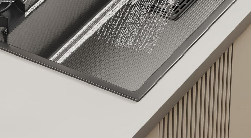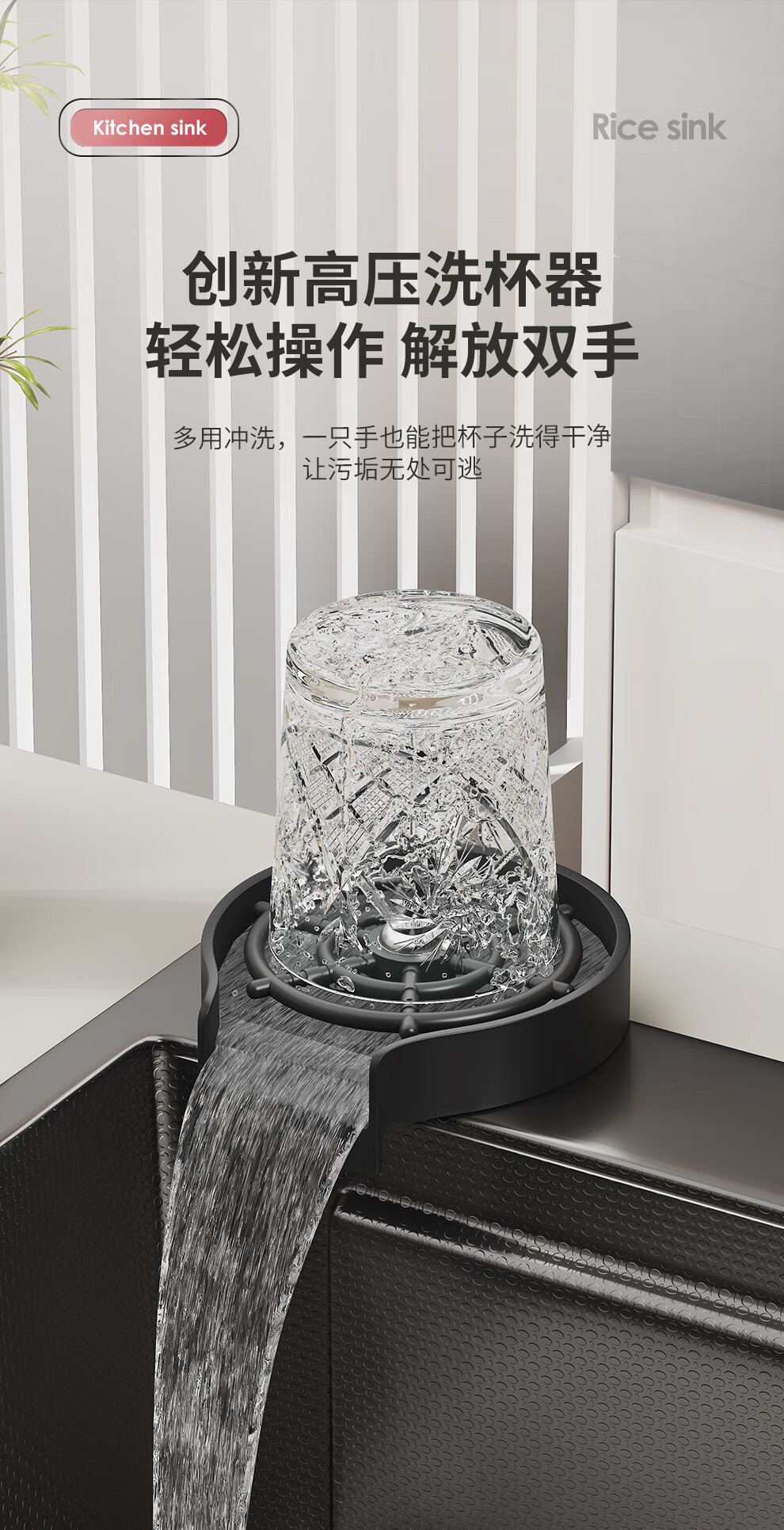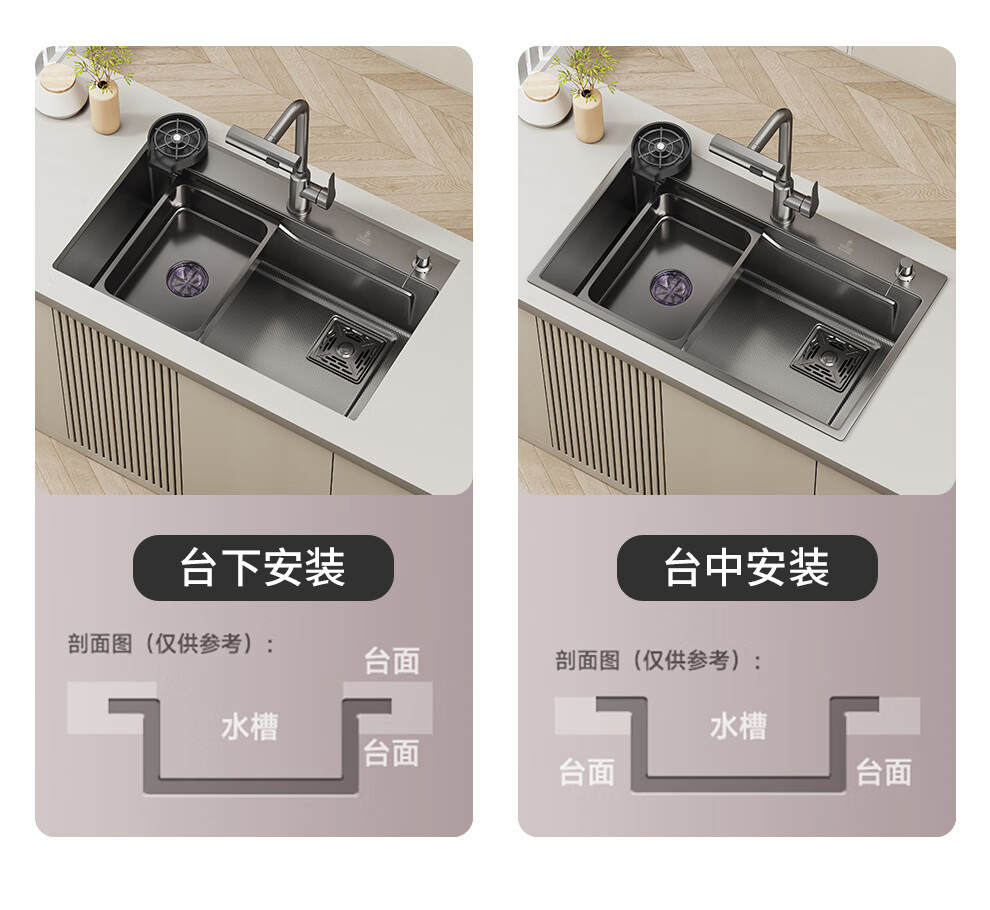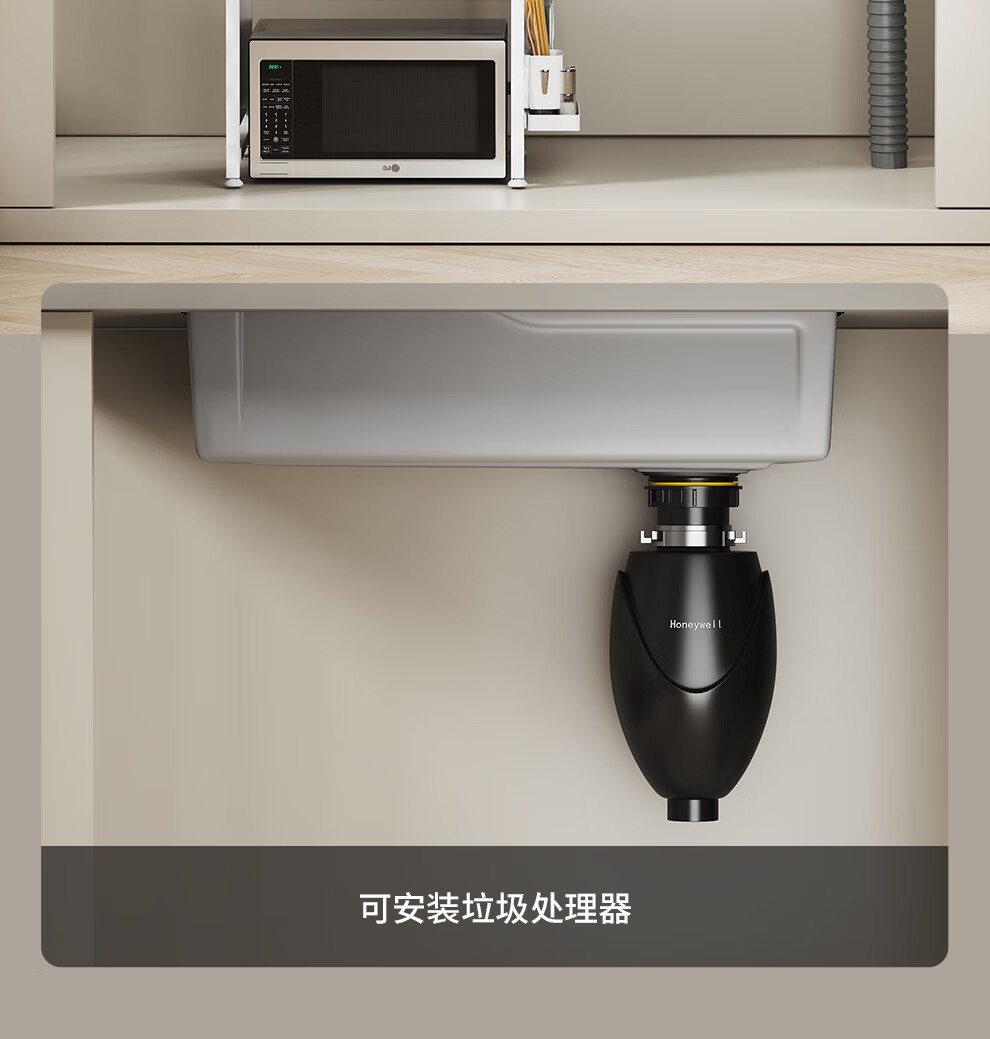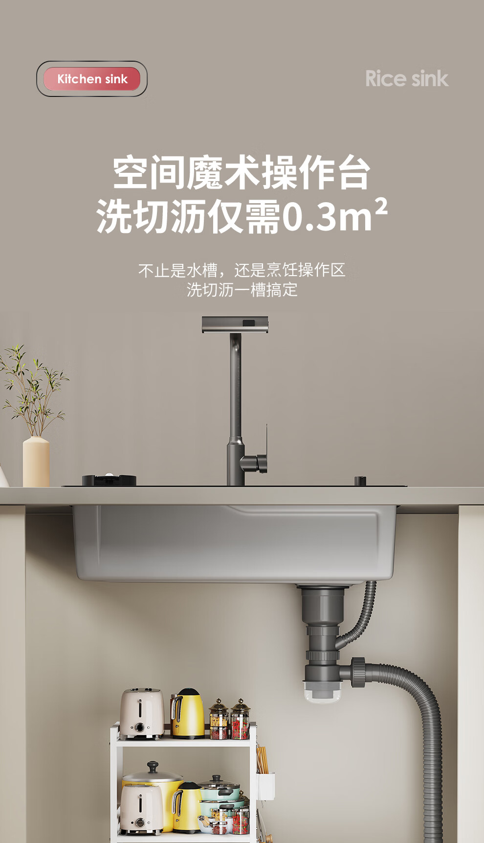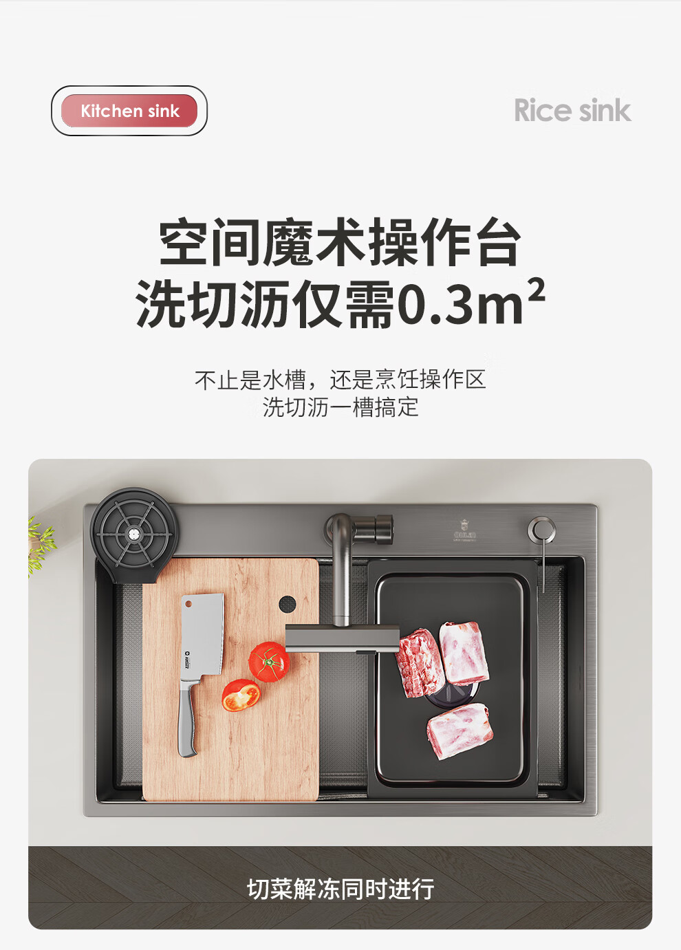 OULIN sink gun gray large single tank kitchen SUS304 stainless steel handmade basin sink sink vegetable sink table middle and lower rice grain embossed 68*45+ small waist pull-out faucet cover