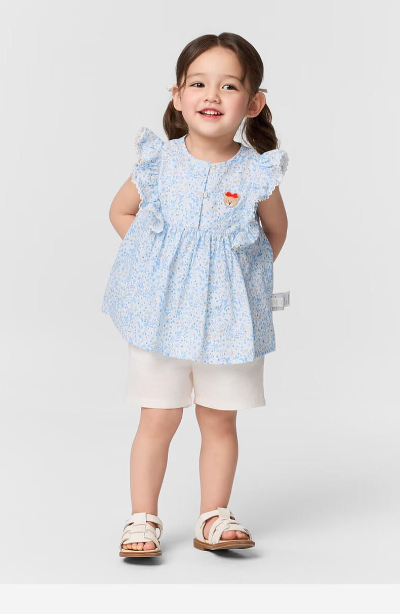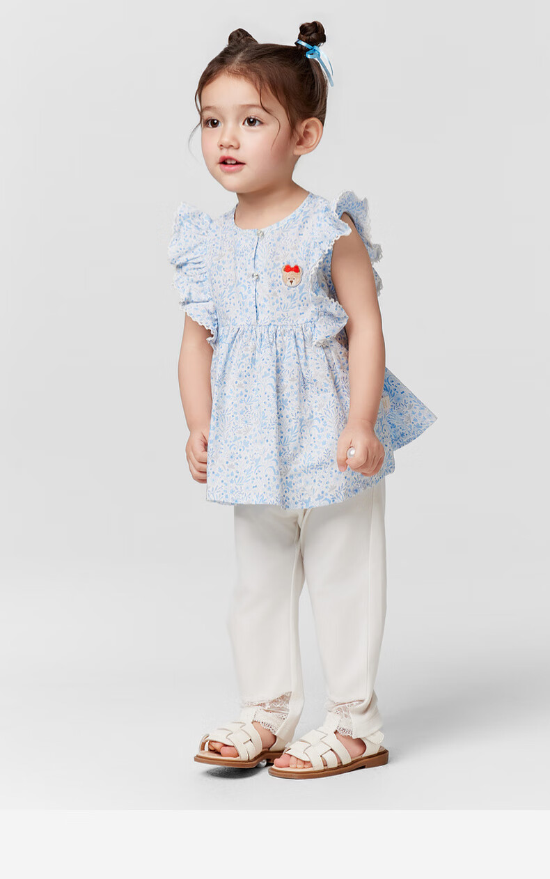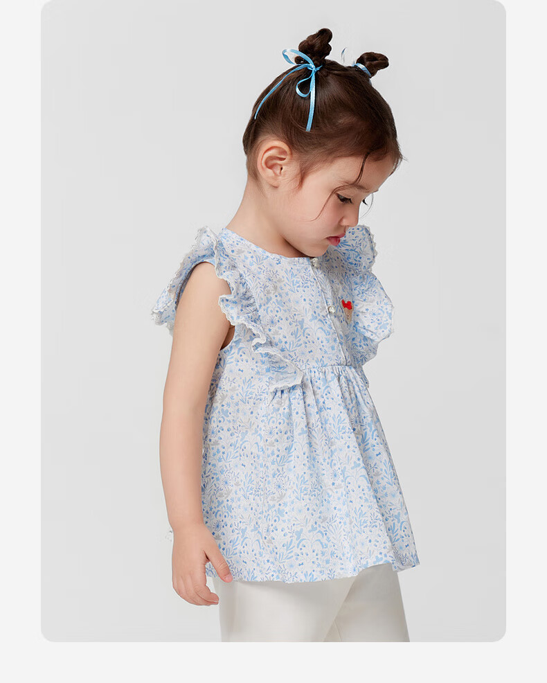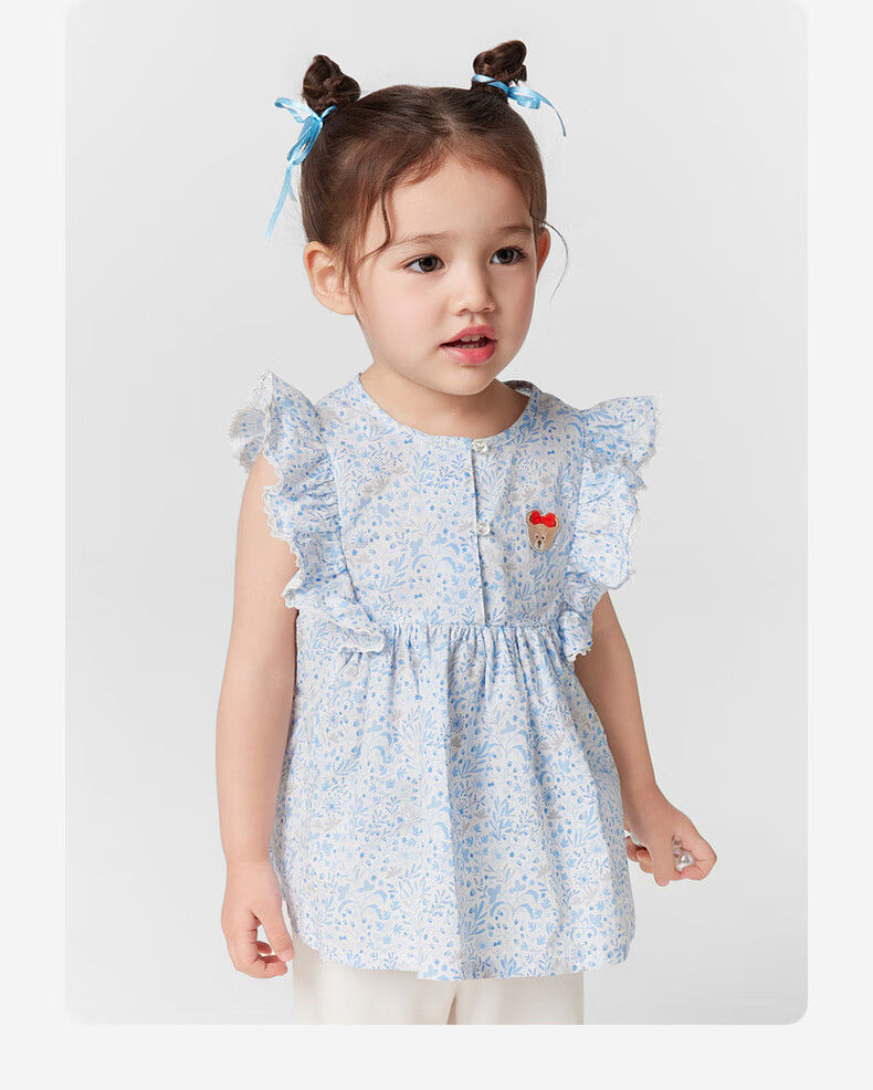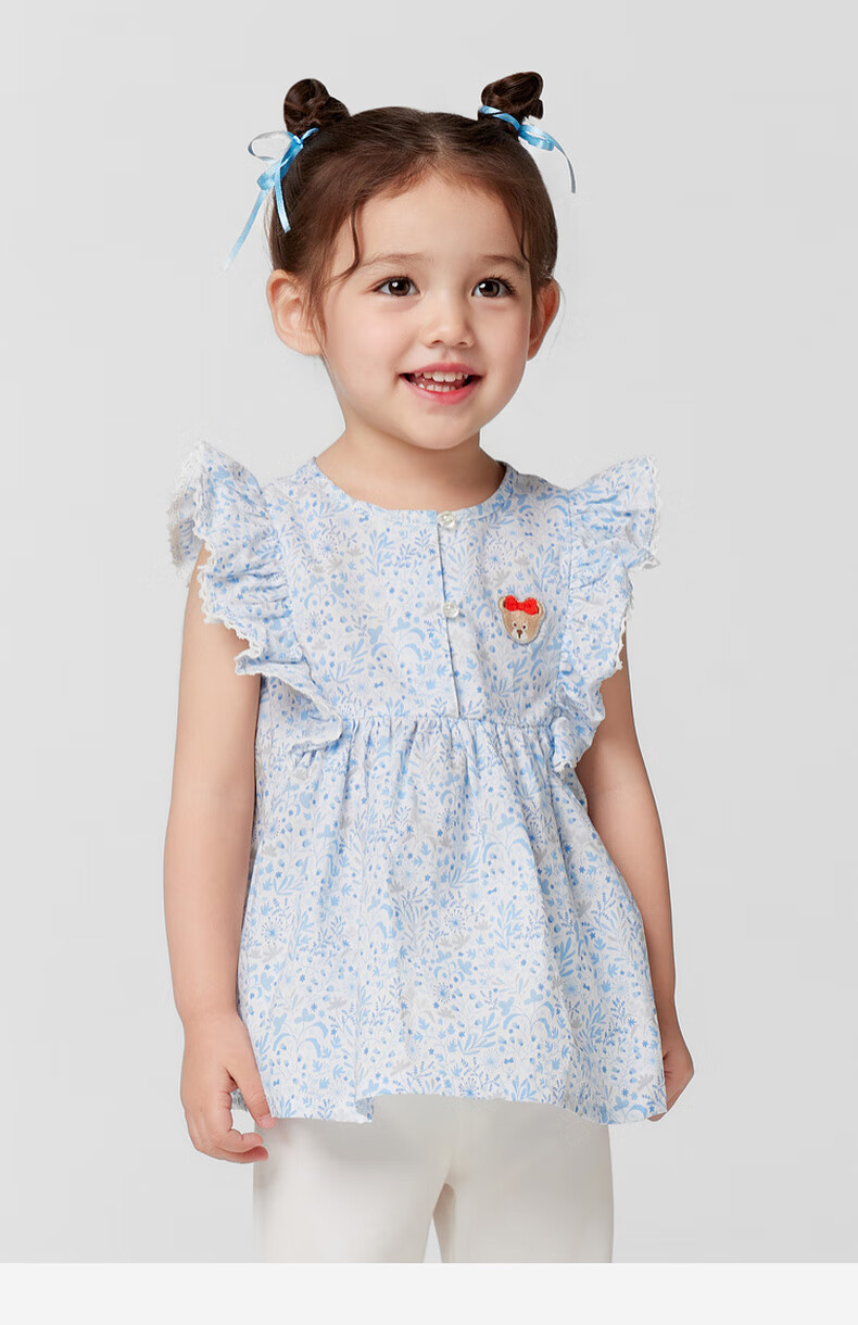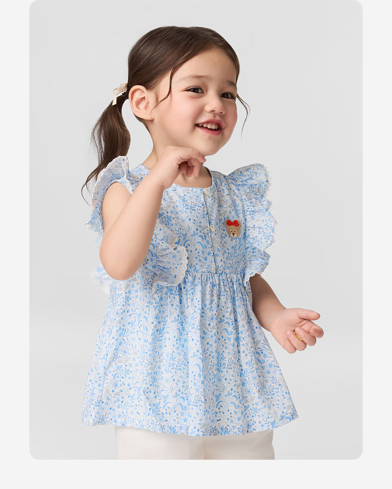 PawinPaw shopping mall same style cartoon bear children's clothing 25 spring and summer new baby girl A-line shirt Blue blue/50 110