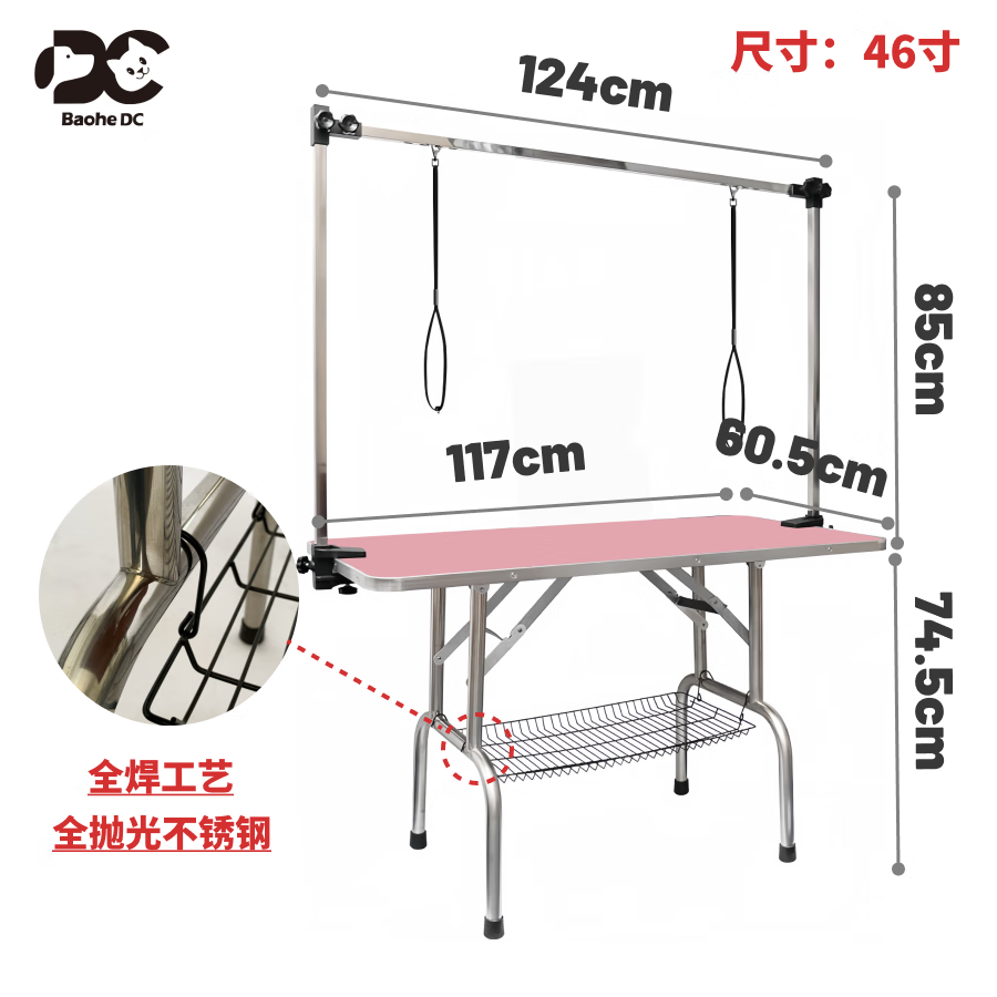 BAOHE DC Pet Grooming Table Stainless Steel Folding Grooming Table Non-slip Waterproof Pet Shop Dog Hair Cutting Bathing Blow Hair Black 36 Inch 91*60cm Stainless Steel Single Arm