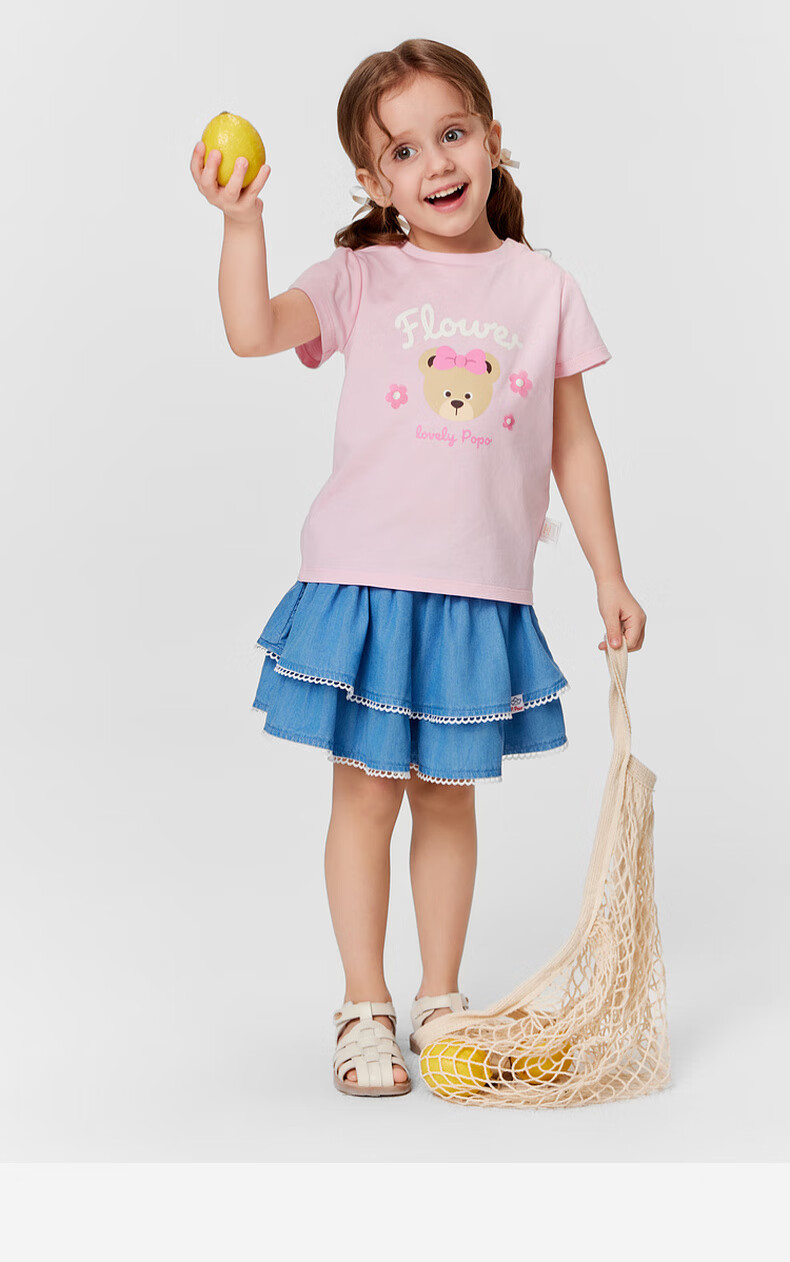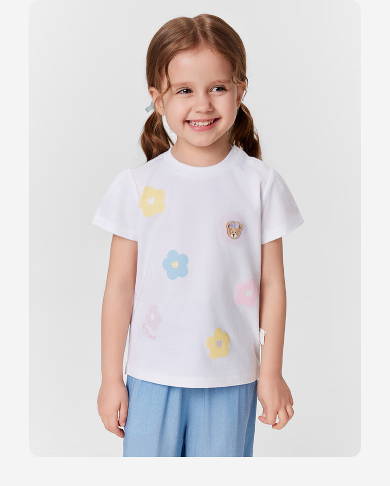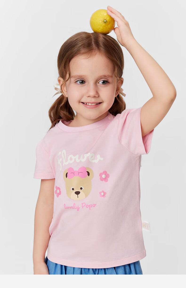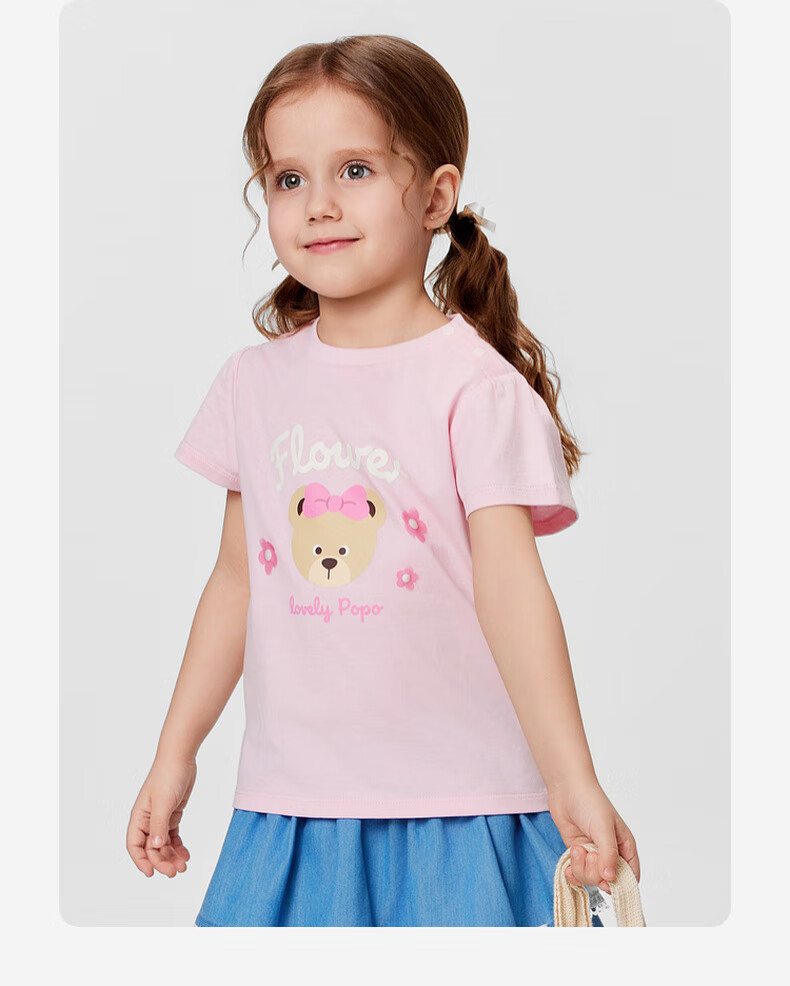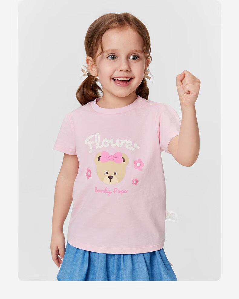 PawinPaw 5A antibacterial cartoon bear children's clothing 25 spring and summer new baby girl printed short-sleeved T-shirt Pink/25 110