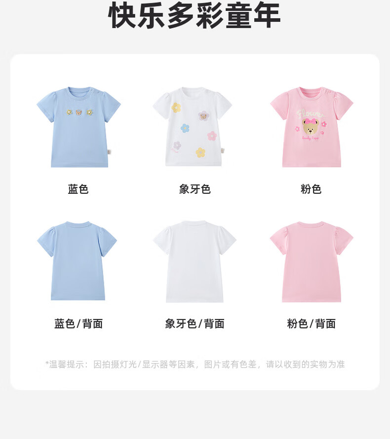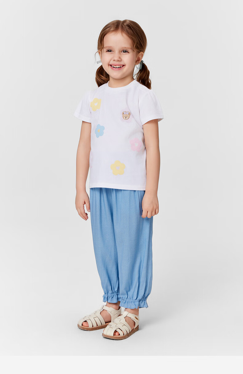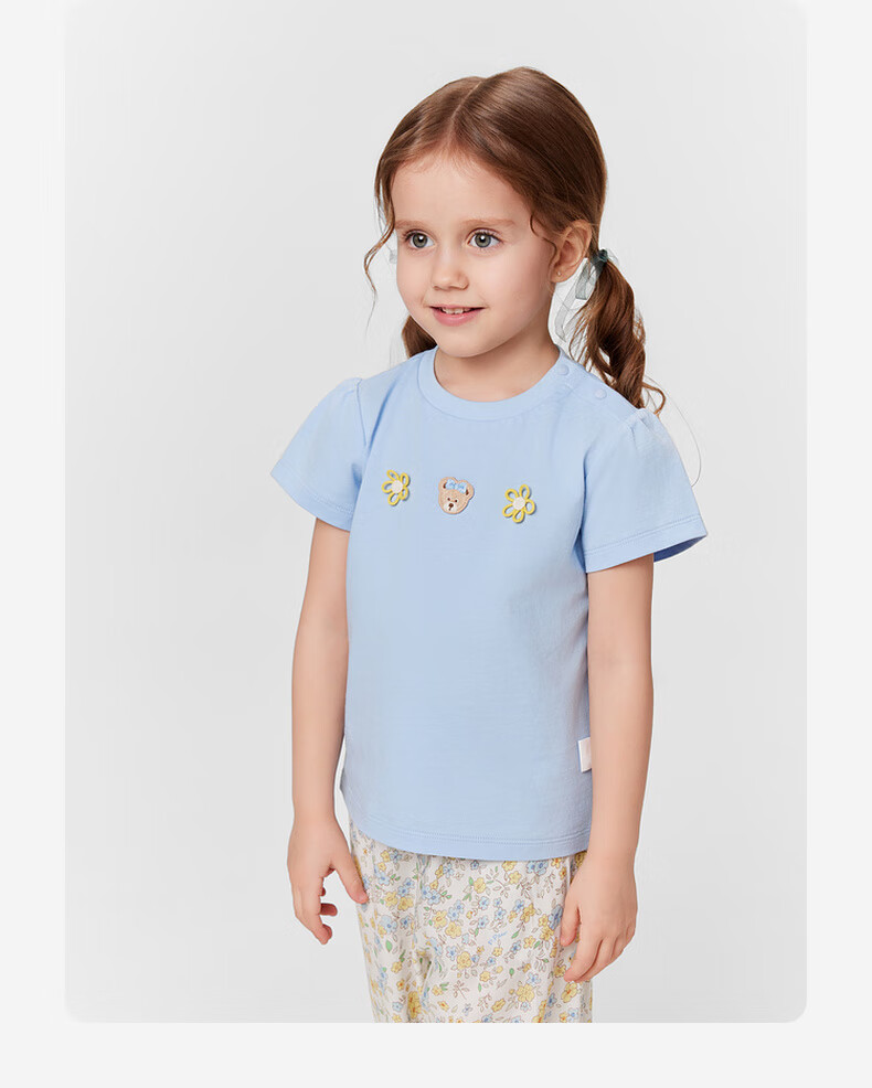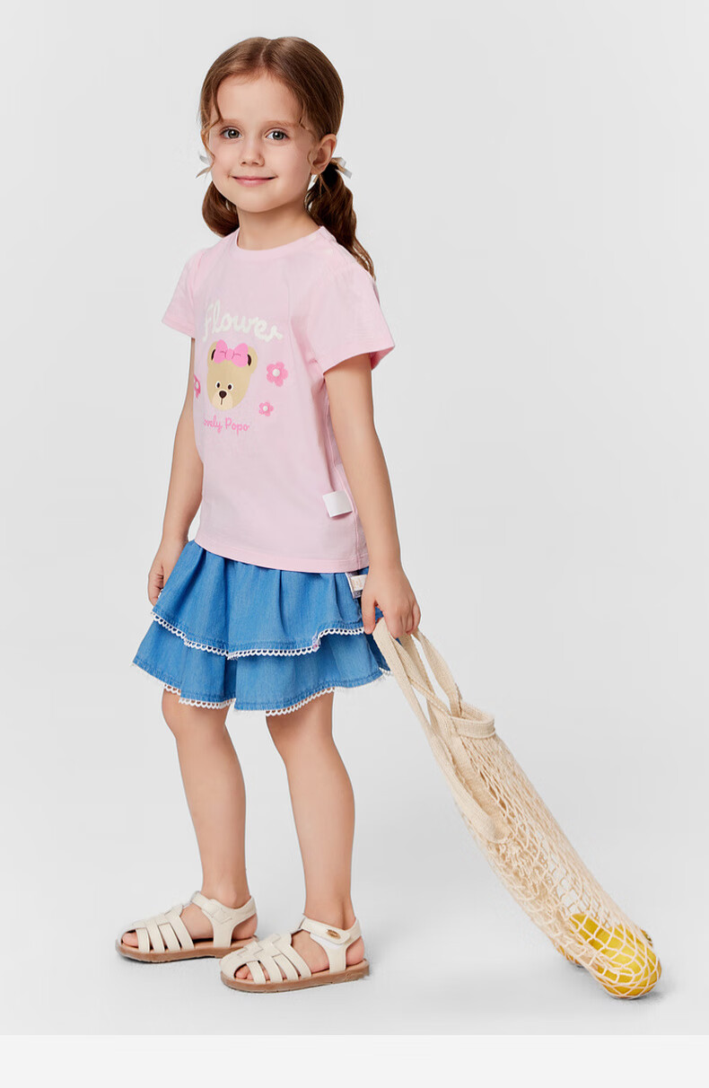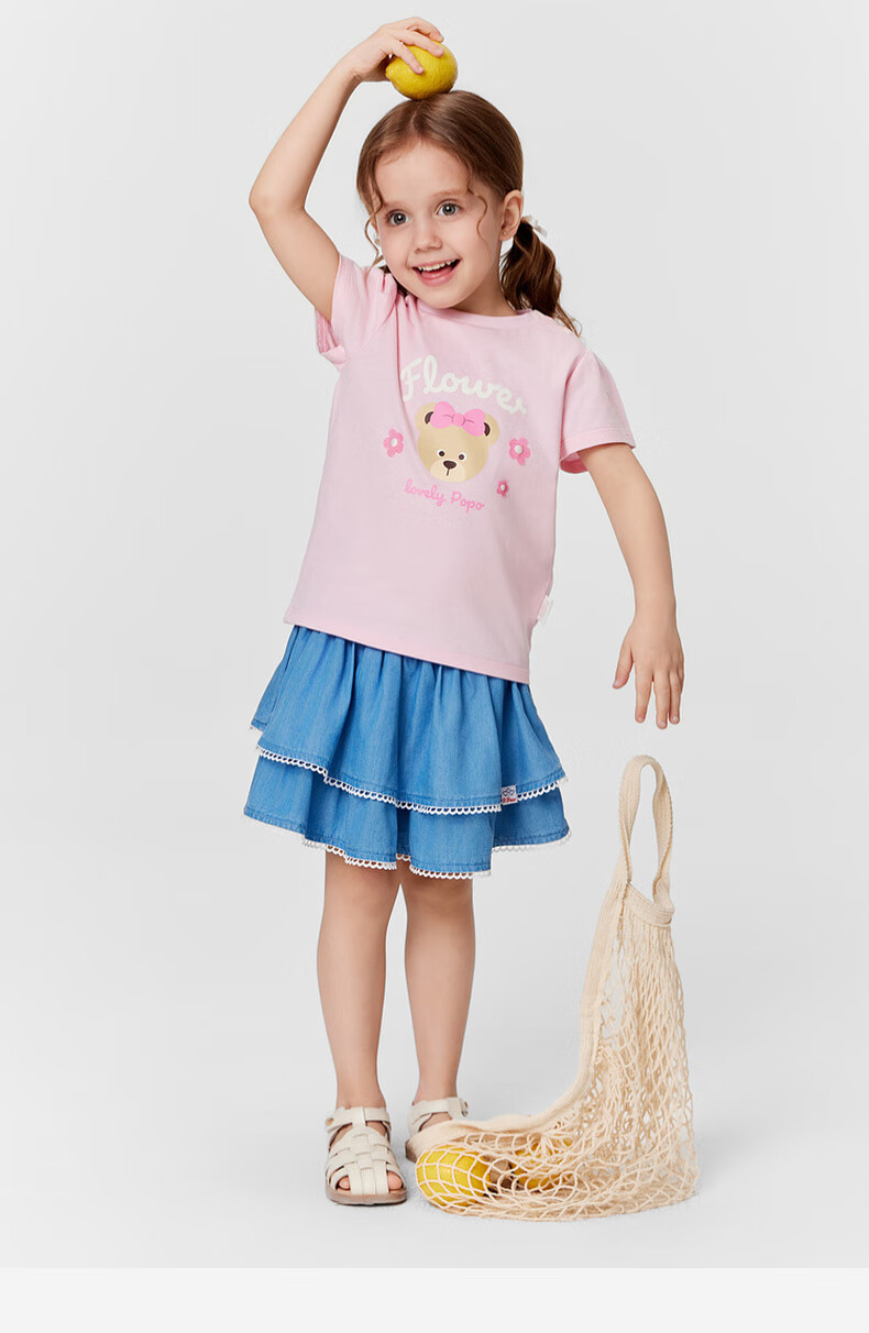 PawinPaw 5A antibacterial cartoon bear children's clothing 25 spring and summer new baby girl printed short-sleeved T-shirt Pink/25 110