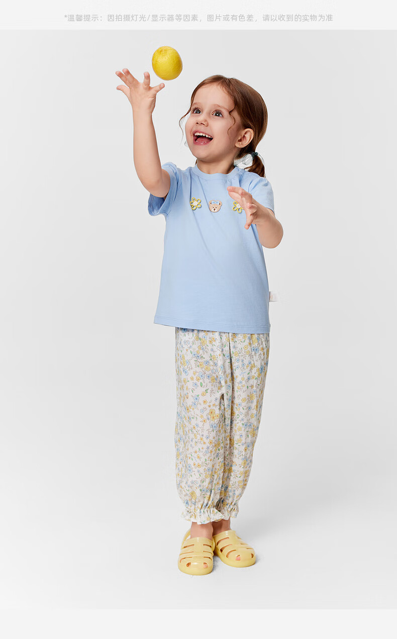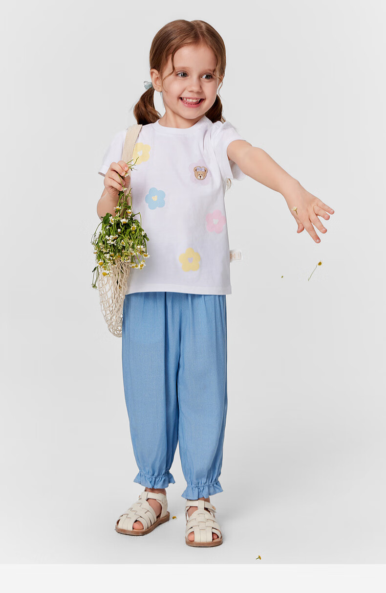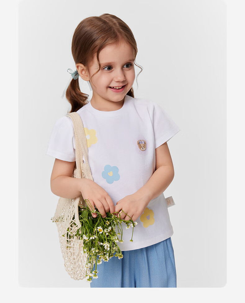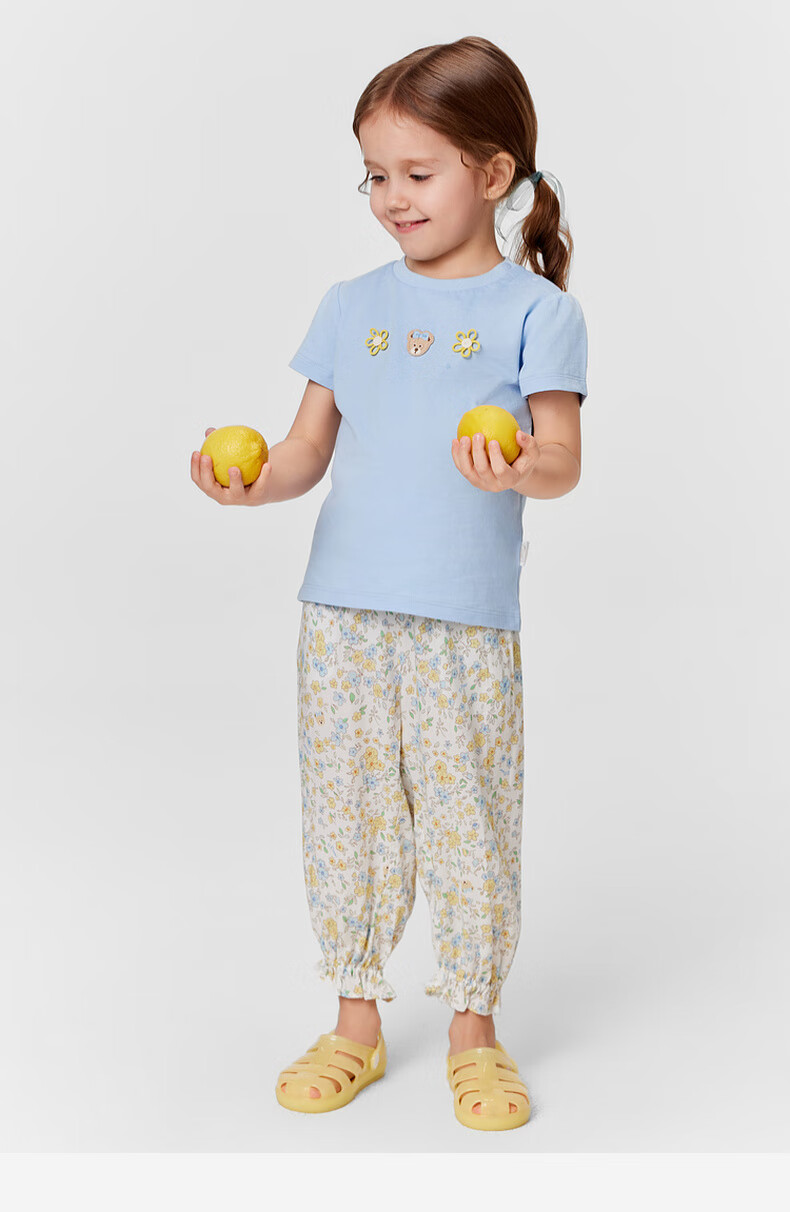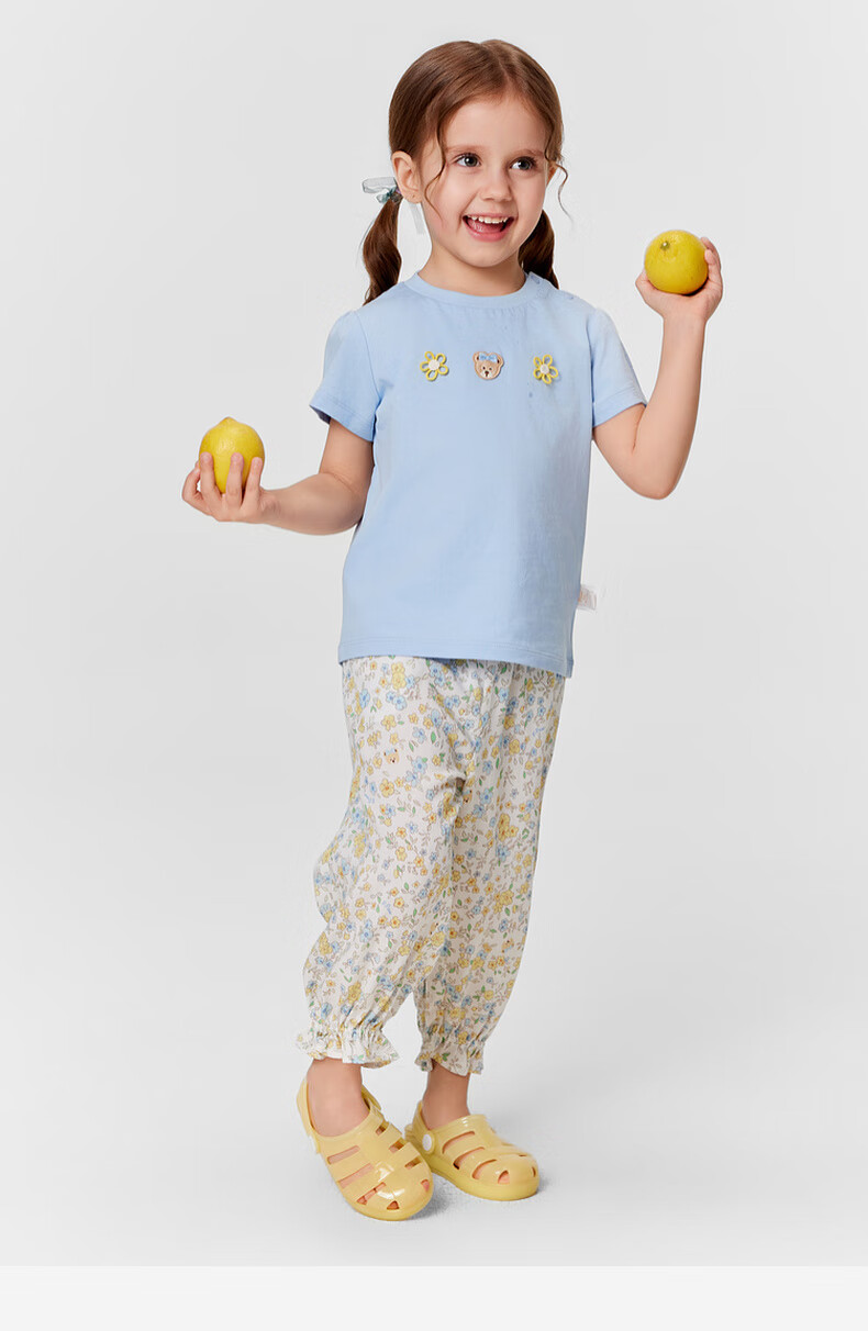 PawinPaw 5A antibacterial cartoon bear children's clothing 25 spring and summer new baby girl printed short-sleeved T-shirt Pink/25 110
