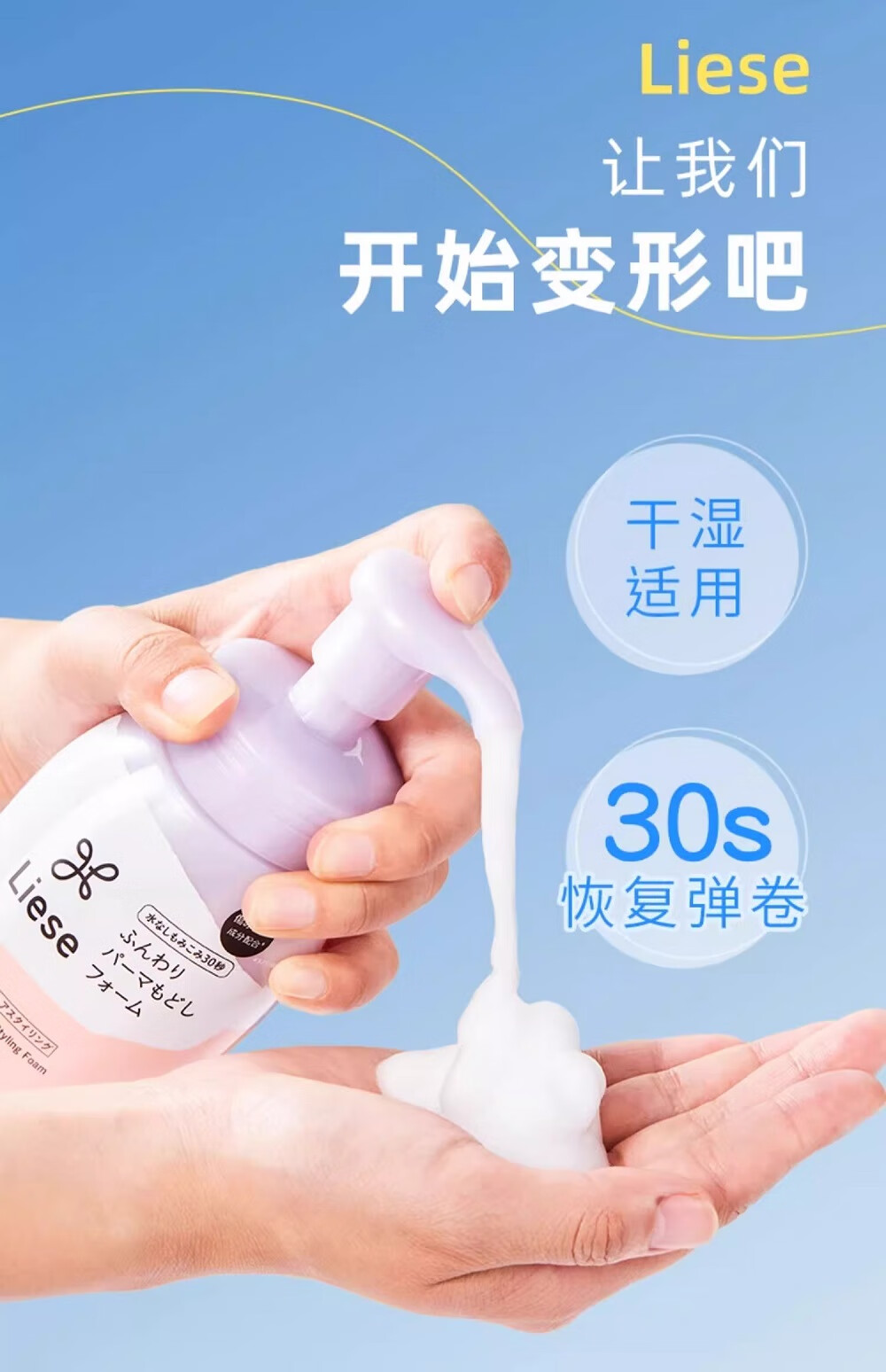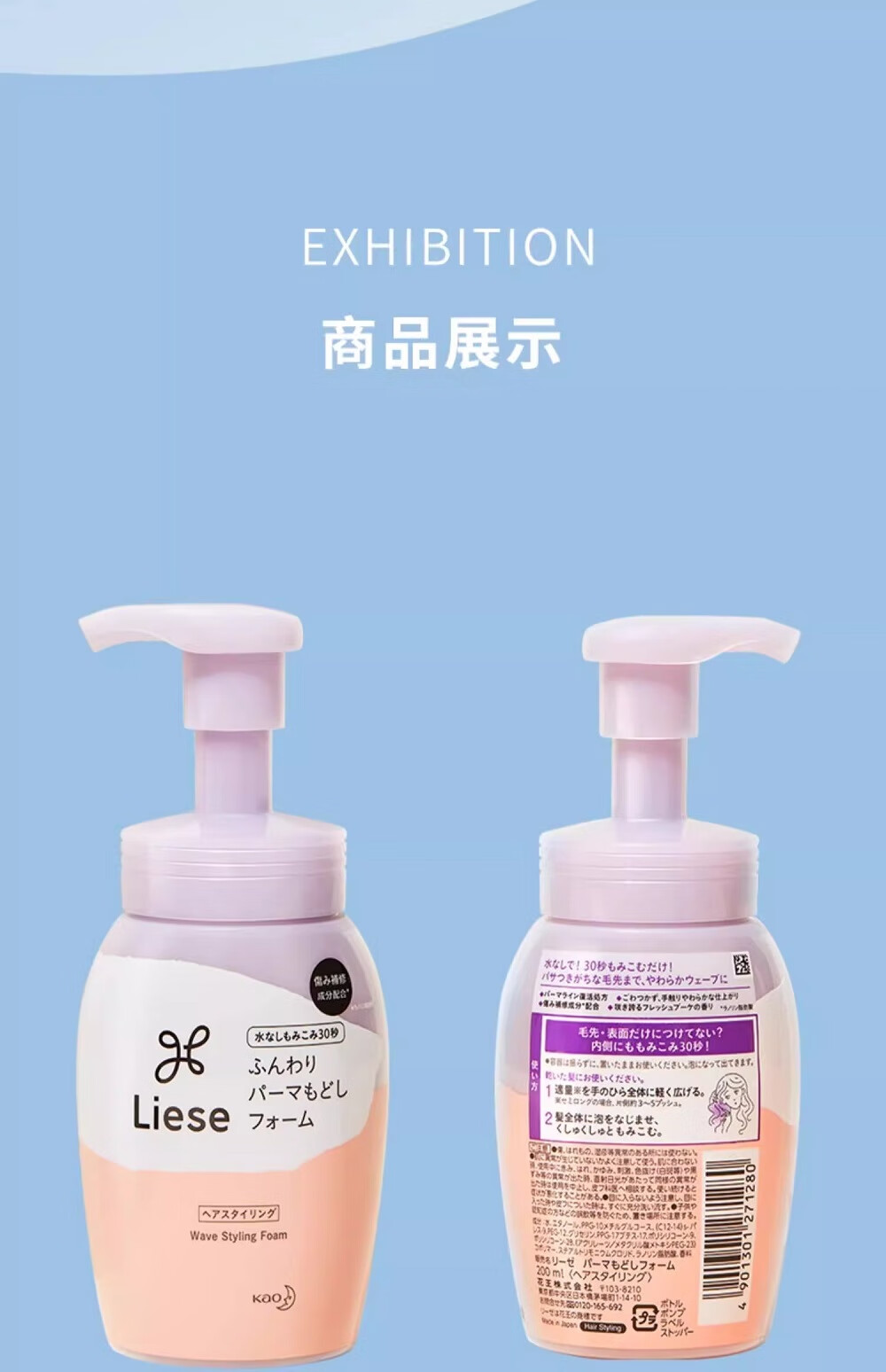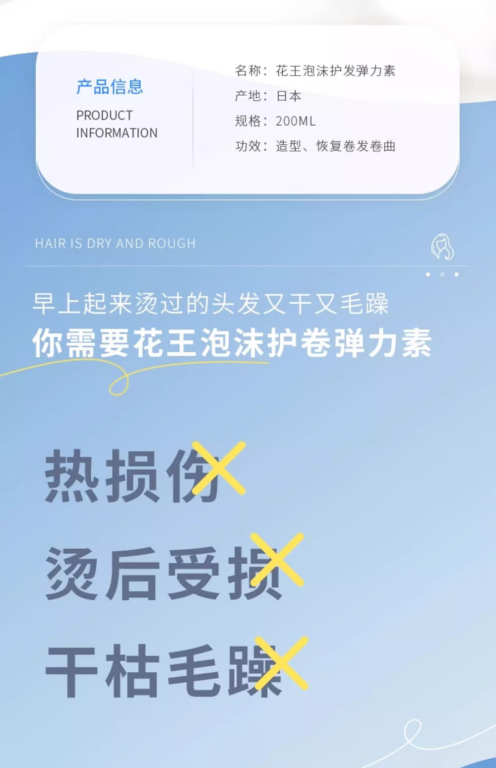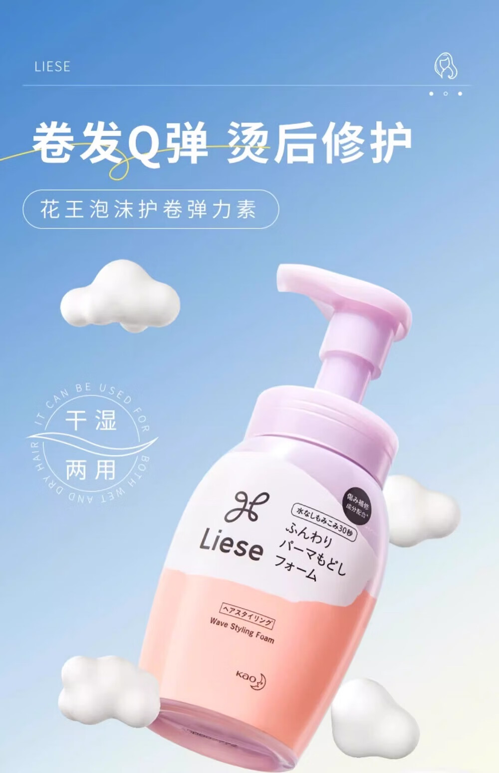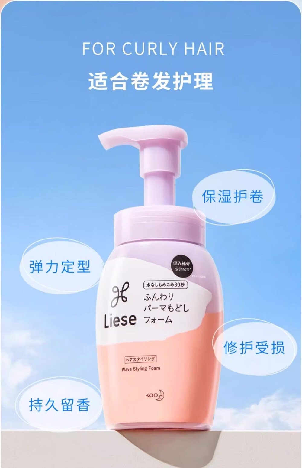 Kao (KAO) elastic hair conditioner for women's curly hair moisturizing curling anti-frizz perm care artifact moisturizing and styling soft and dry foam type perm care 200ml