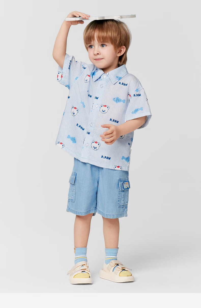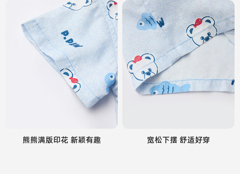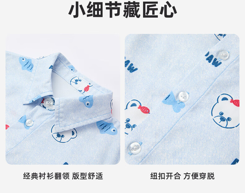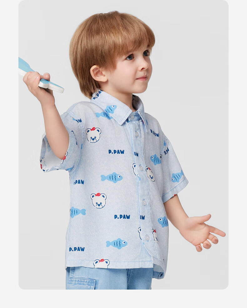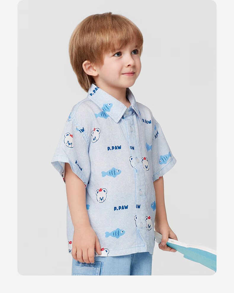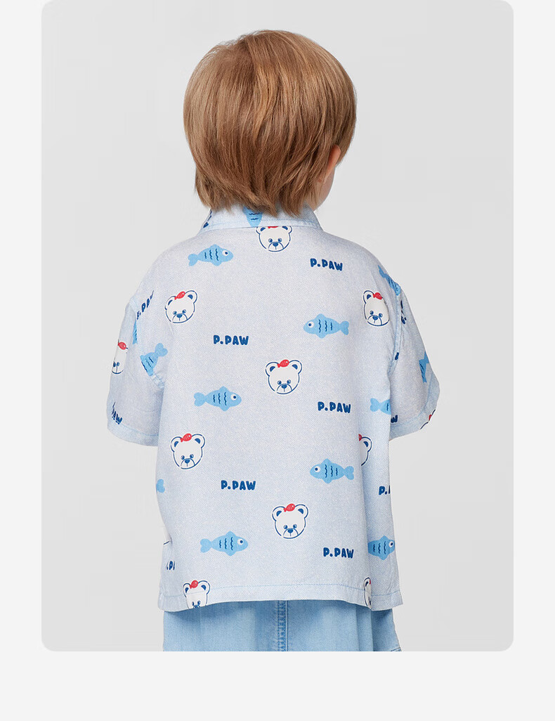 PawinPaw cartoon bear children's clothing 25 spring and summer new baby boy lapel printed shirt comfortable and versatile Blue blue/50 100
