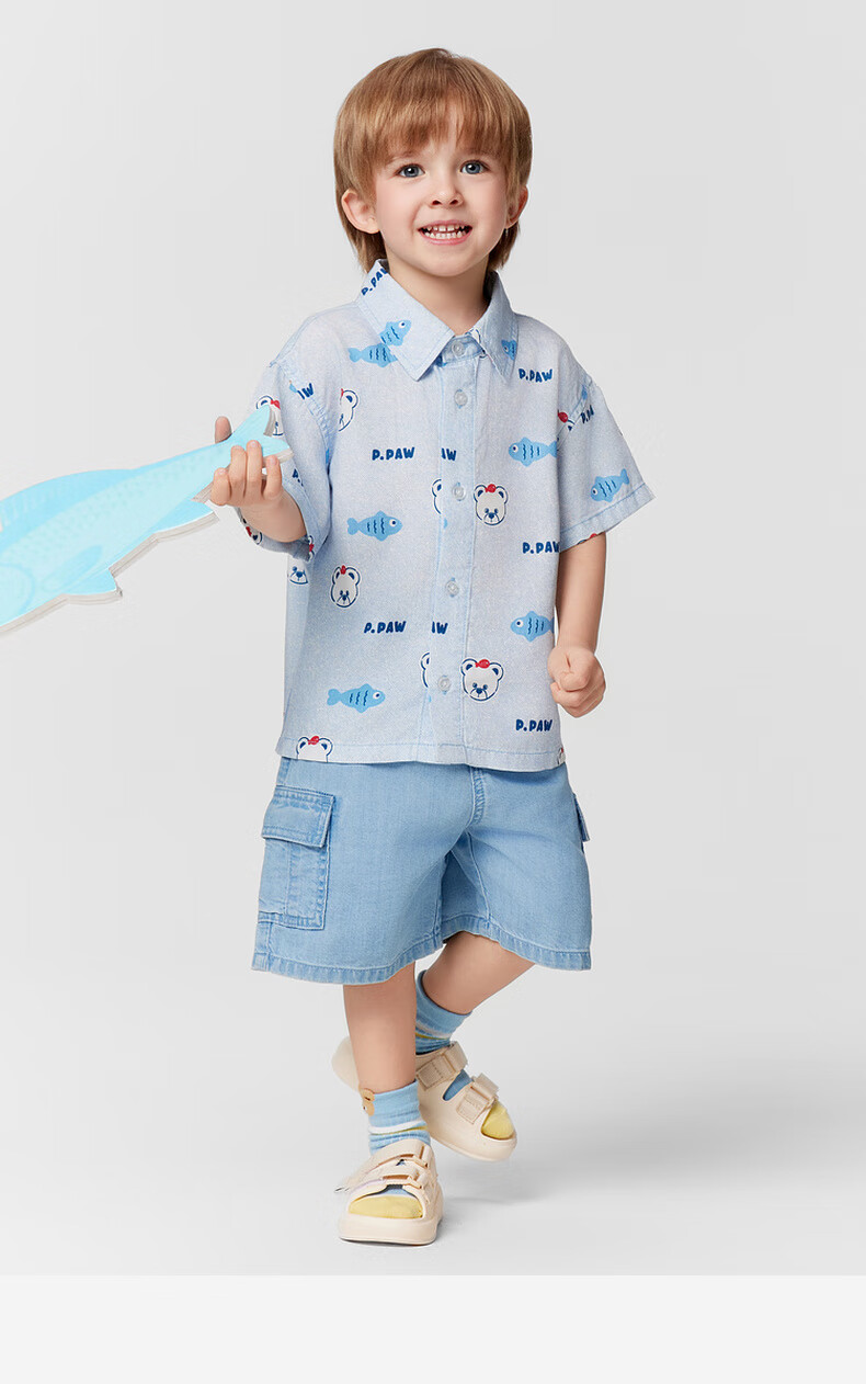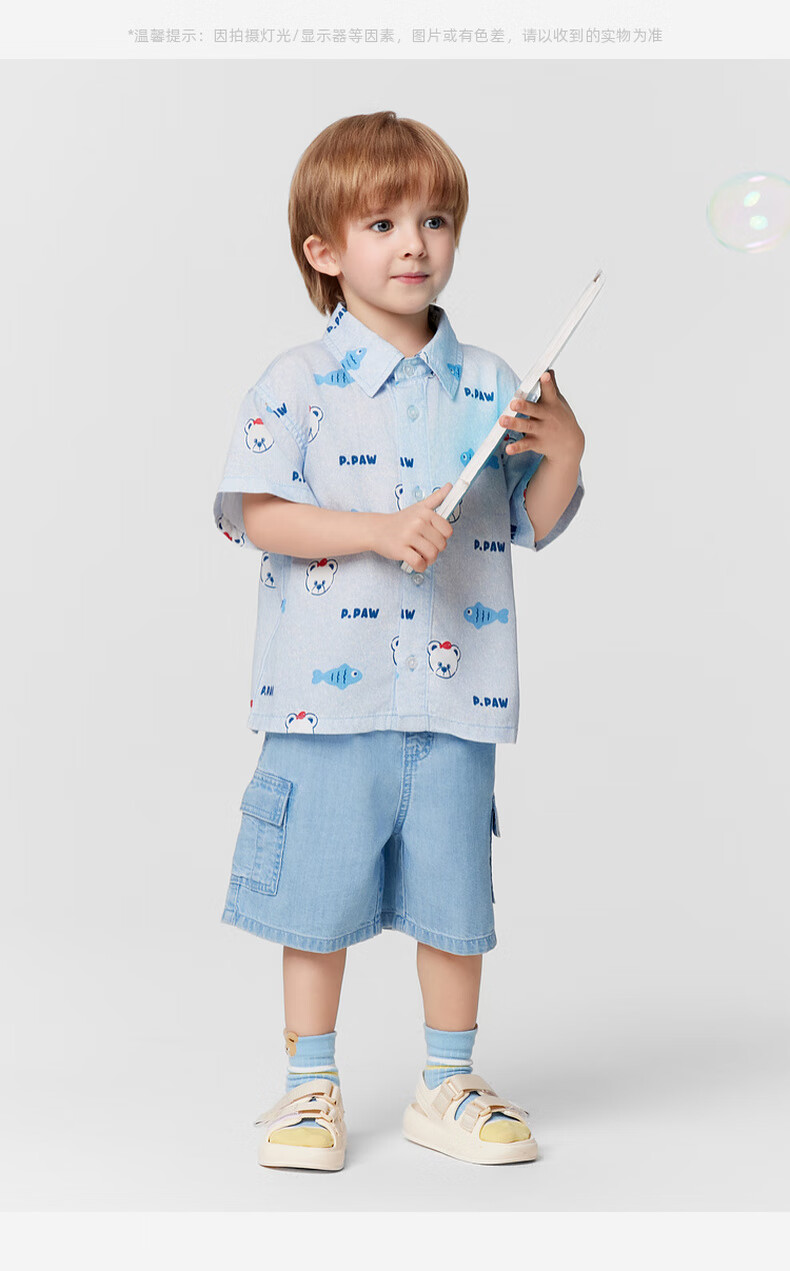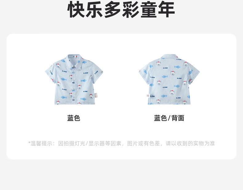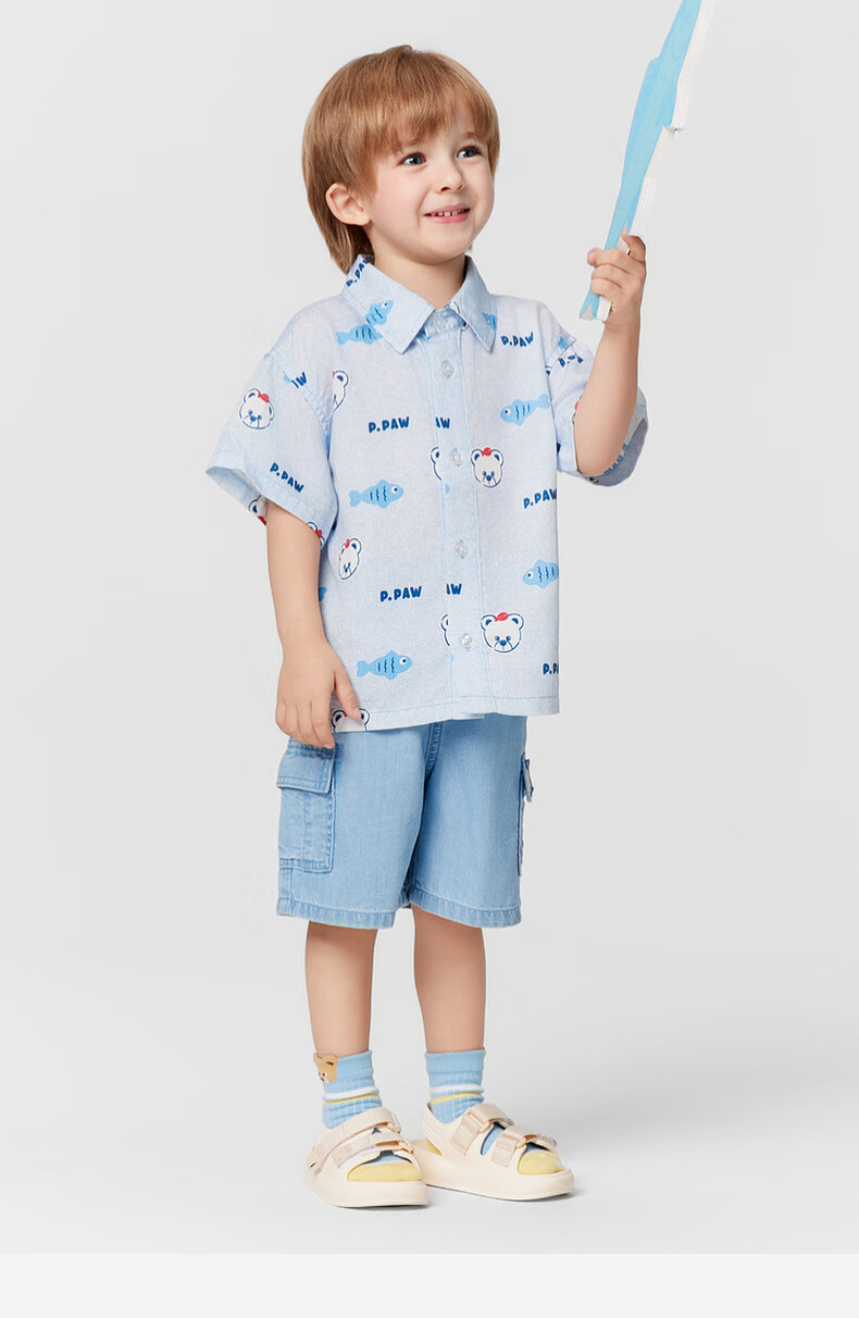 PawinPaw cartoon bear children's clothing 25 spring and summer new baby boy lapel printed shirt comfortable and versatile Blue blue/50 100