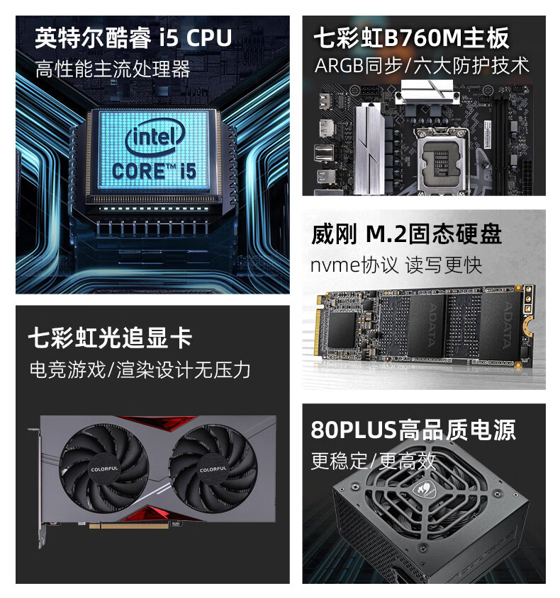 Colorful i5 14600KF/12600KF RTX5060Ti/5060 cardless sea view room desktop assembly computer console game e-sports flagship store diy complete machine delta tile seven 14600KF+5060T8+500G+16G 16G