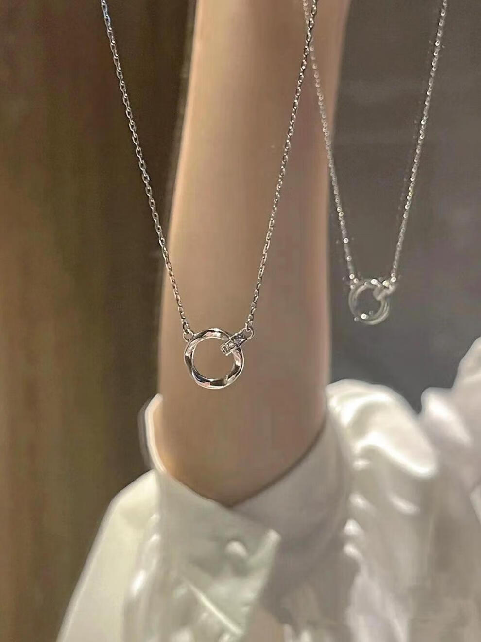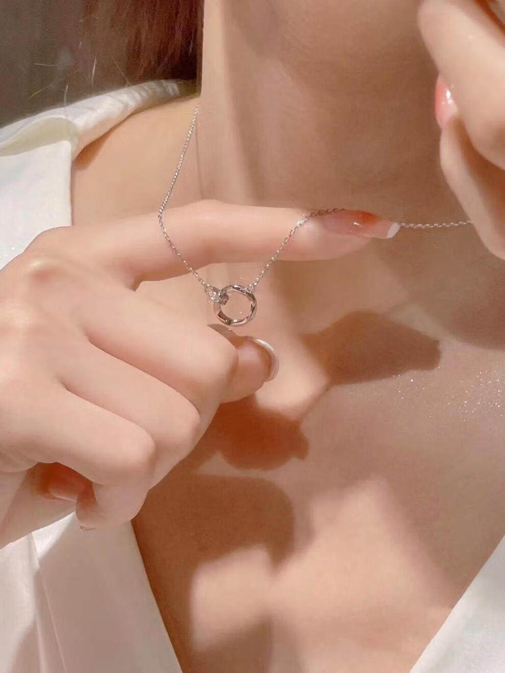 KZD Old Phoenix 999 pure silver Möbius ring necklace for women, light luxury interlocking clavicle chain ins chain, Möbius necklace for women, same style without Specifications