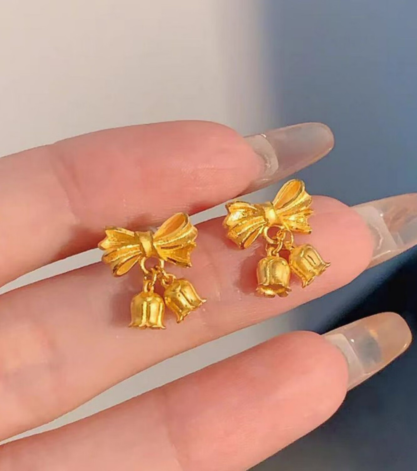 Xi welcomes Chinese Valentine's Day, gold double c earrings for women, lily of the valley flower 18k gold earrings for girlfriend, sweetheart bow earrings