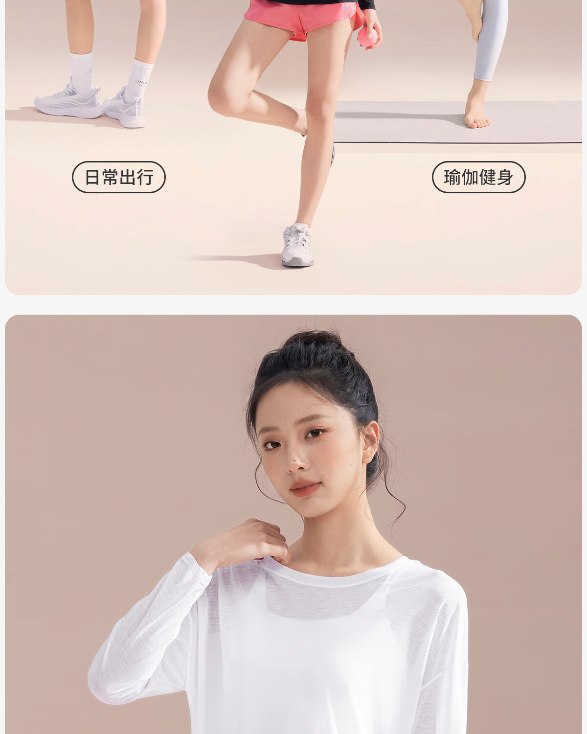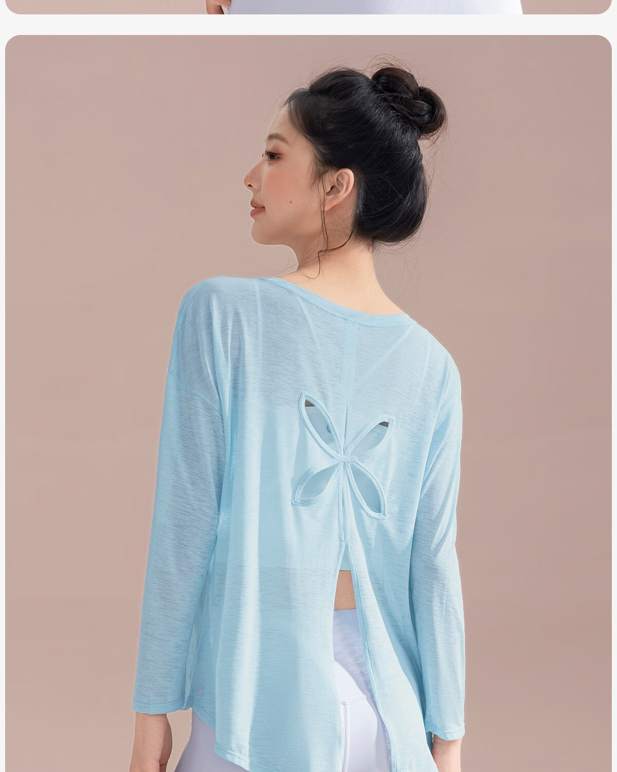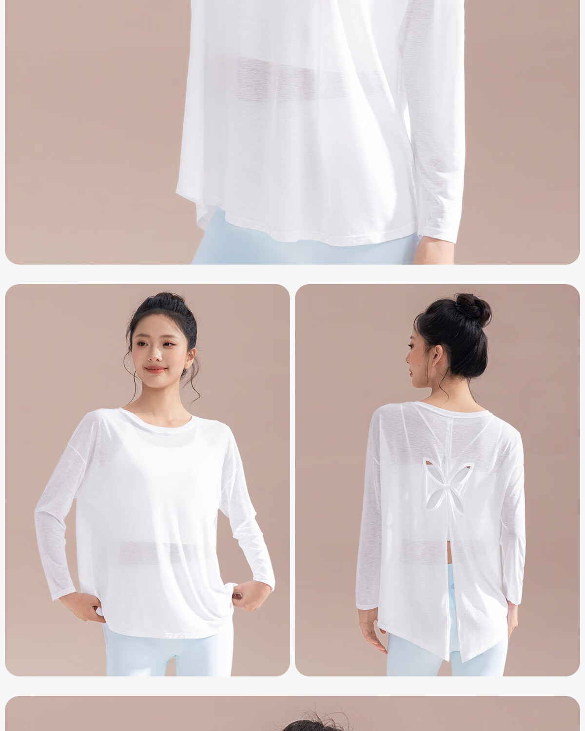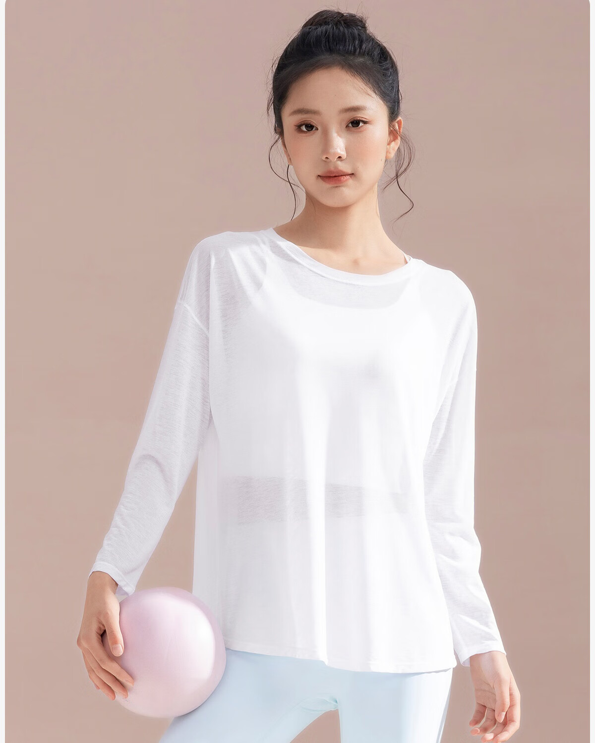 361 361 yoga clothes for women 2025 new style high-end loose-fitting long-sleeved long-sleeved Pilates fitness sports blouse white slub gauze blouse light as if nothing XL