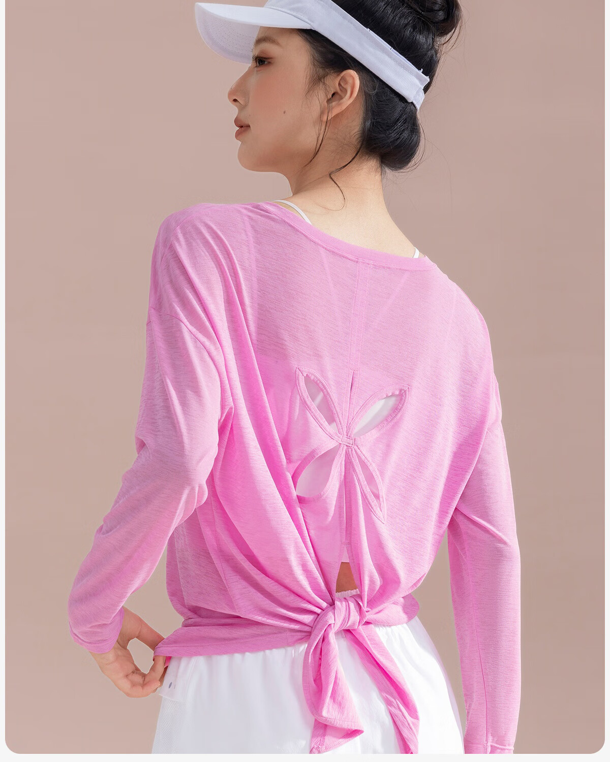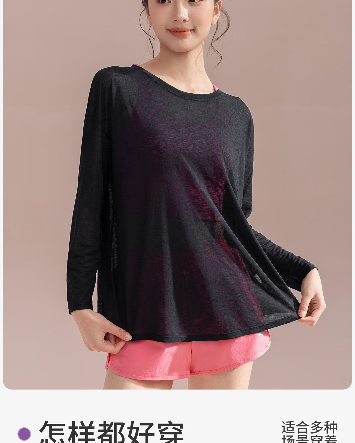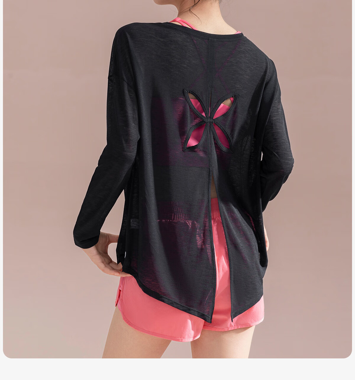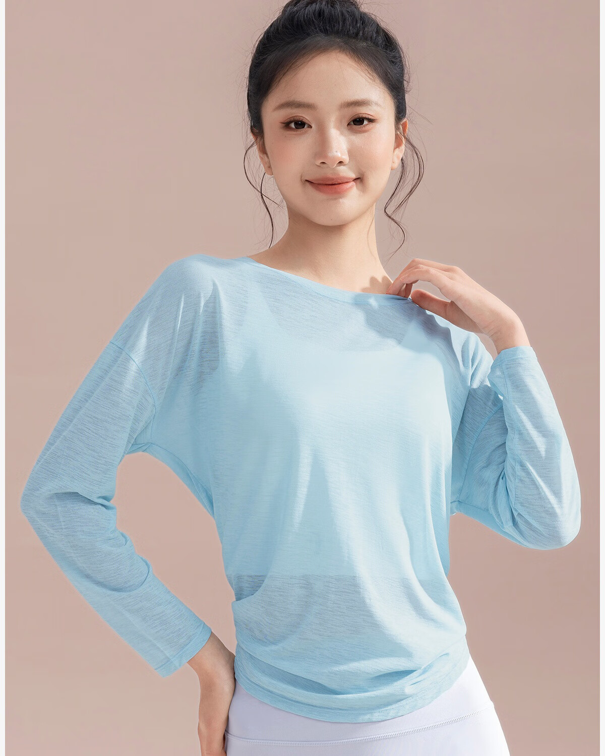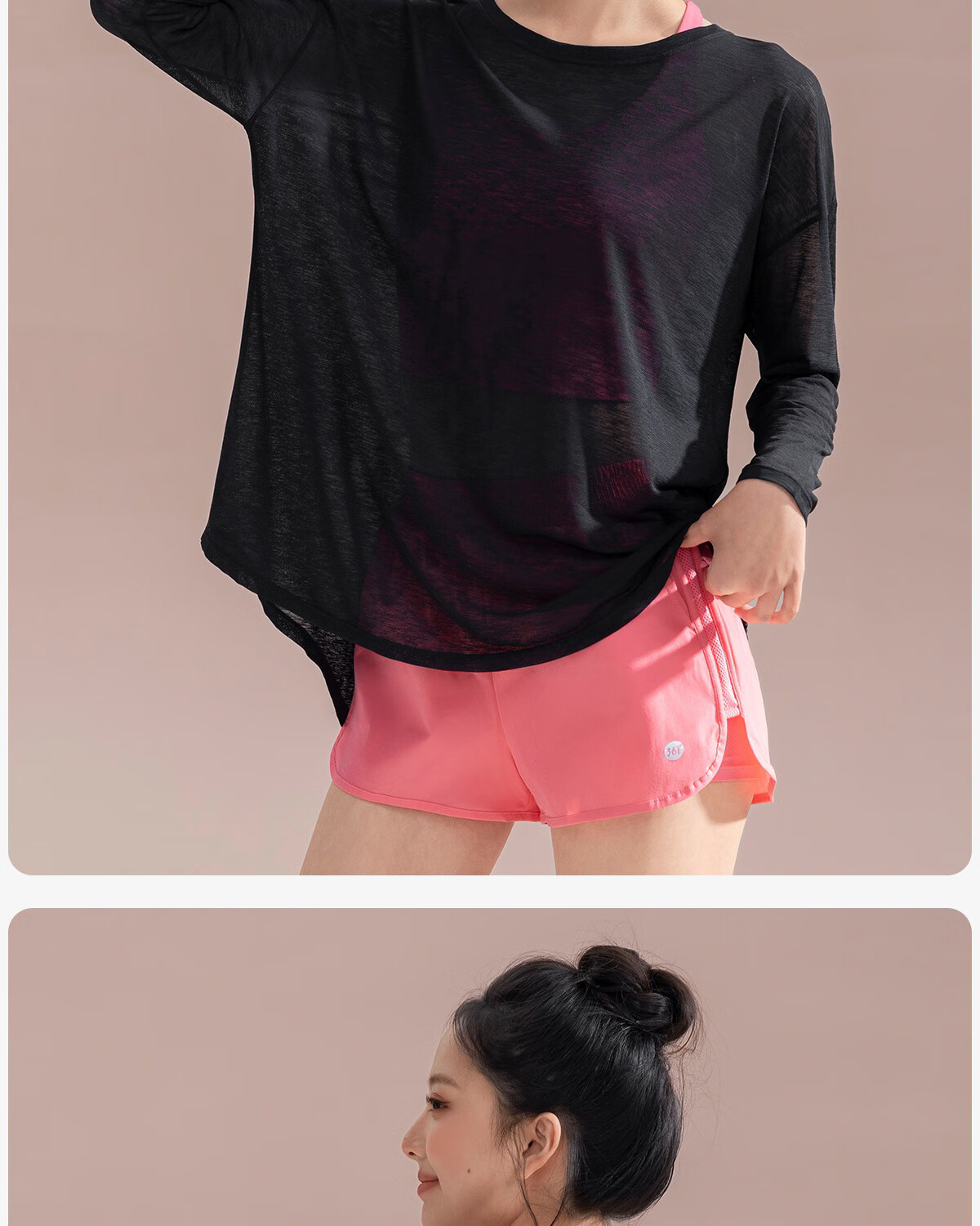 361 361 yoga clothes for women 2025 new style high-end loose-fitting long-sleeved long-sleeved Pilates fitness sports blouse white slub gauze blouse light as if nothing XL