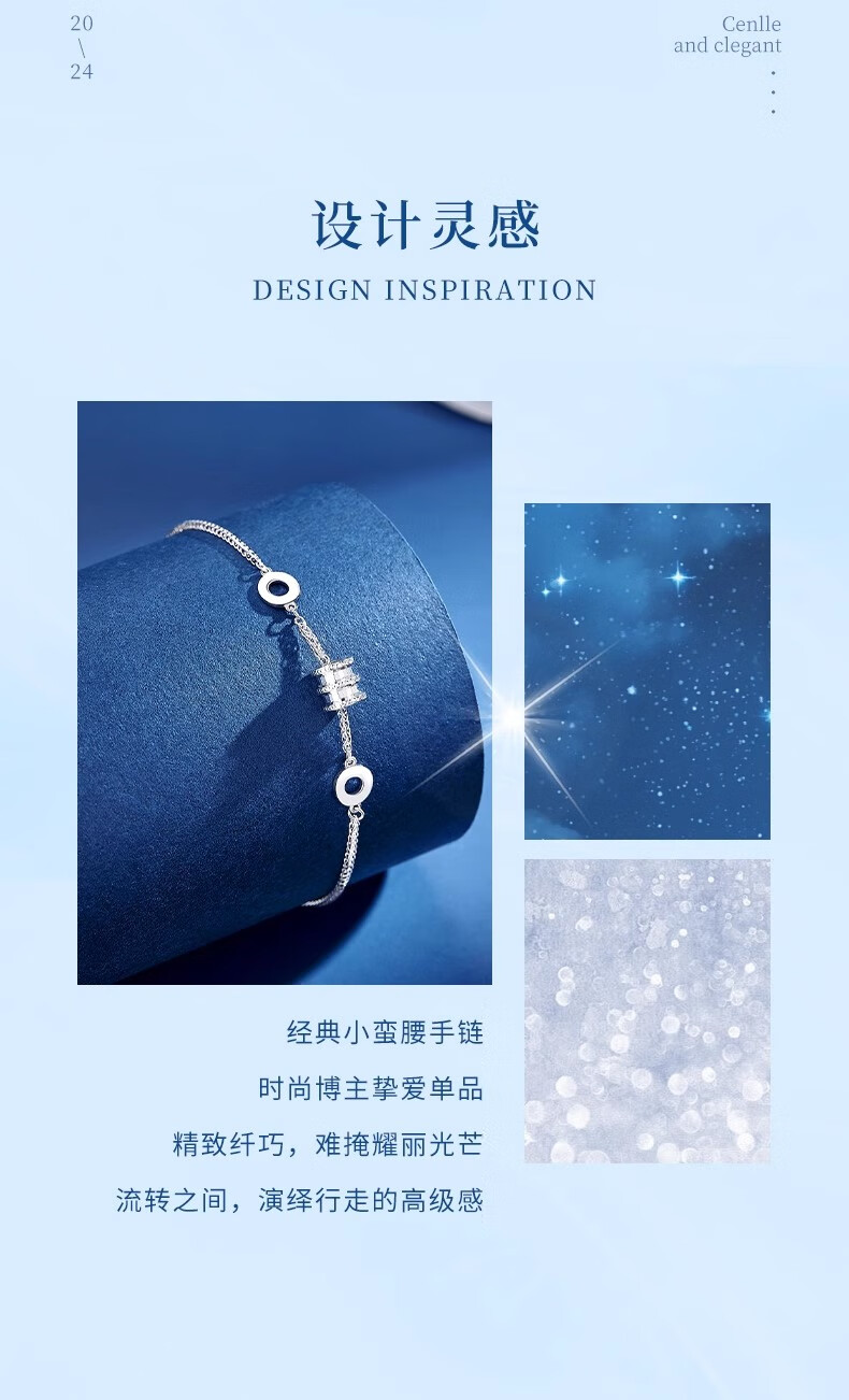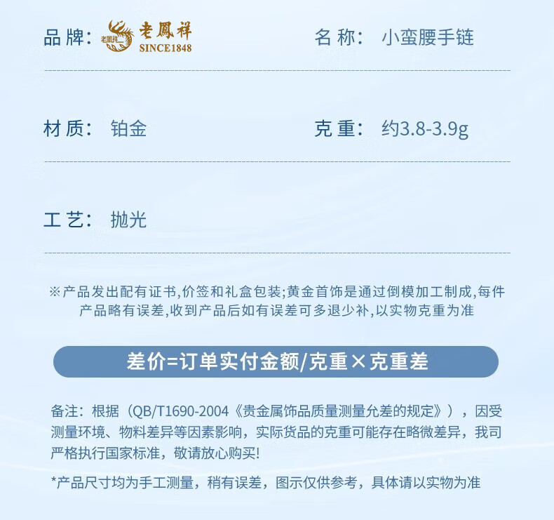 Lao Fengxiang Xiaoman waist pure PT950 platinum bracelet for women light luxury niche Mid-Autumn Festival birthday gift for girlfriend and wife Xiaoman waist platinum bracelet about 4.2g