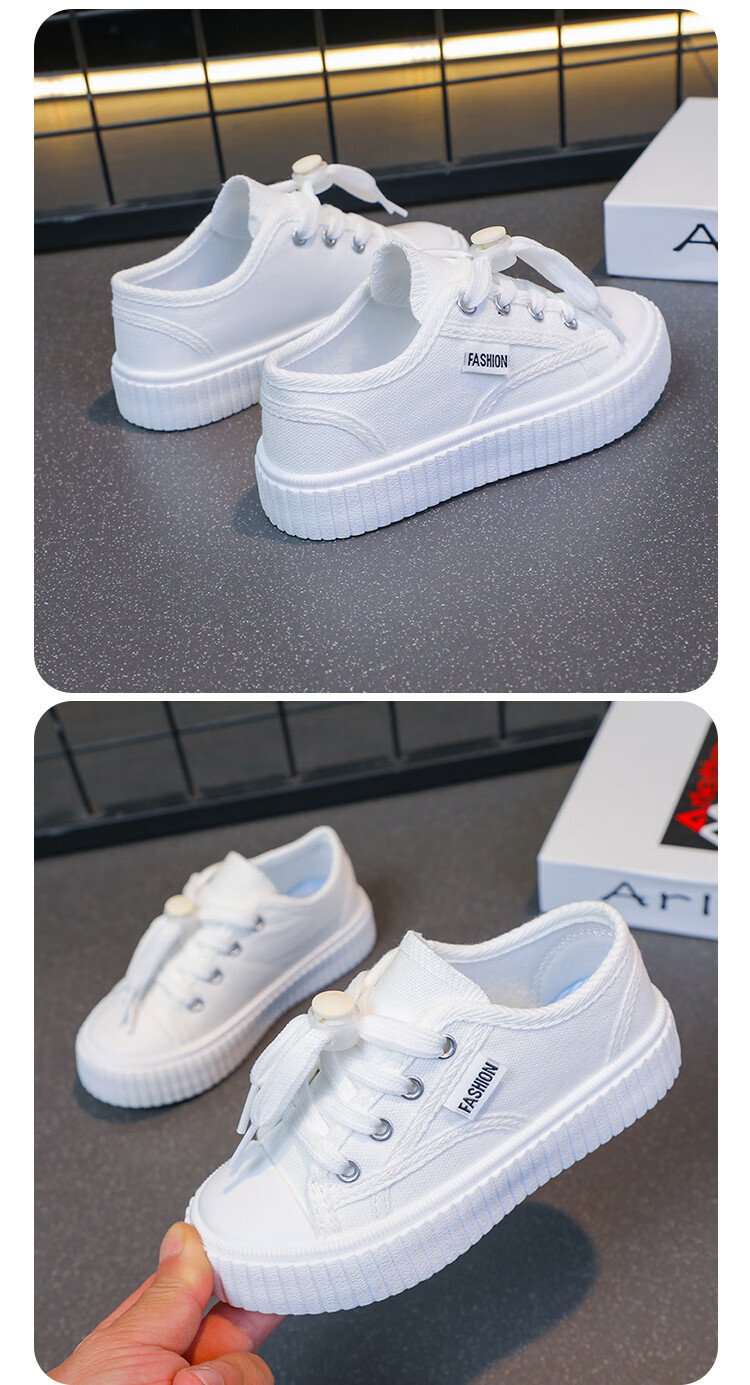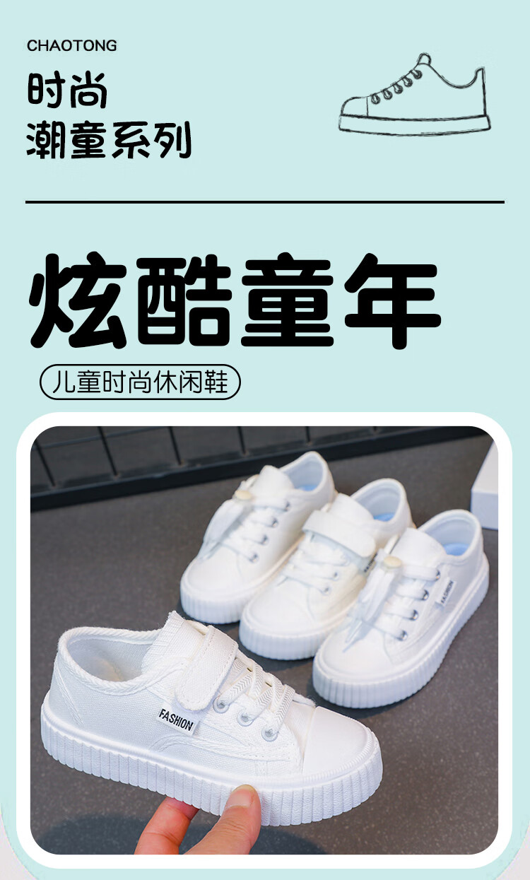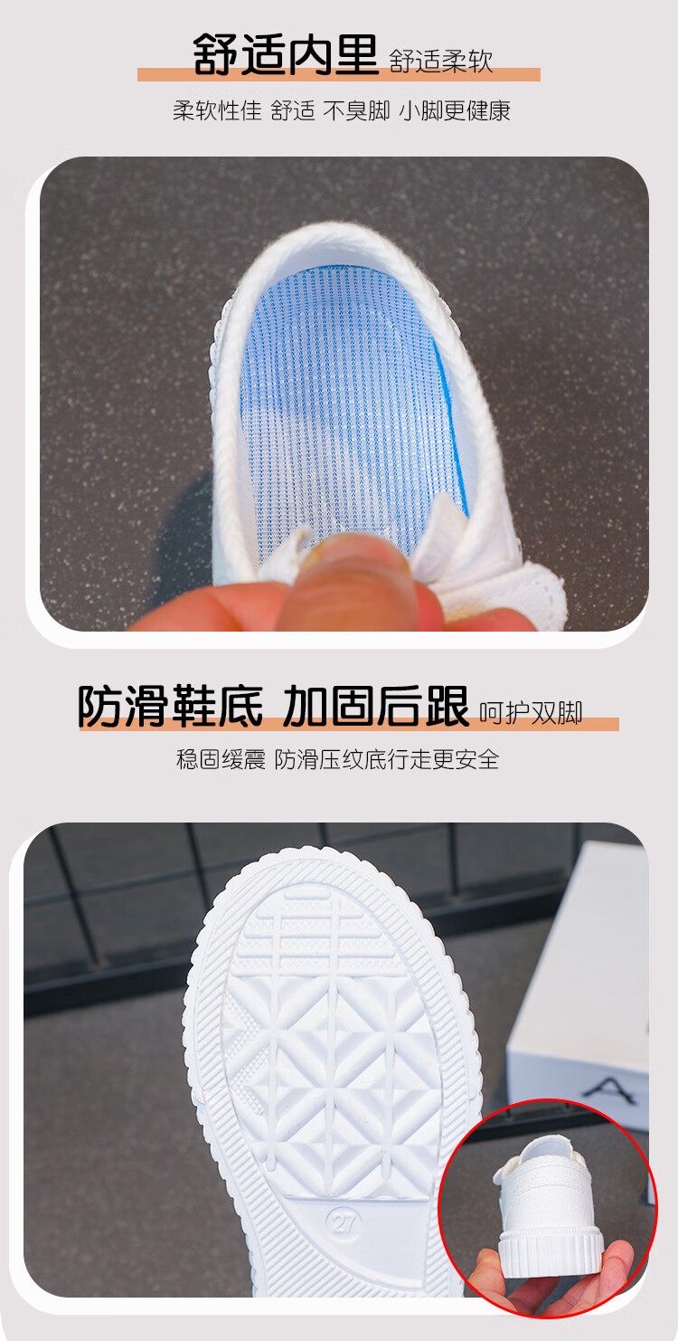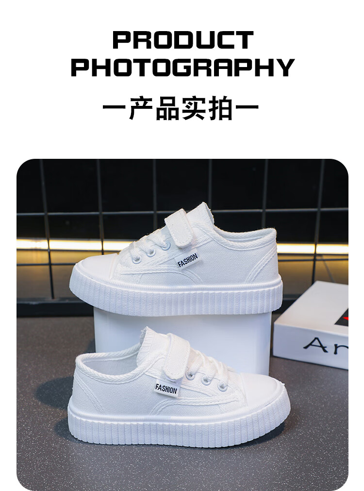 G.duck children's white shoes, primary school students' white performance sneakers 24 new spring and summer soft-soled breathable canvas shoes for boys and girls 913 Velcro white foot length +0.5cm 37 22.0cm