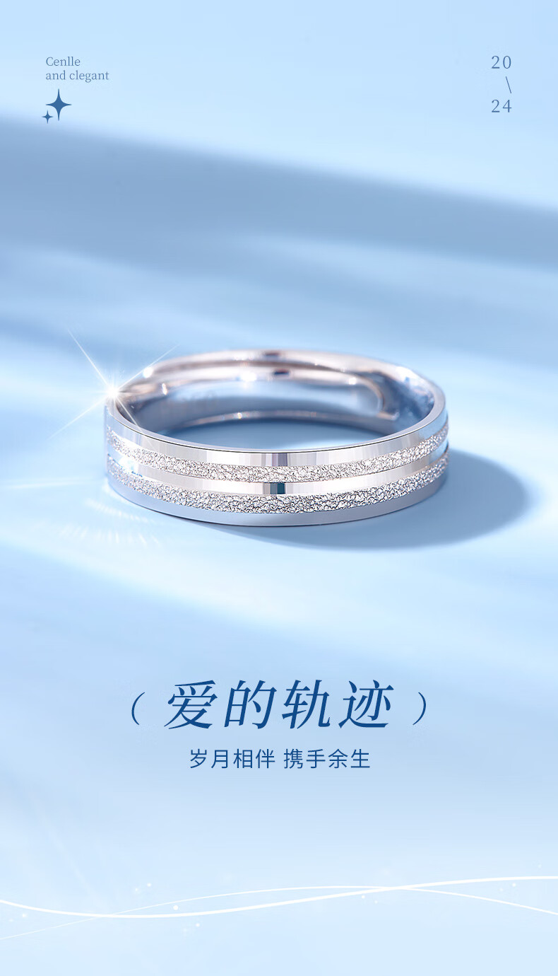 China Gold (CHINA GOLD) pt950 platinum ring, the track of love, platinum couple wedding ring, Valentine's Day birthday gift for girlfriend, golden ring reflects love, spend the rest of life together, female ring, about 4.1g + brand gift box