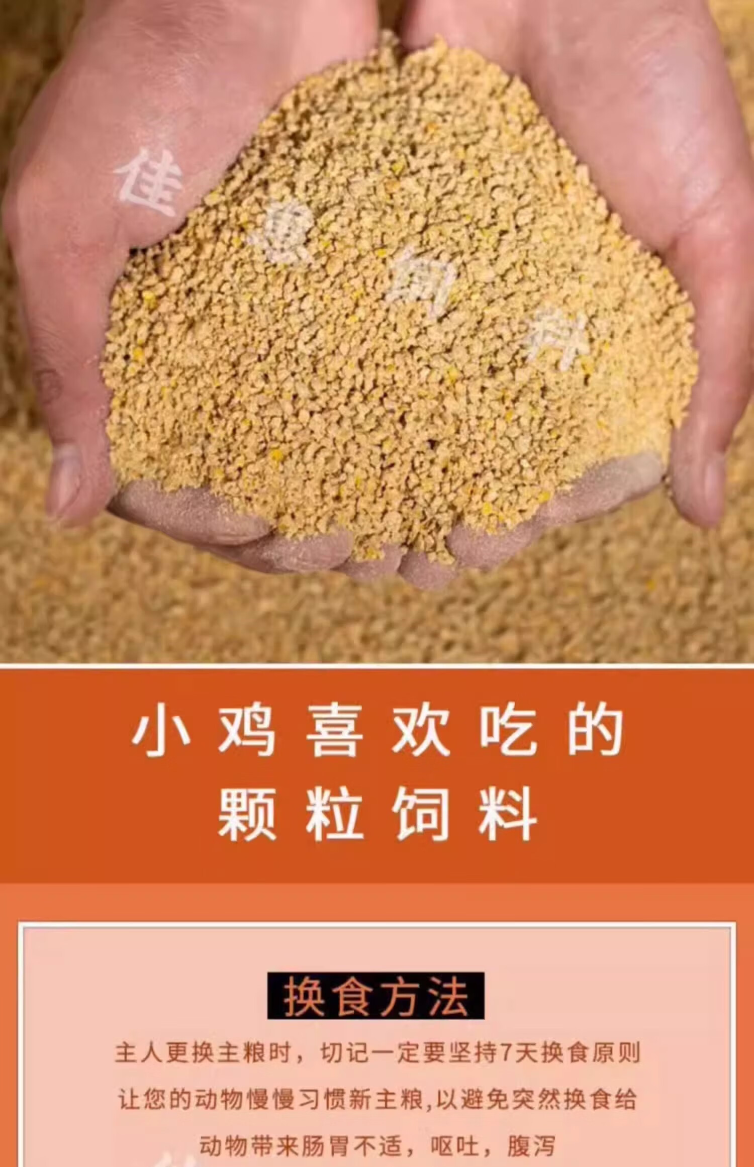 Freshly hatched chick feed, chick small pellet feed, chicken food, ducklings, ducks and geese, free-range chicken, duck and goose feed, 0-7 weeks chick feed, 2Jin Jin is equal to 0.5kg