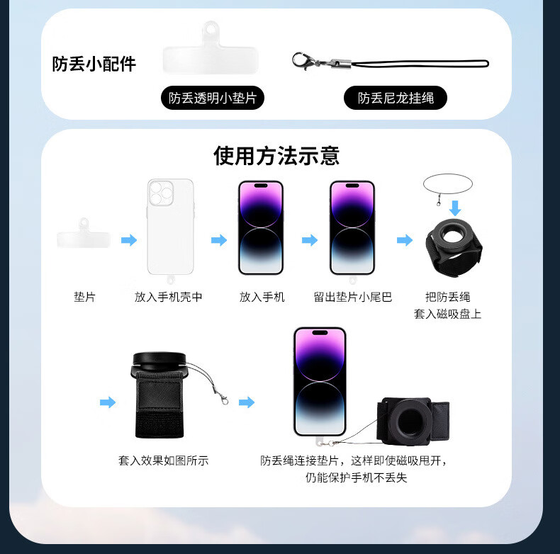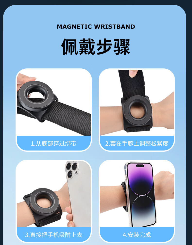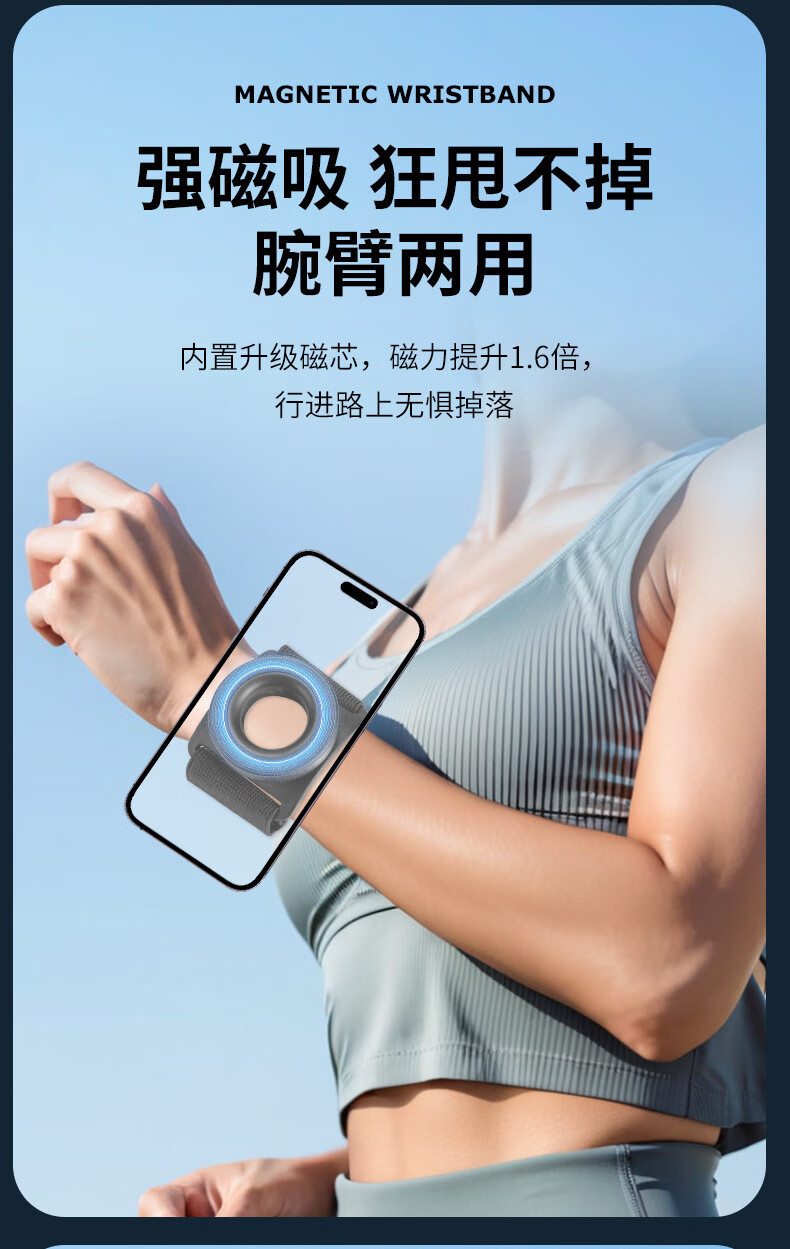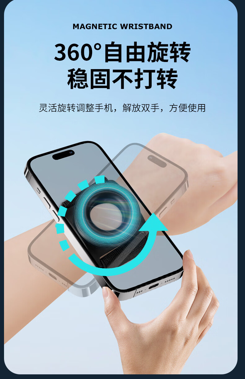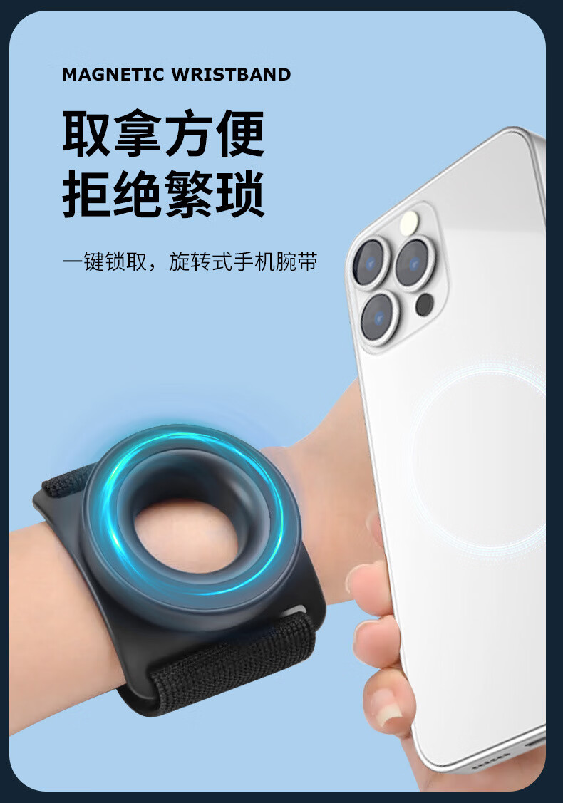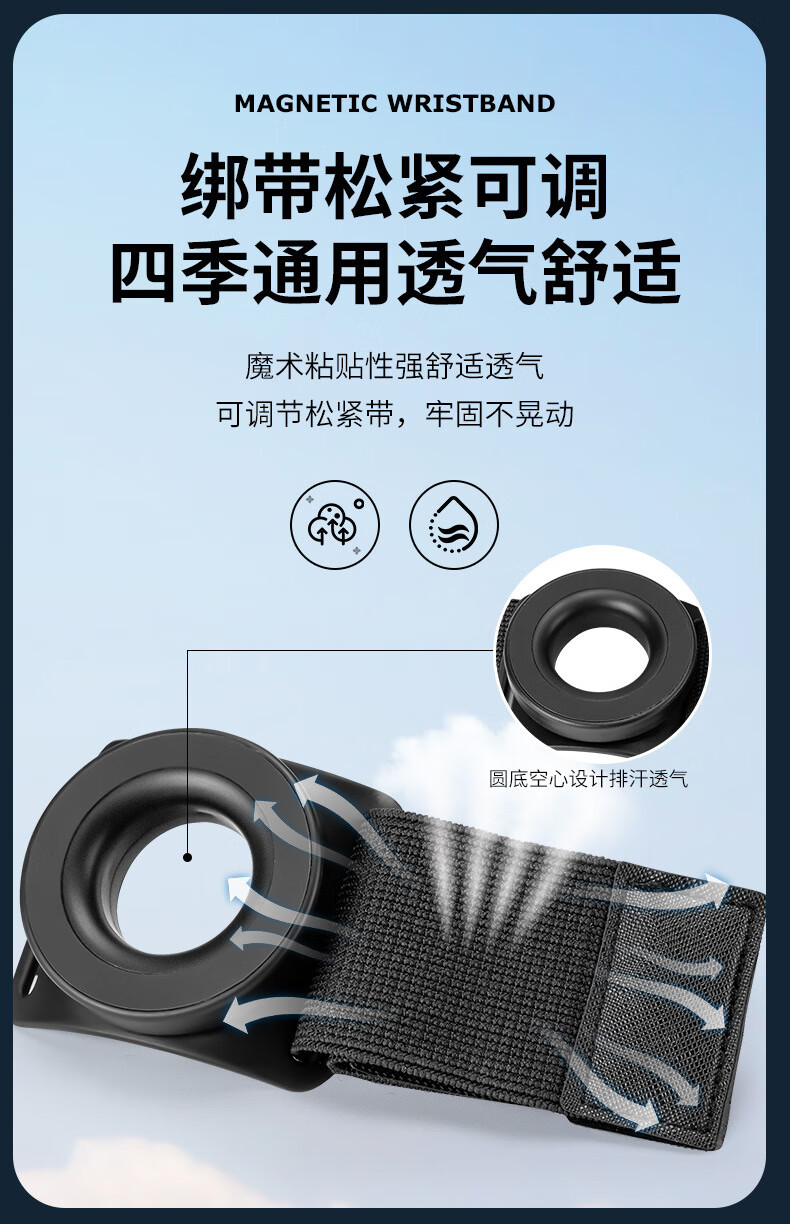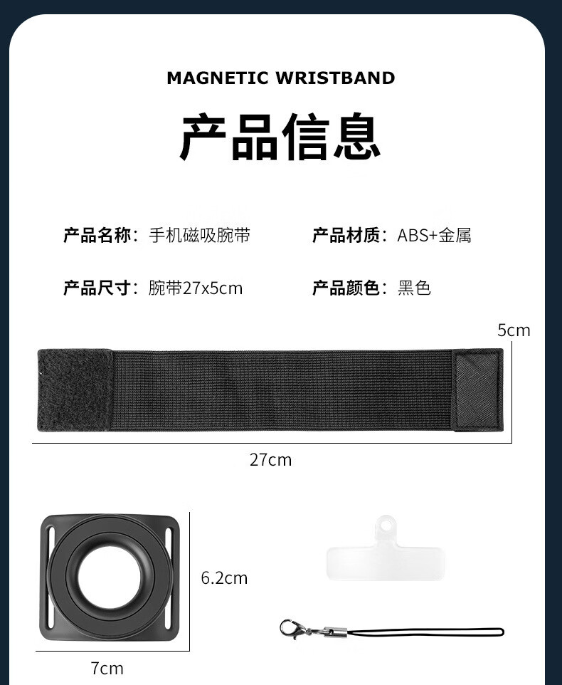He Jian Gong magnetic suction detachable wrist phone holder for driving, cycling internet celebrity anchor's same live broadcast bracket, running artifact arm bag, black hollow magnetic suction, mobile phone holder for driving