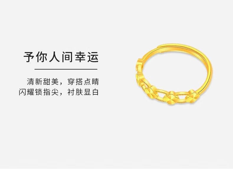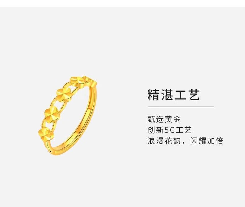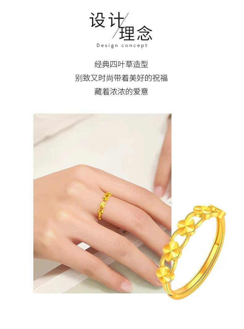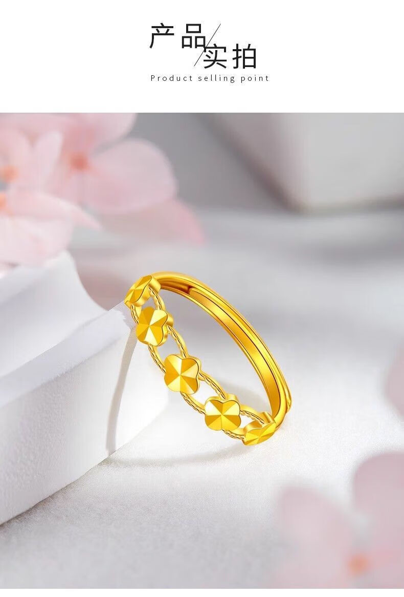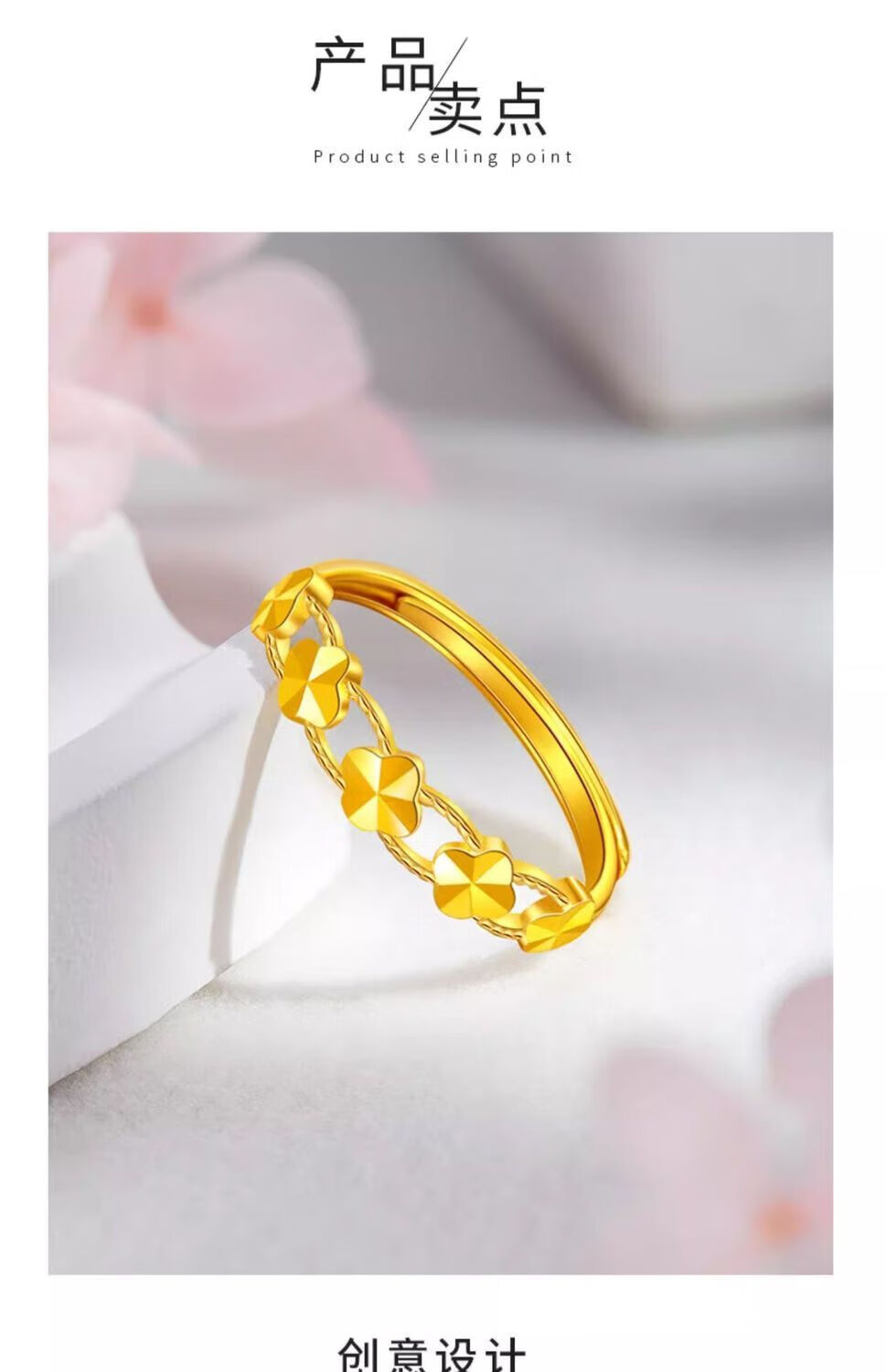 OAZ gold four-leaf clover ring for women, adjustable opening, solid gold 999 gold ring, birthday gift, sparkling four-leaf clover ring, new style + gift box 0.23g x live