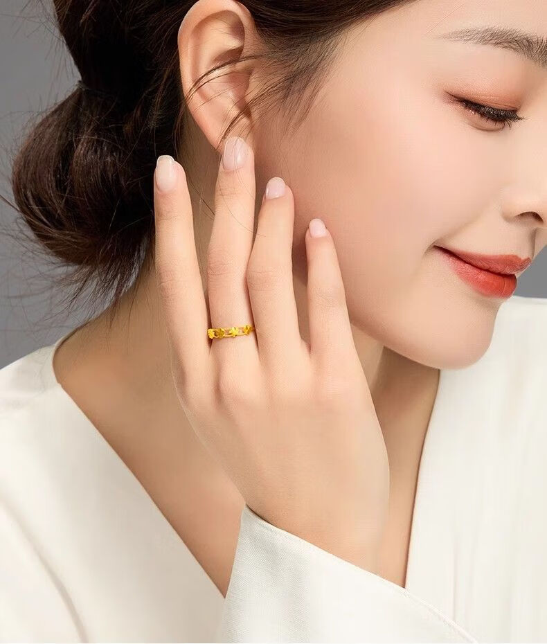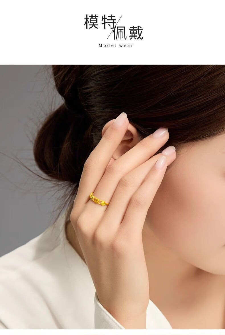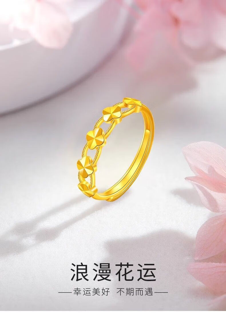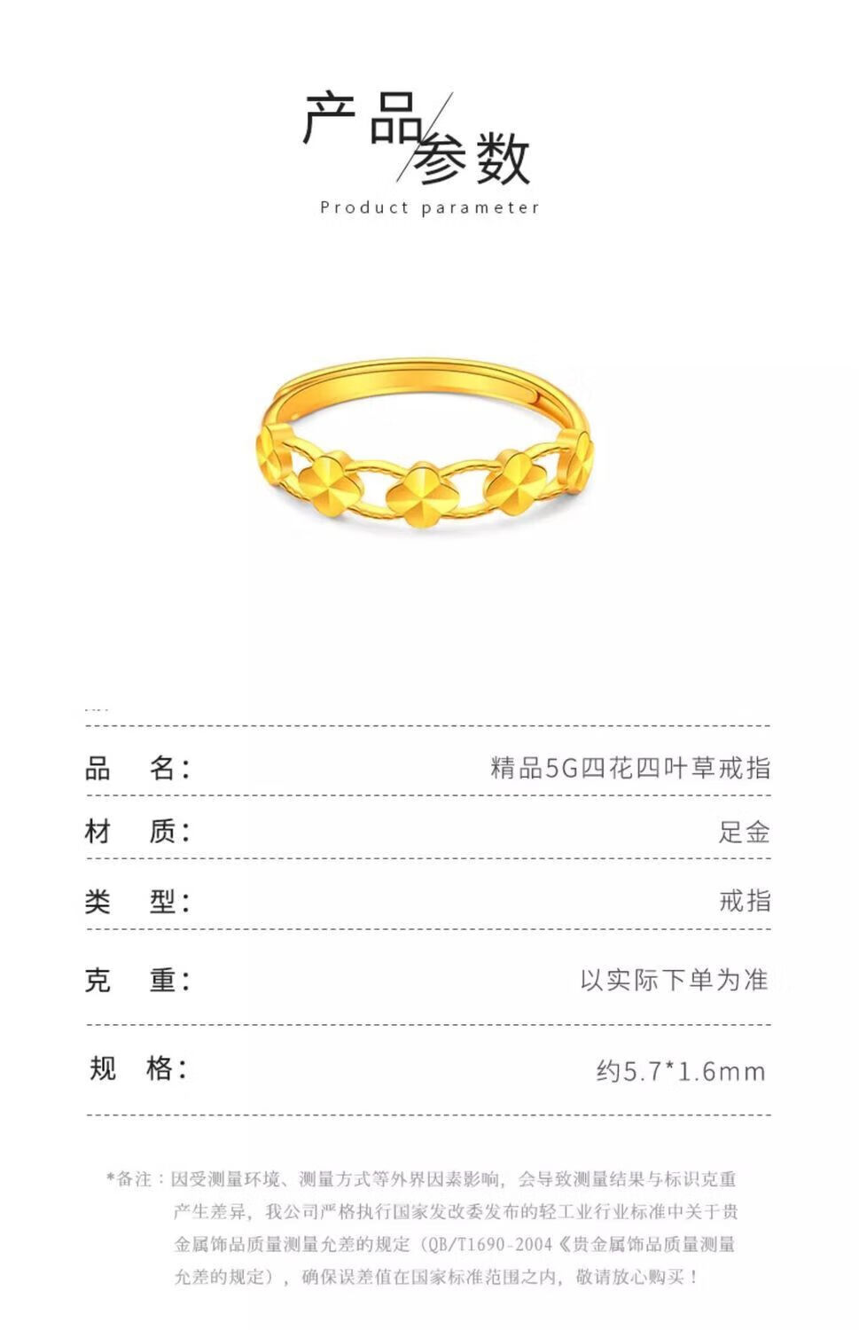 OAZ gold four-leaf clover ring for women, adjustable opening, solid gold 999 gold ring, birthday gift, sparkling four-leaf clover ring, new style + gift box 0.23g x live