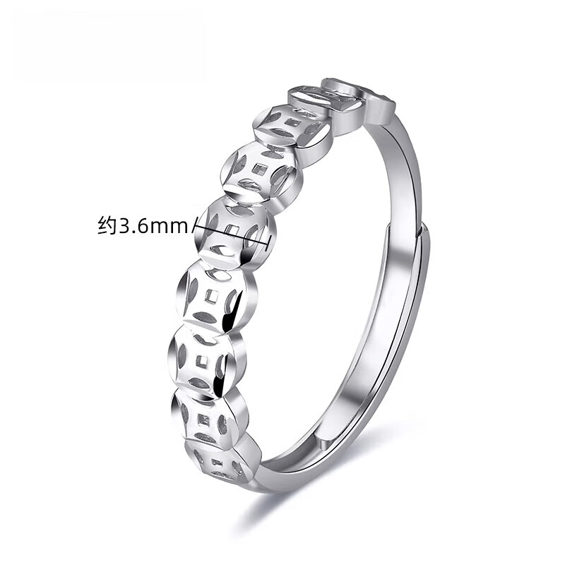 Fiber Bundle (QIANSHU) Platinum Platinum PT950 Copper Money Gold Coin Ring for Men and Women Live Rich Ring Versatile Ring Transfer Ring Ceremony Live Mouth Weight Approximately 2.7-2.75 Grams Platinum Gold Coin