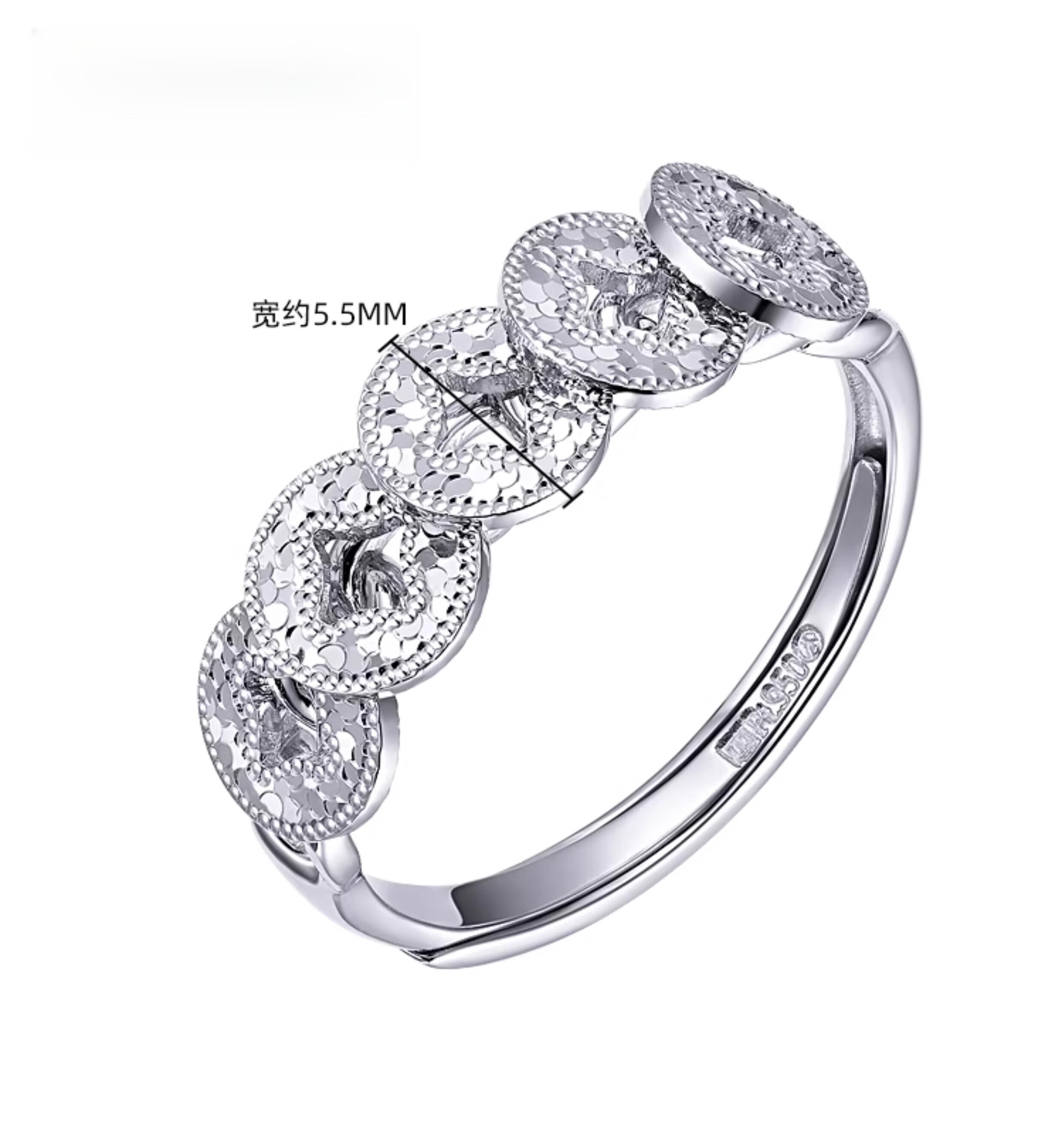 Fiber bundle (QIANSHU) Pt950 platinum women's ring platinum ring 950 platinum ring crushed ice five coin ring gift live weight 3.77 grams crushed ice five coin ring