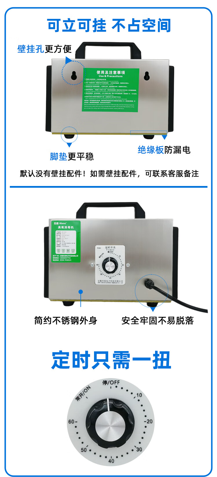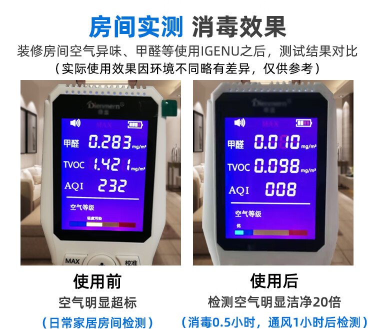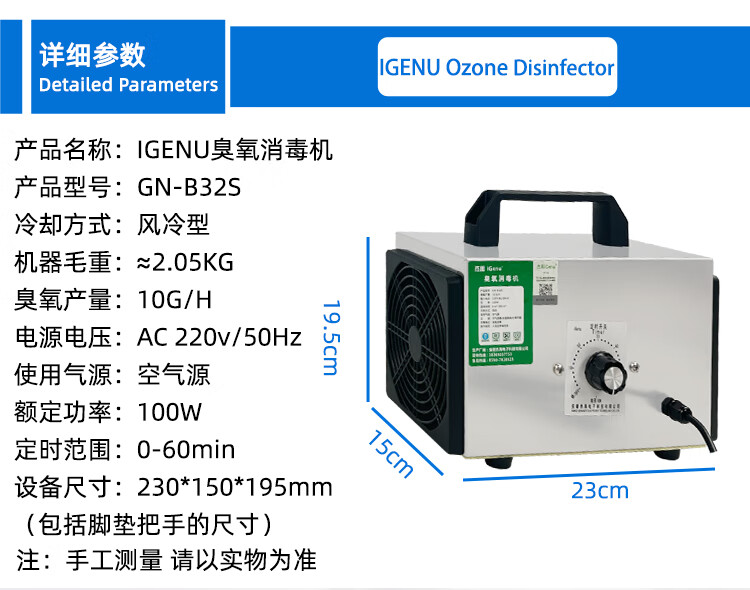 IGENU portable ozone generator household disinfection machine food factory breeding farm cosmetics workshop packaging room public toilet garbage room sterilization and deodorization new house formaldehyde odor removal 10g trough type upgrade
