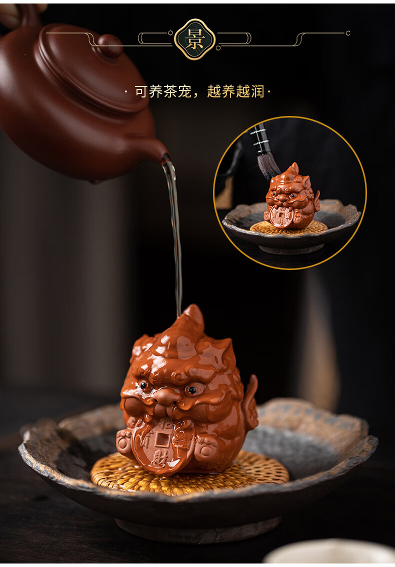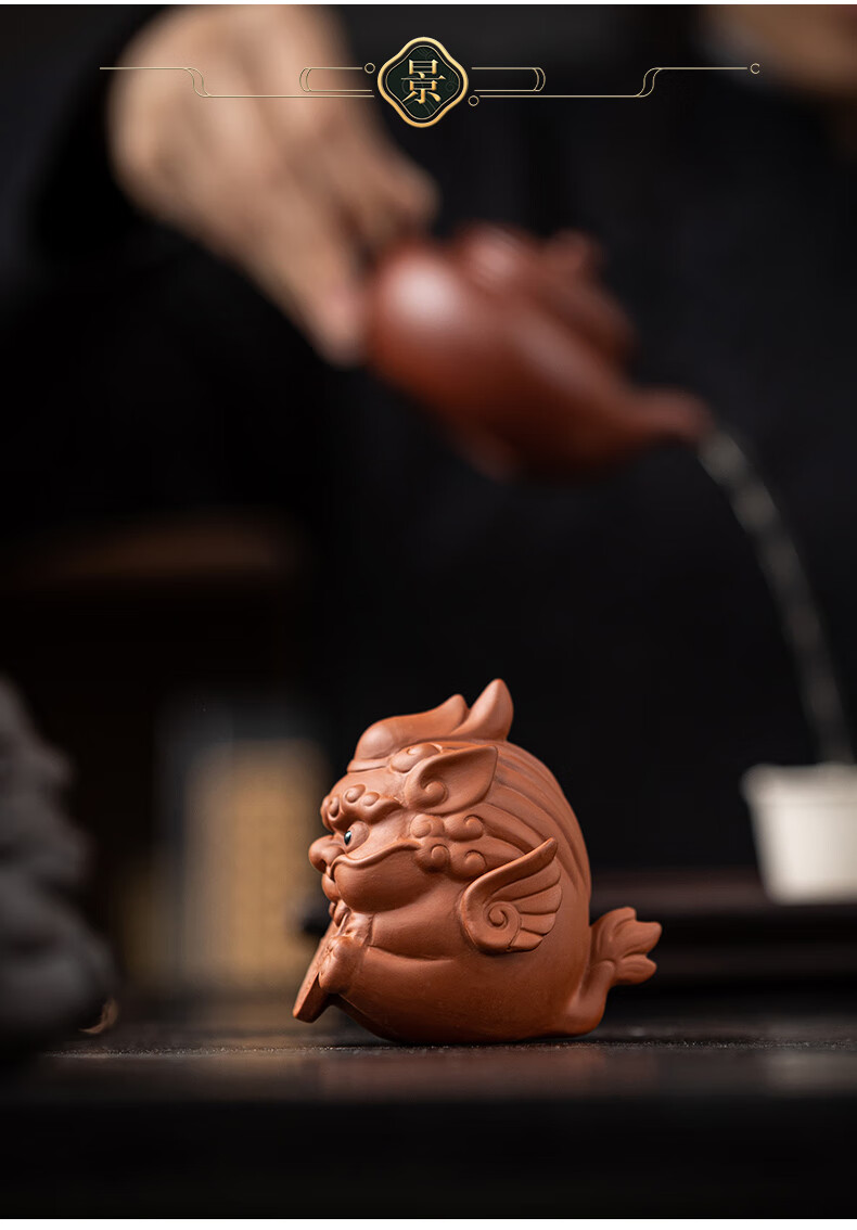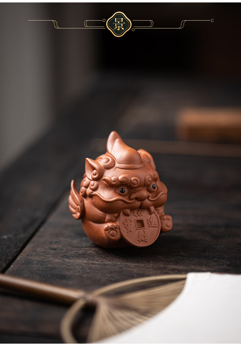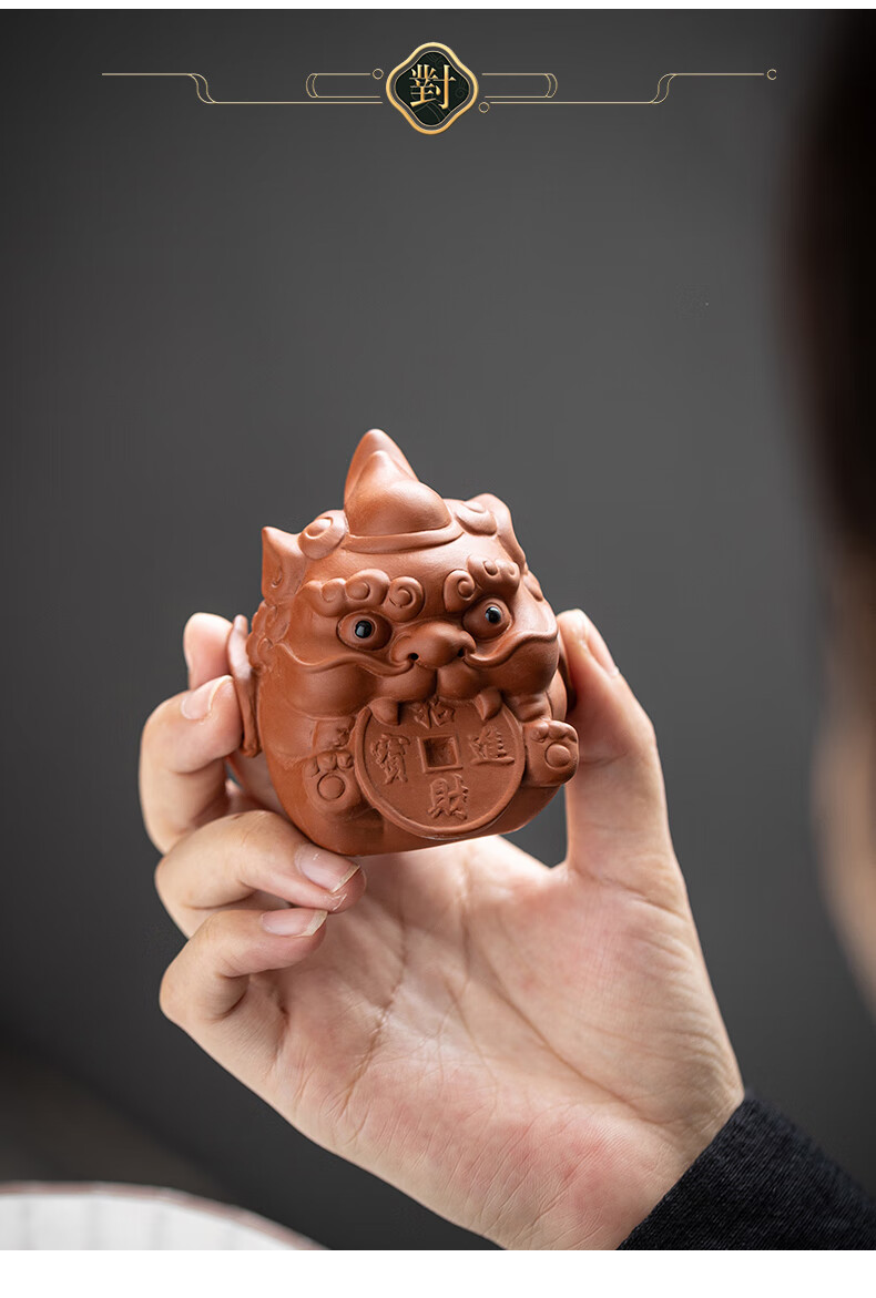 Pixiu tea pet ornaments, high-quality purple clay, tea ceremony, kung fu tea table, tea set accessories, creative and cute tea toys, high-end cute ball Pixiu-red