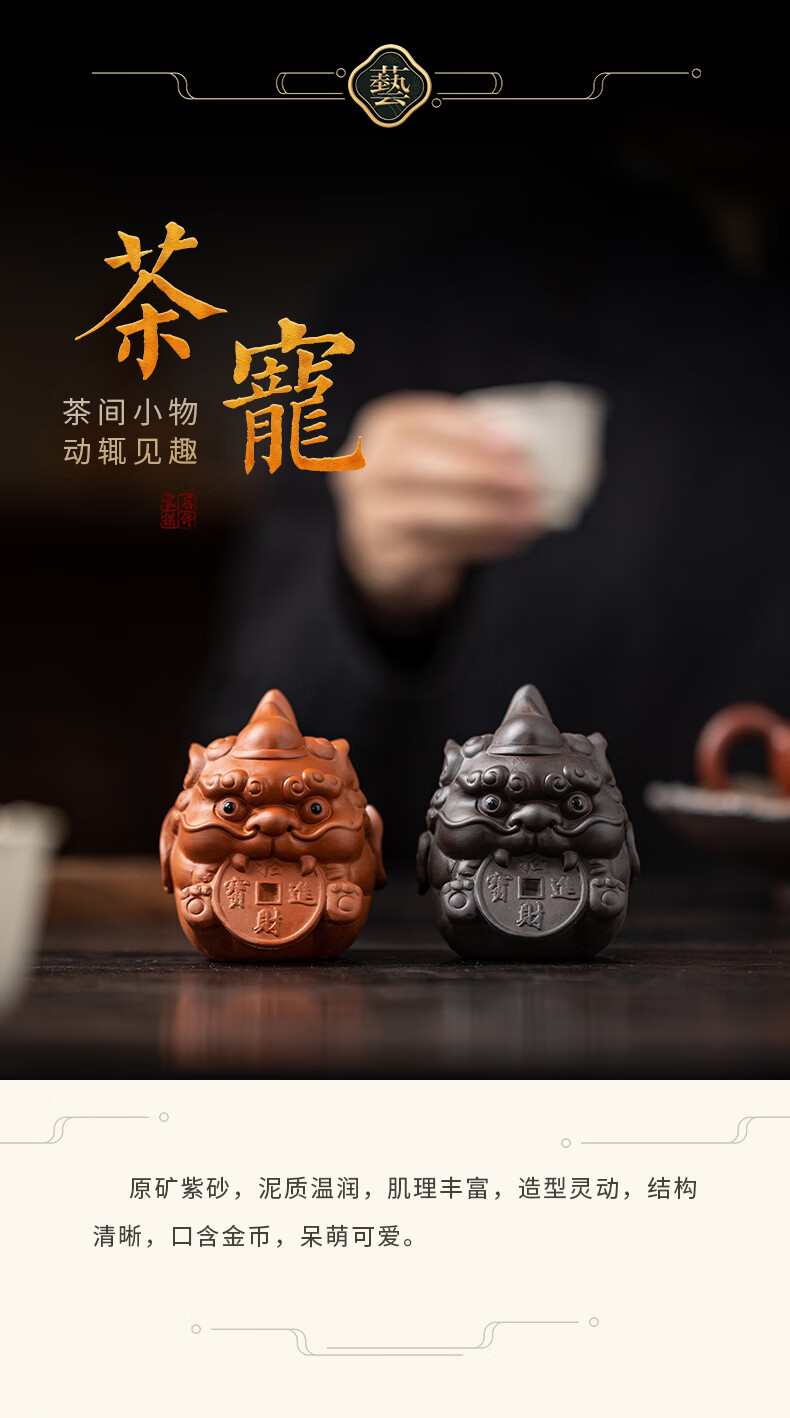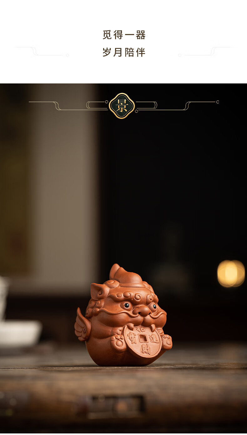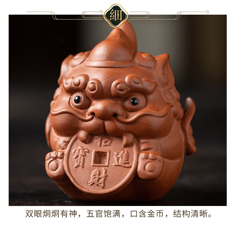 Pixiu tea pet ornaments, high-quality purple clay, tea ceremony, kung fu tea table, tea set accessories, creative and cute tea toys, high-end cute ball Pixiu-red
