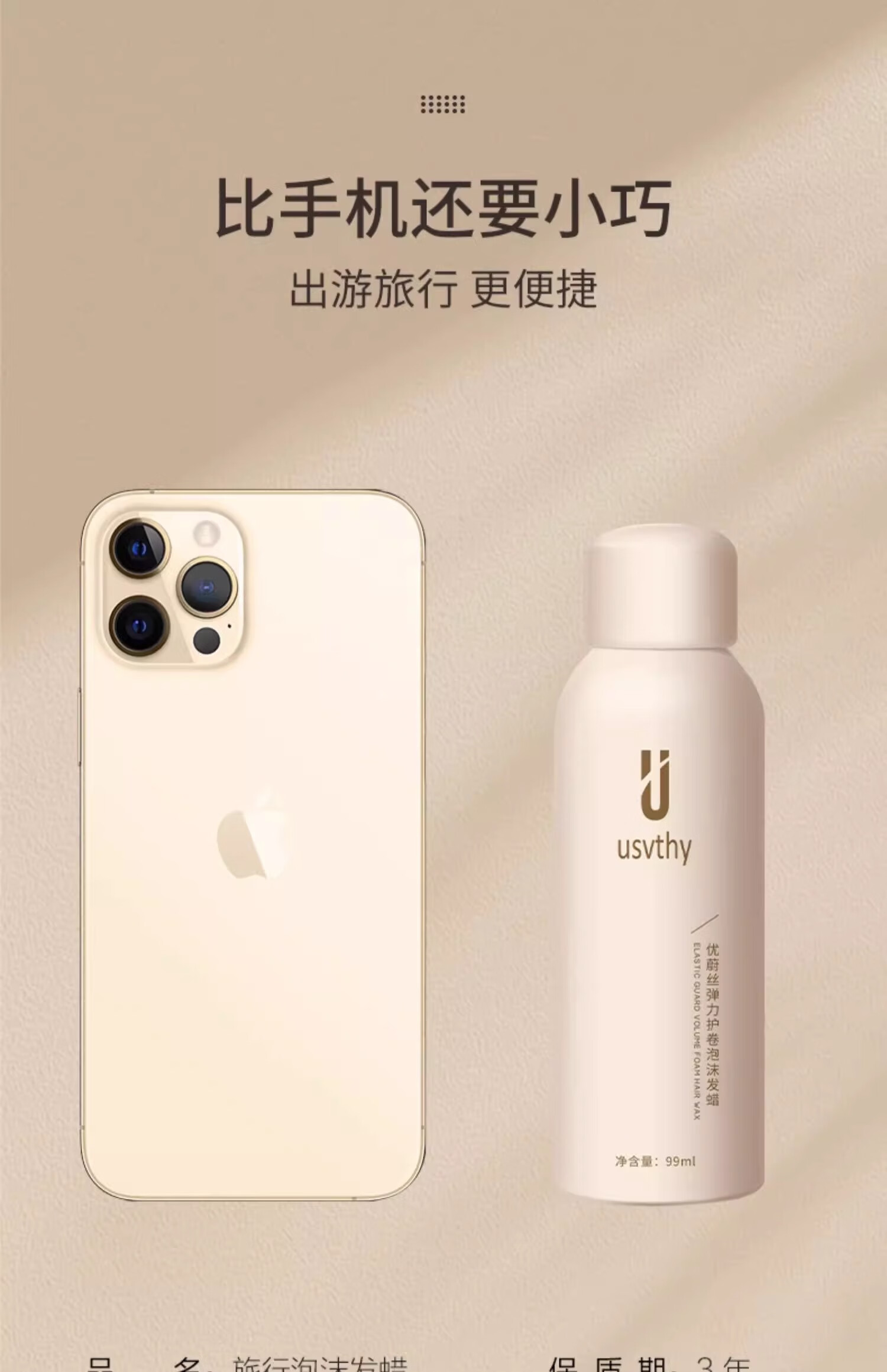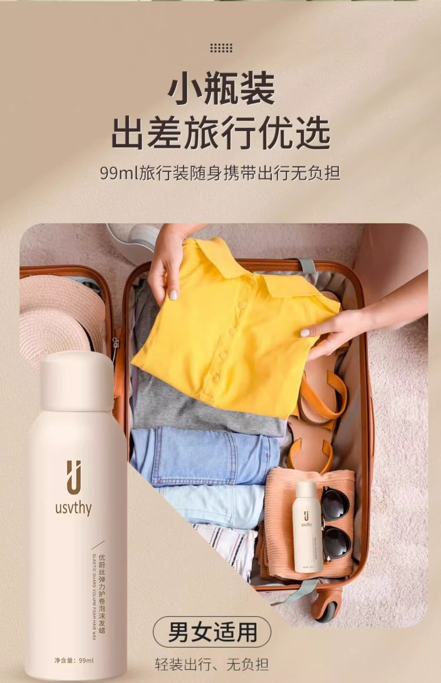 USVTHY foam hair wax for women with curly hair, fluffy natural elasticity, curly hair care, moisturizing and styling, travel size, can be used on airplanes and high-speed rail, foam hair wax 99ml*1