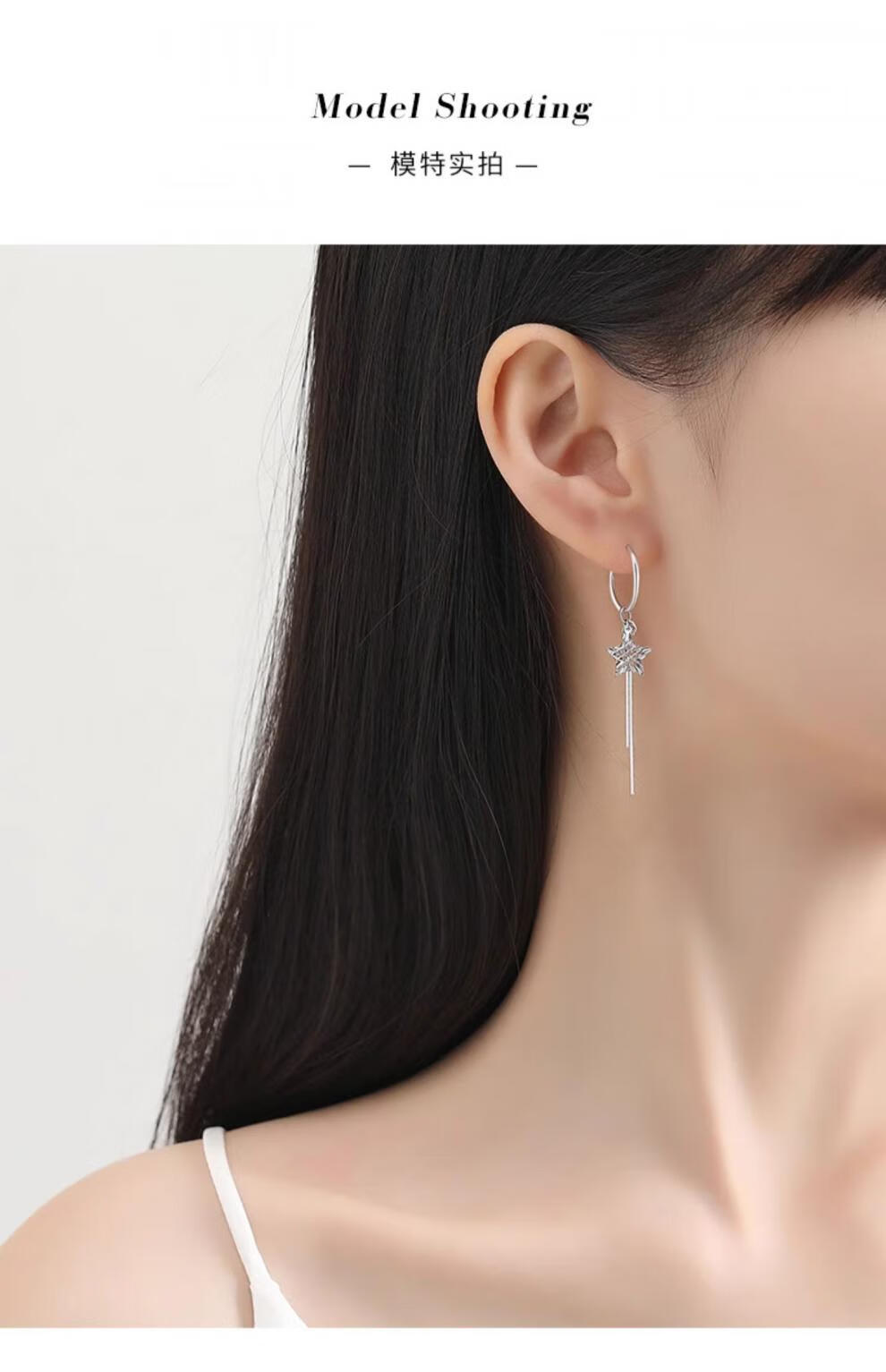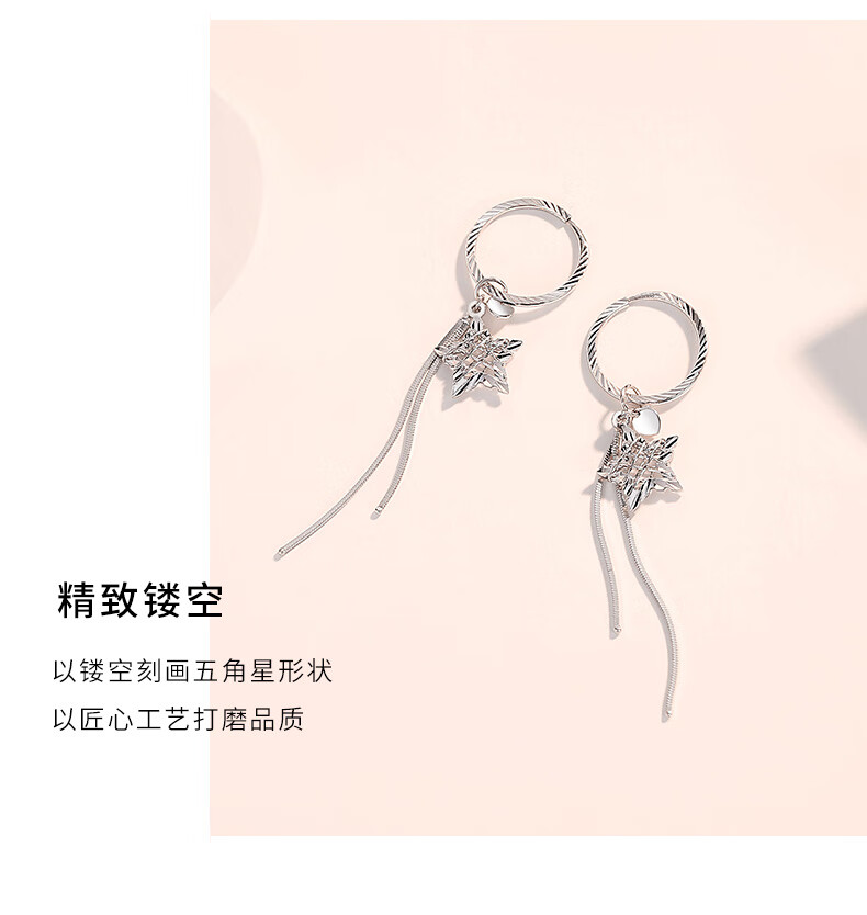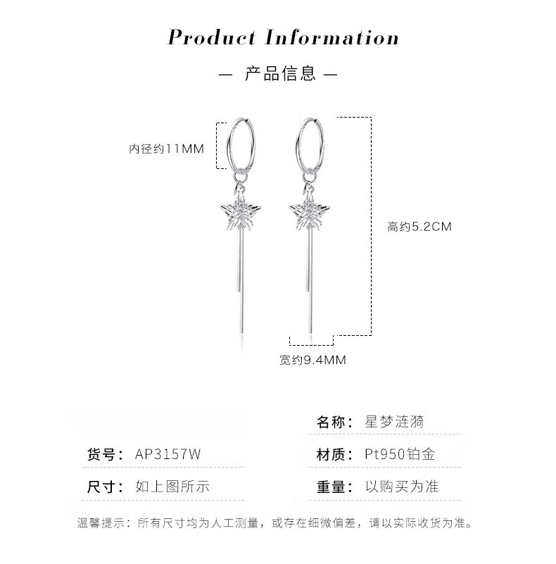 QIANSHU pt950 platinum earrings for women, fashionable platinum tassel star earrings, versatile earrings, earrings, earrings, one pair, 2.9-3.1g