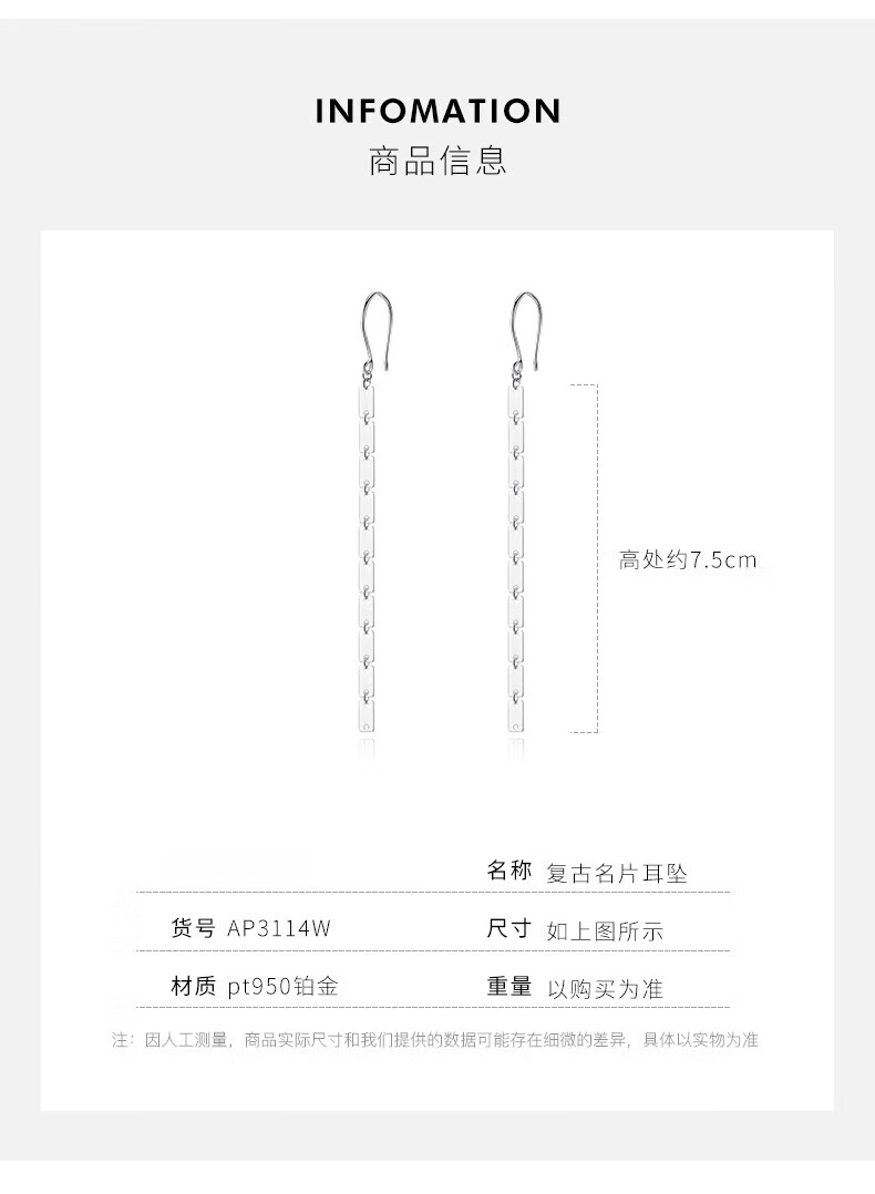 QIANSHU PT950 Platinum Ear Hooks Women's Platinum Long Earrings Tassel Earrings Simple Earrings PT950 2.6-2.69 g