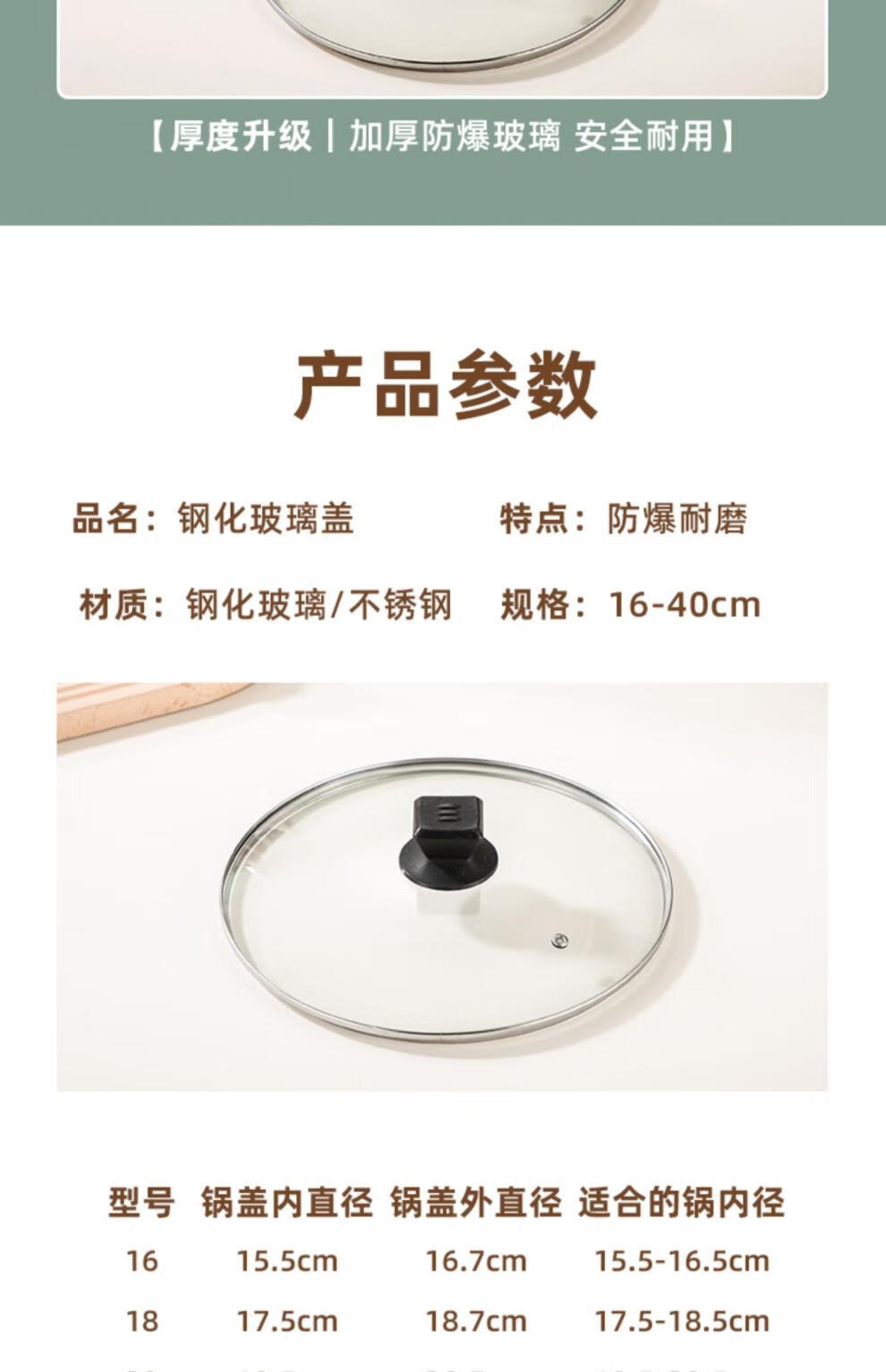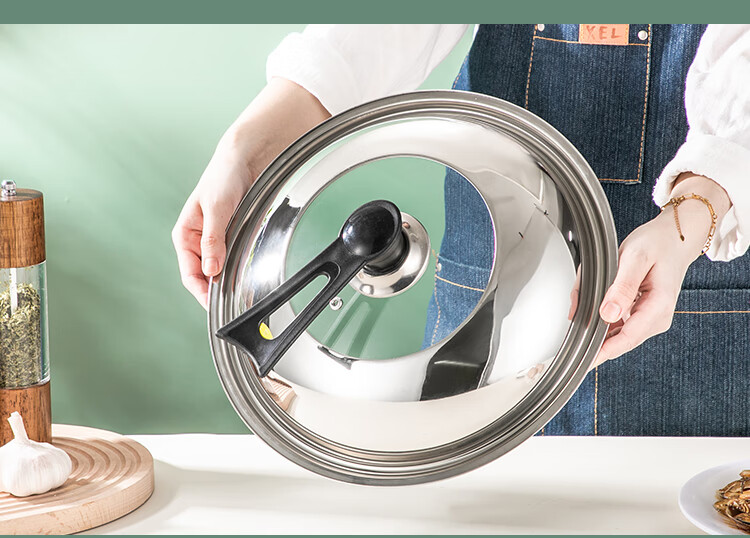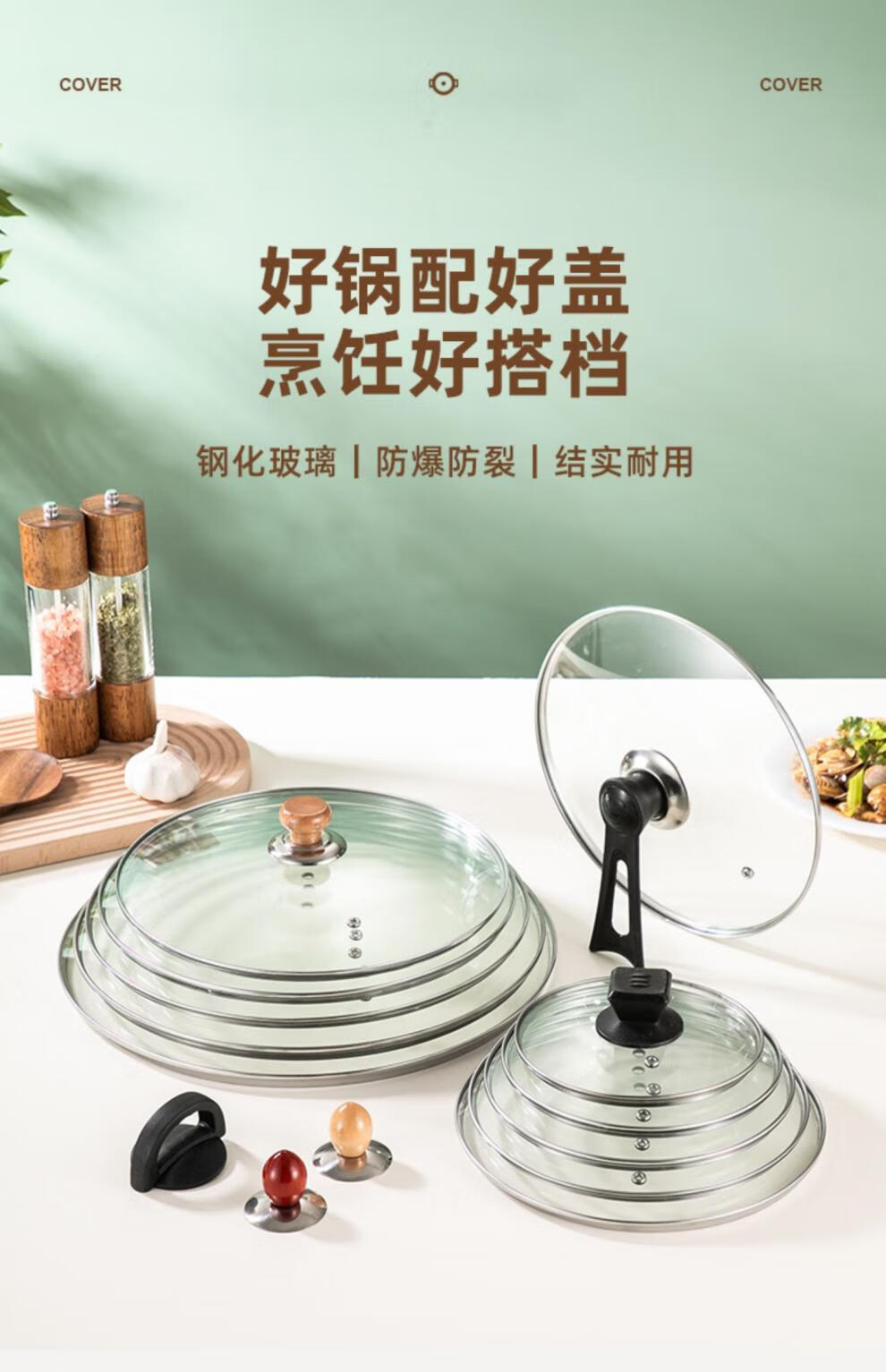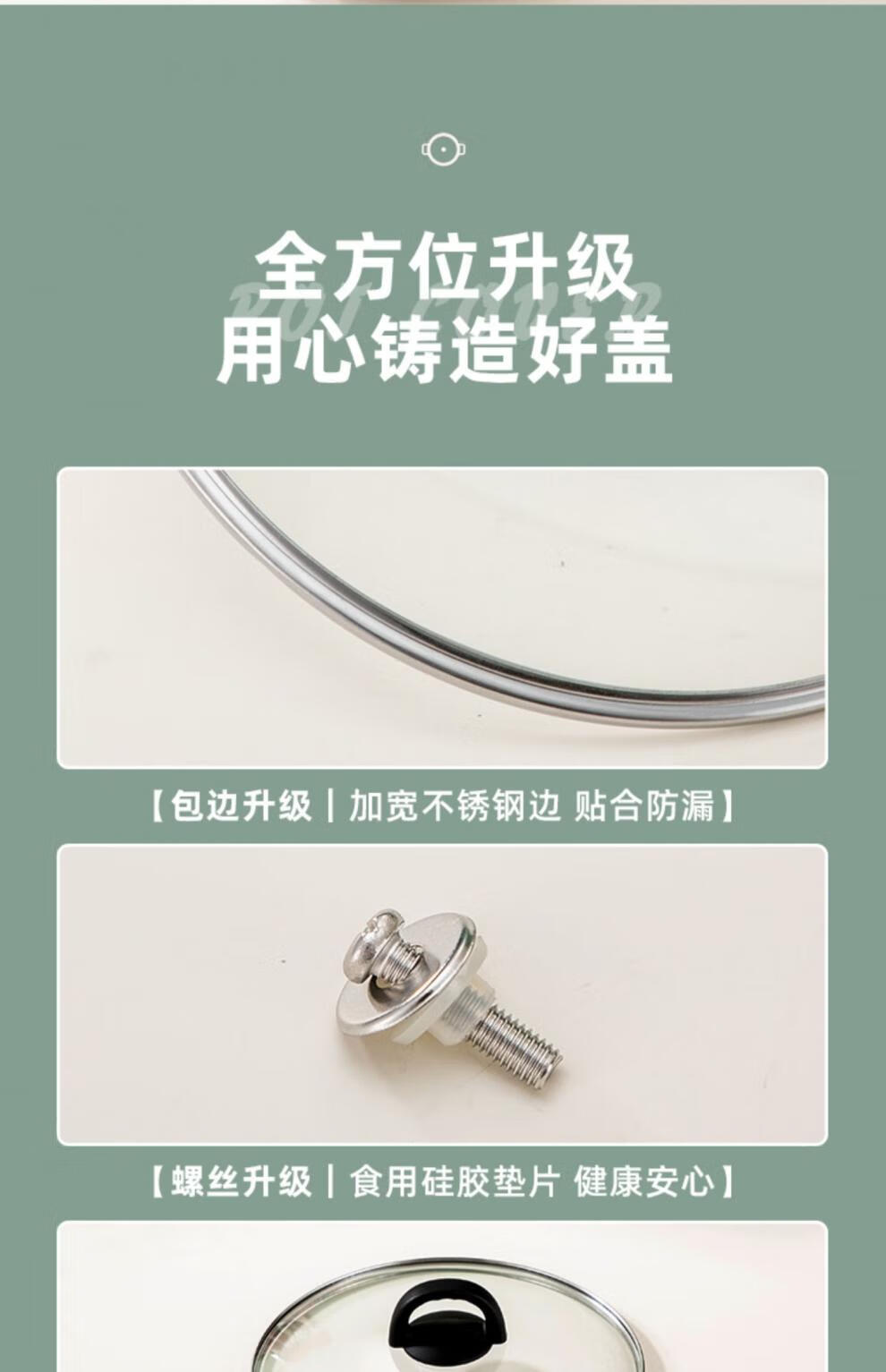 CLCEY is suitable for Supor universal pot lid household glass high temperature resistant tempered lid 26/28/34cm steaming wok handle thickened stainless steel vertical combination lid (suitable for 32cm