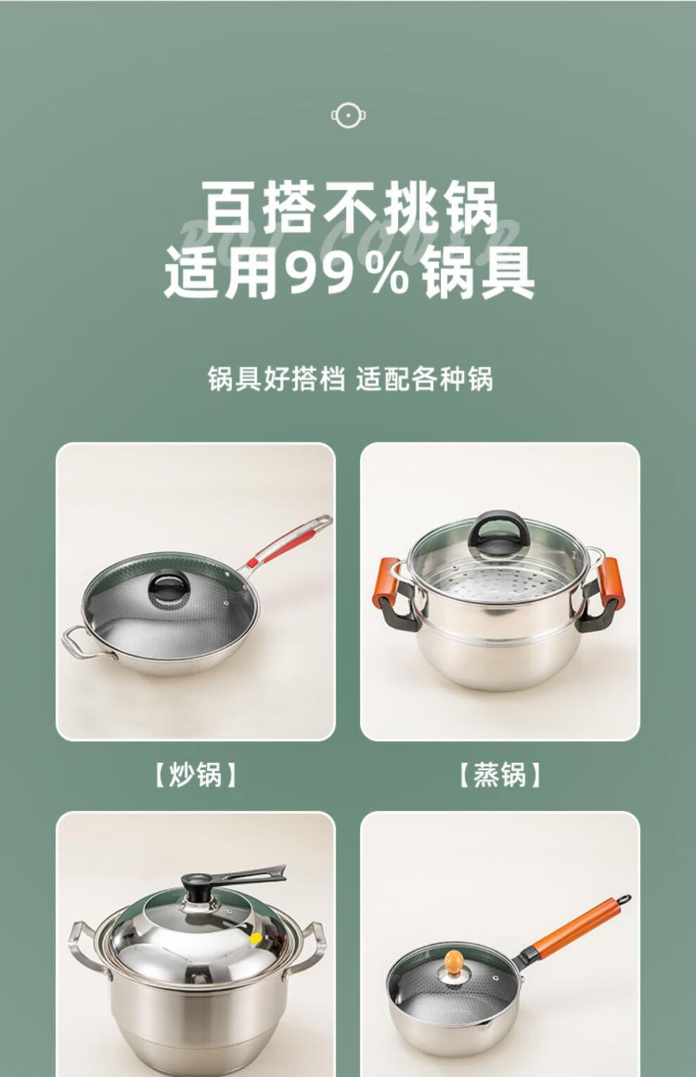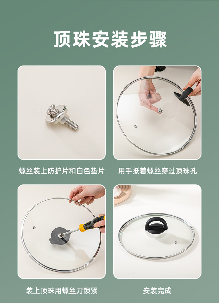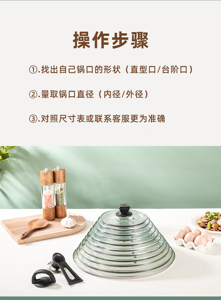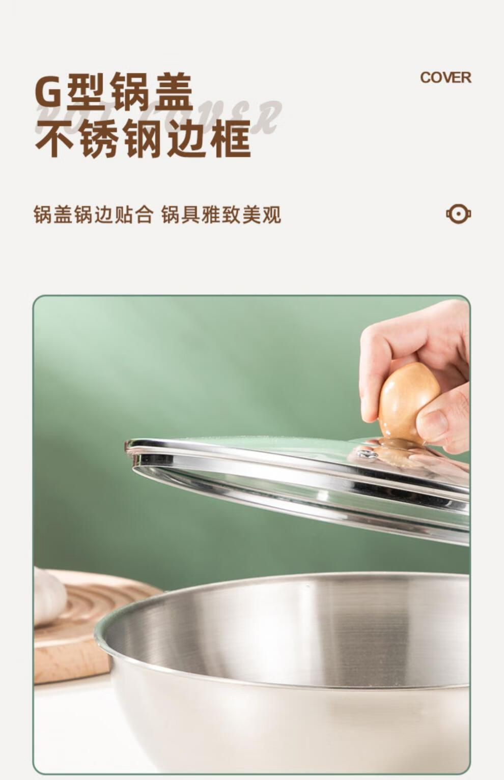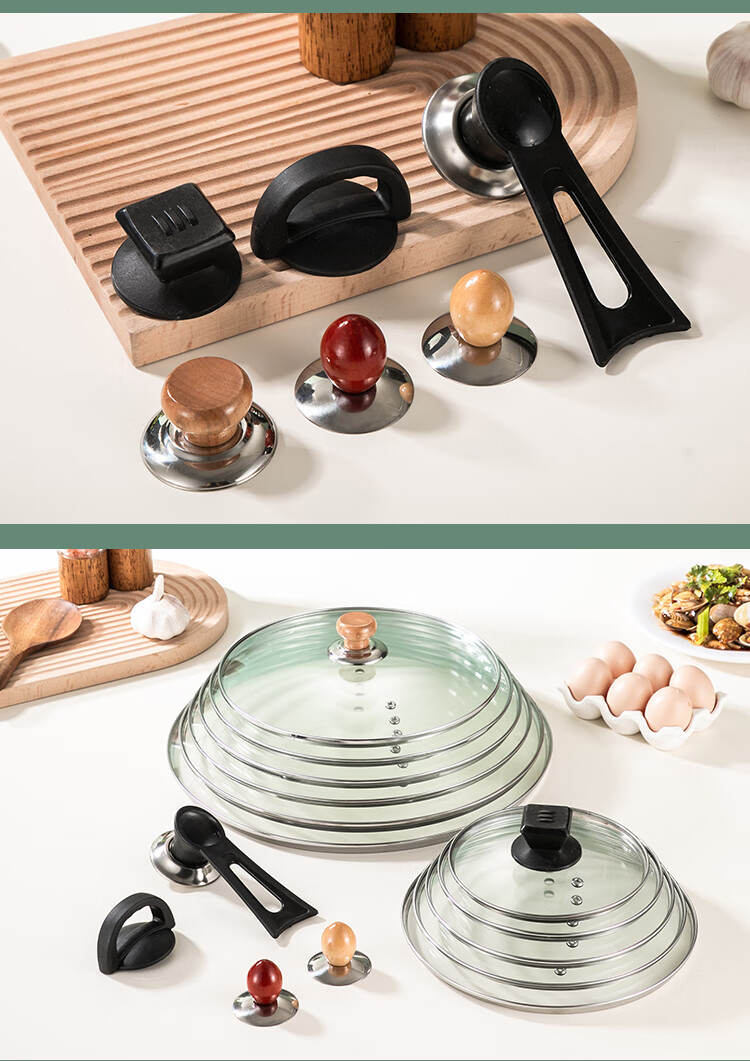 CLCEY is suitable for Supor universal pot lid household glass high temperature resistant tempered lid 26/28/34cm steaming wok handle thickened stainless steel vertical combination lid (suitable for 32cm