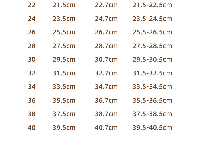China (cm) 36 - 37 38 - 39 40 - 42 43 - 44 45 - 47