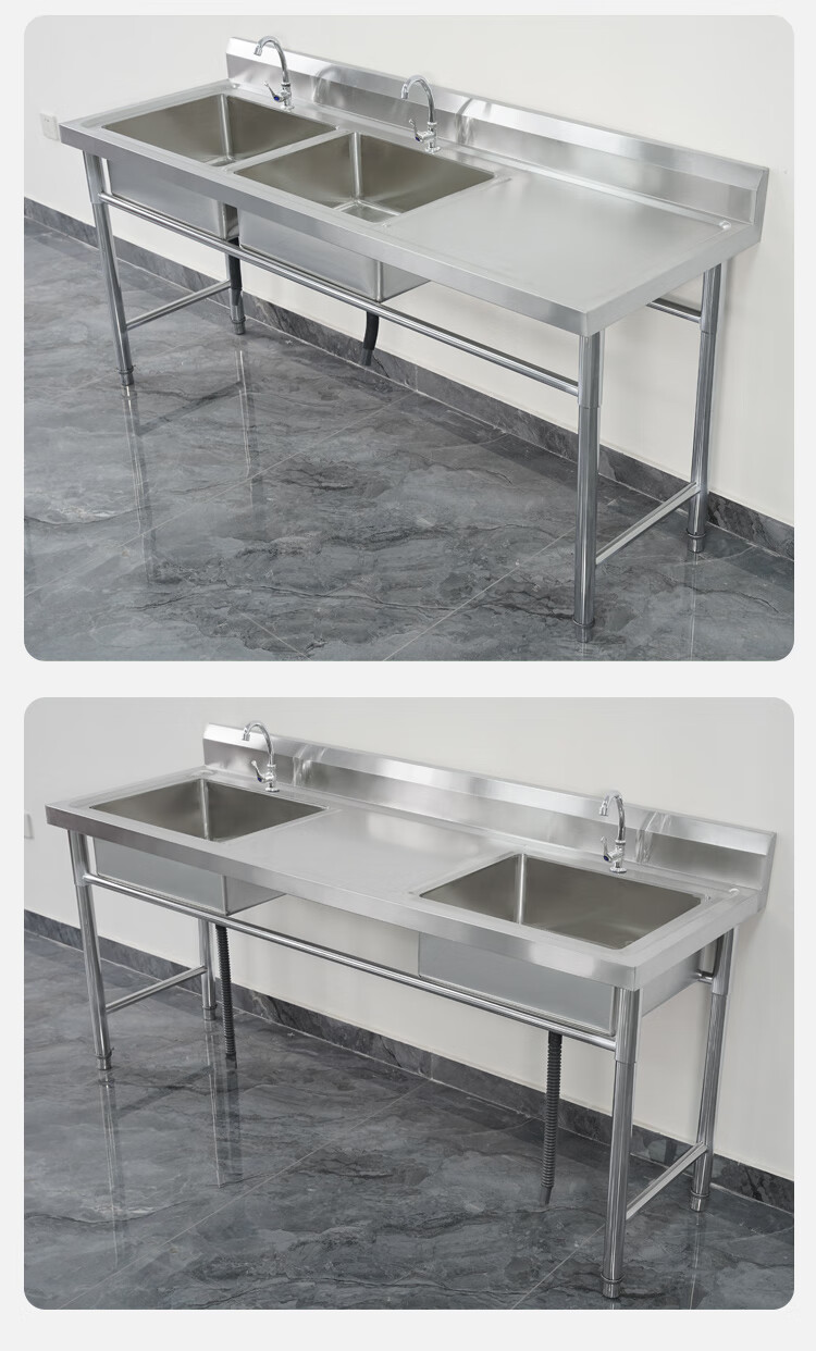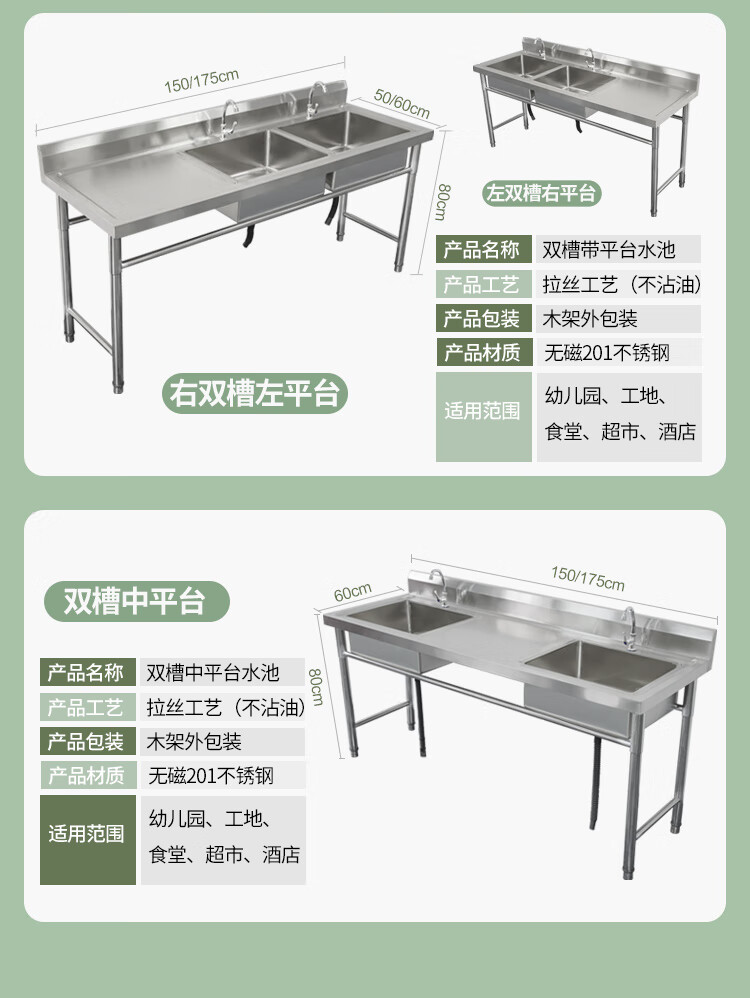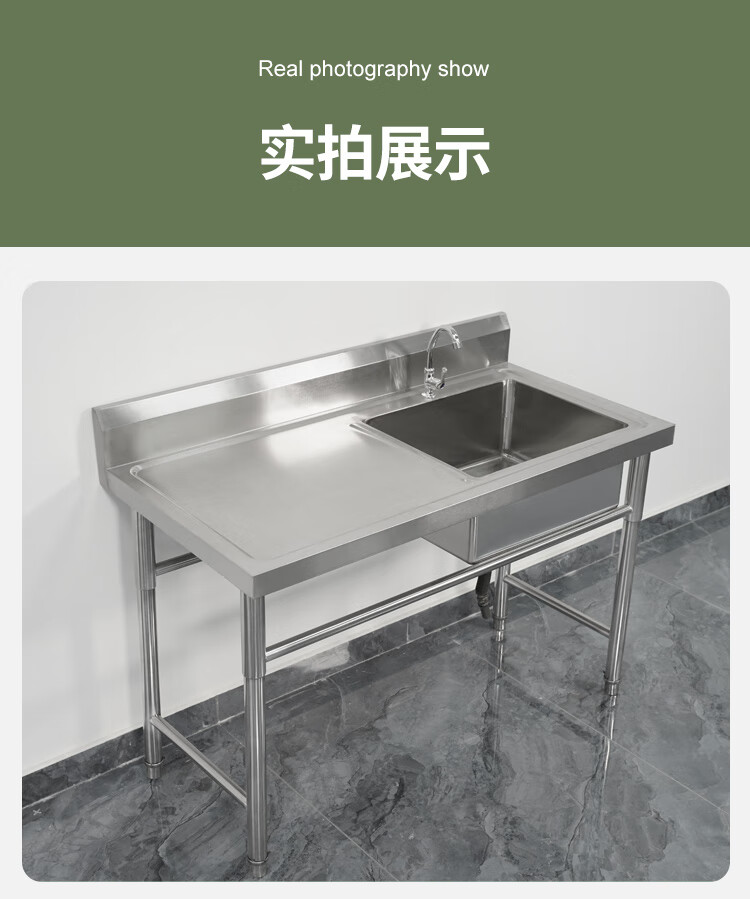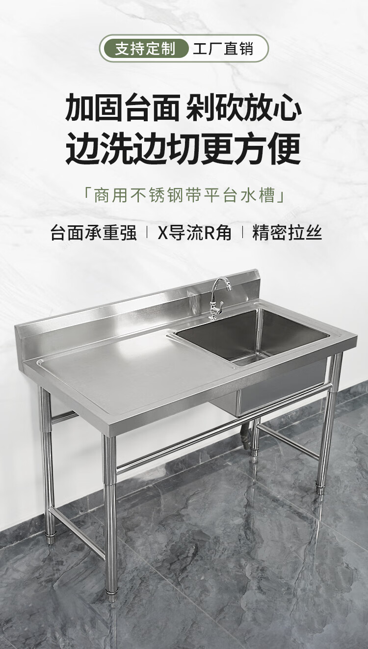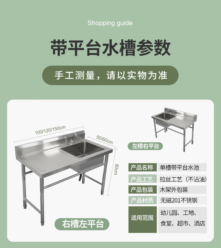 Commercial stainless steel sink with stand kitchen single and double sinks washing dishes and vegetables wash basin with platform canteen ordinary model 120*60*80 single pool left platform