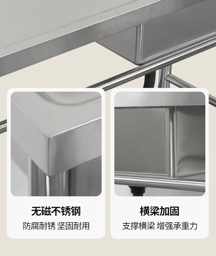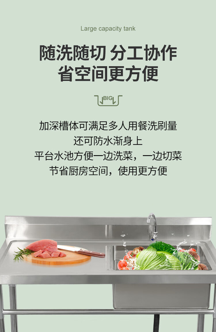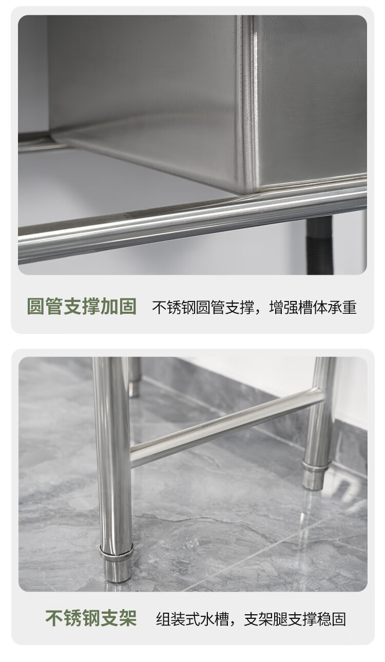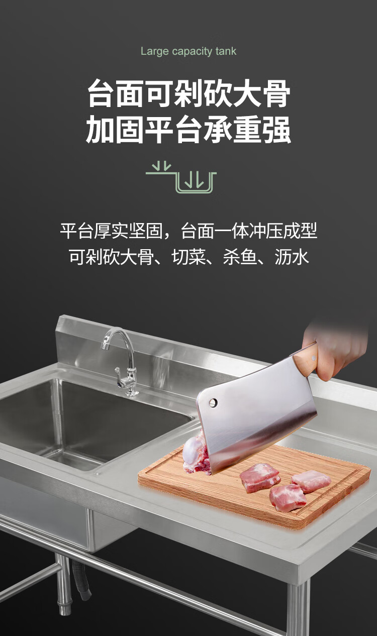 Commercial stainless steel sink with stand kitchen single and double sinks washing dishes and vegetables wash basin with platform canteen ordinary model 120*60*80 single pool left platform