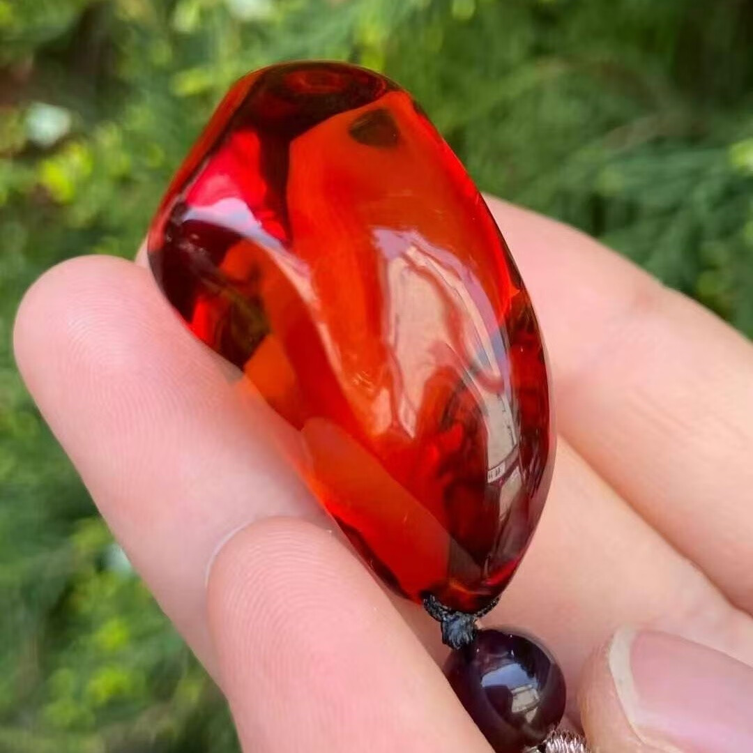 Weici natural Burmese amber high-quality glass-bottomed blood amber pendant pendant stationery craft jewelry