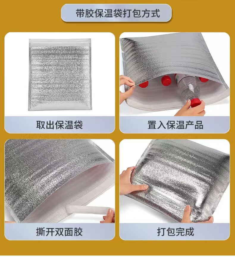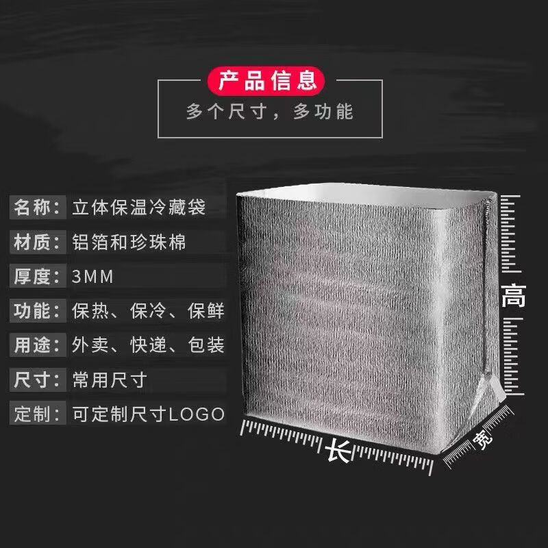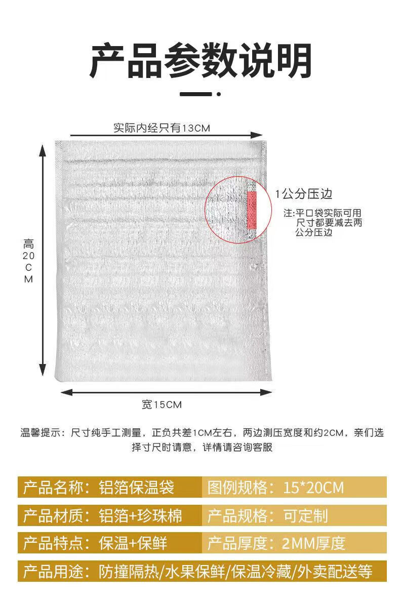 100 takeaway thermal bags, aluminum foil, ice cream, cold-keeping, catering thermal bags, fresh-keeping insulation bags, width 25, height 30, with glue, 100 pcs