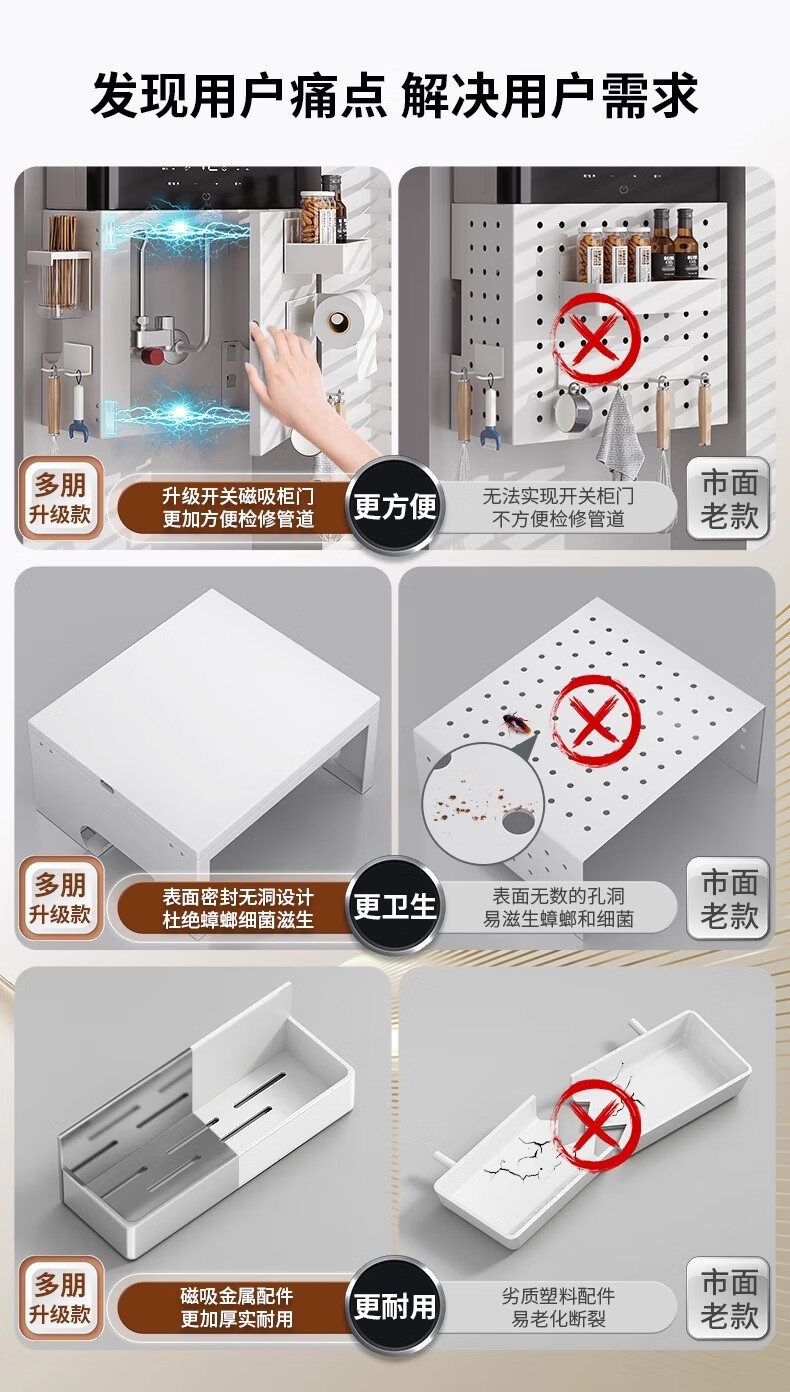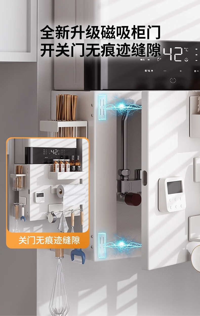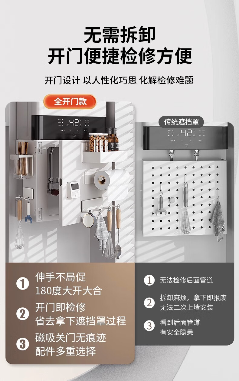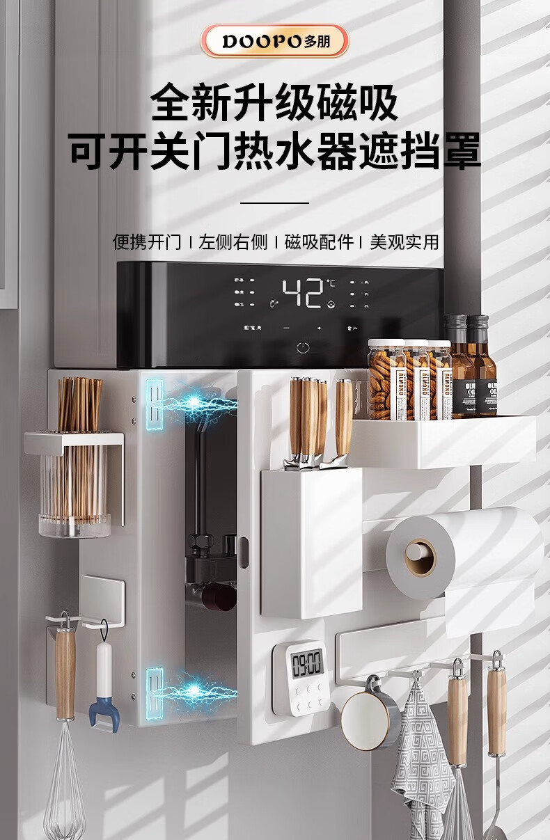 Duopeng gas water heater shield wall-mounted magnetic pipe cover decorative cover hook kitchen hole board storage rack 38*40*20 five-piece set single door