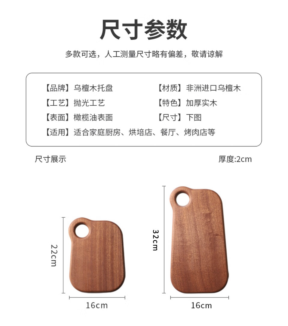 Ebony whole wood cutting board solid wood with handle thickened sticky board resistant to chopping chopping board cutting board kitchen chopping board whole wood handle cutting board 30*20*2