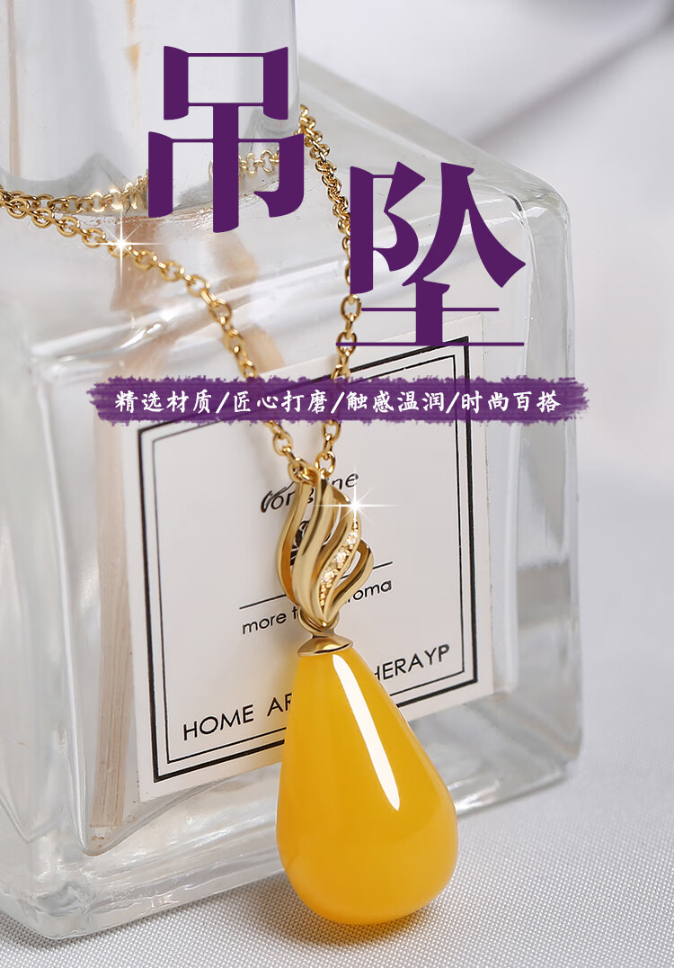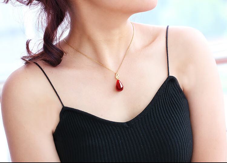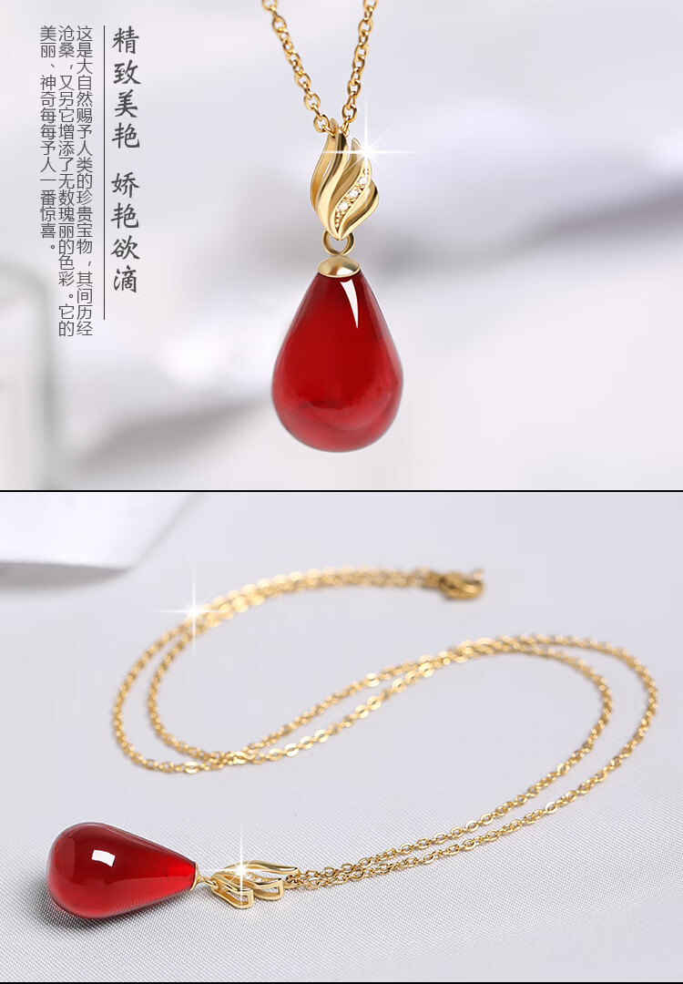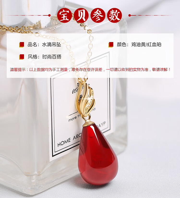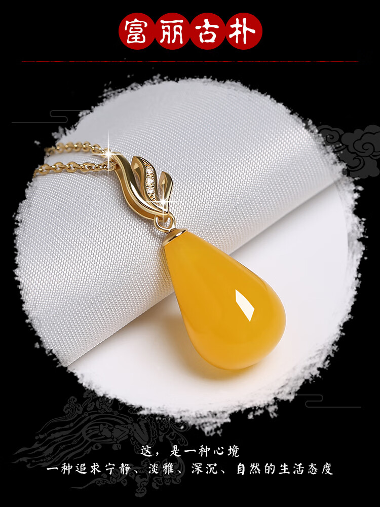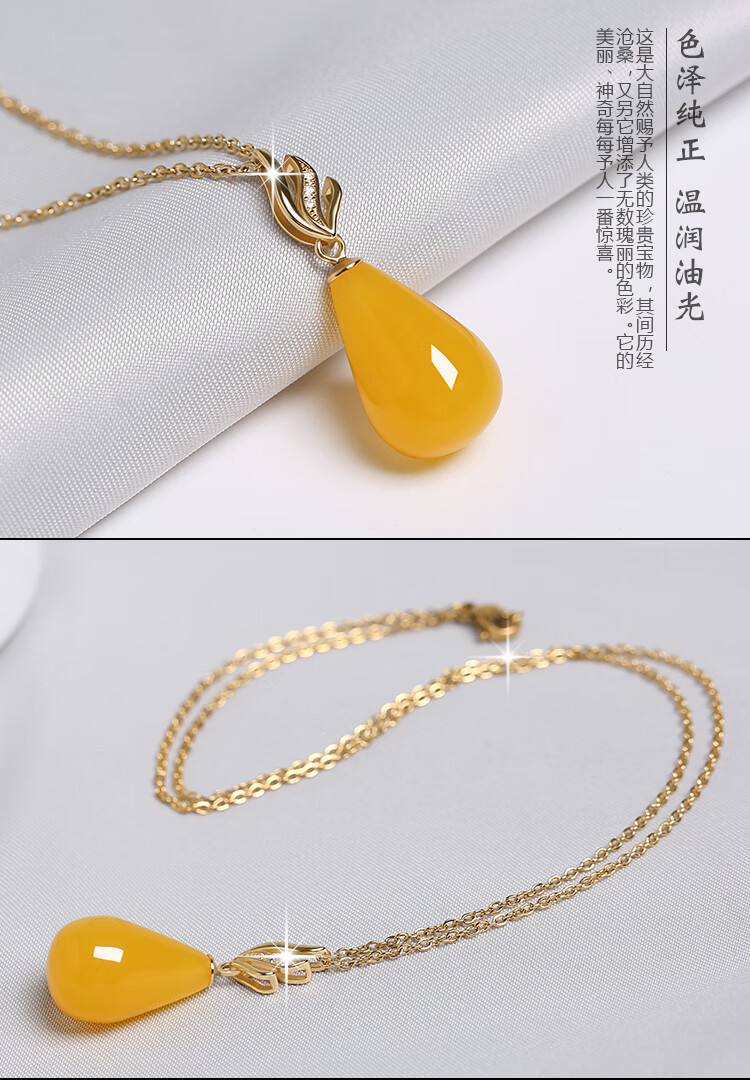 Fat Donglai's same style 2025 new beeswax pendant wine red blood amber drop-shaped clavicle chain women's silver necklace necklace chicken fat yellow beeswax drop + clavicle chain