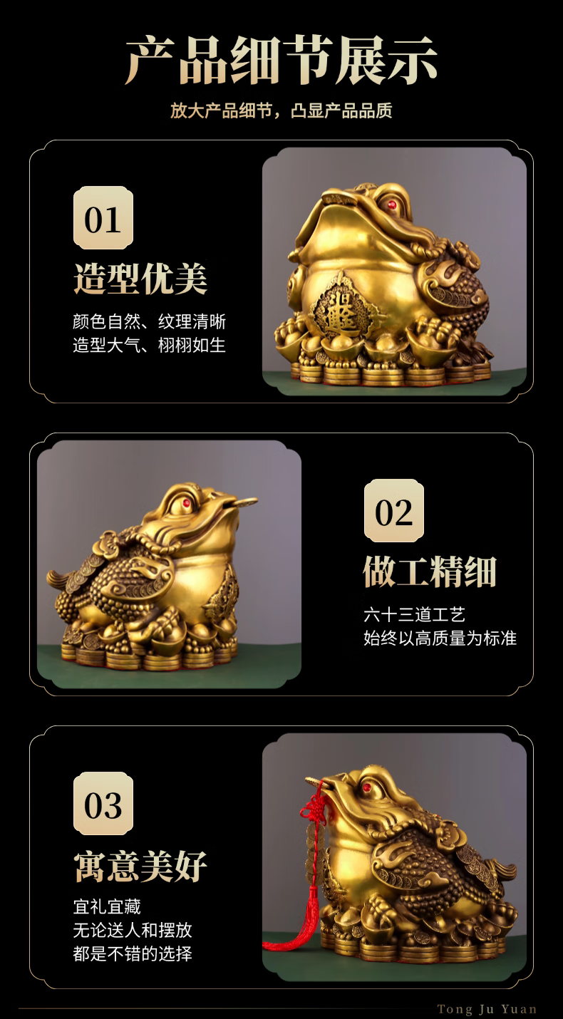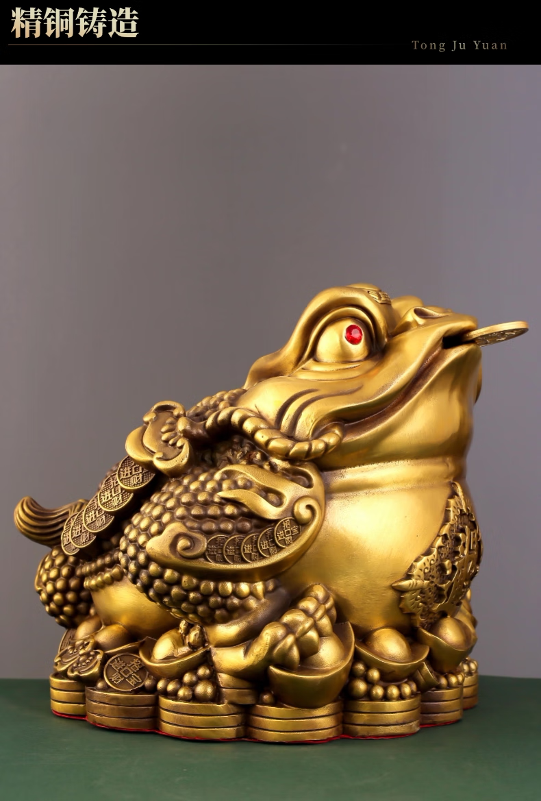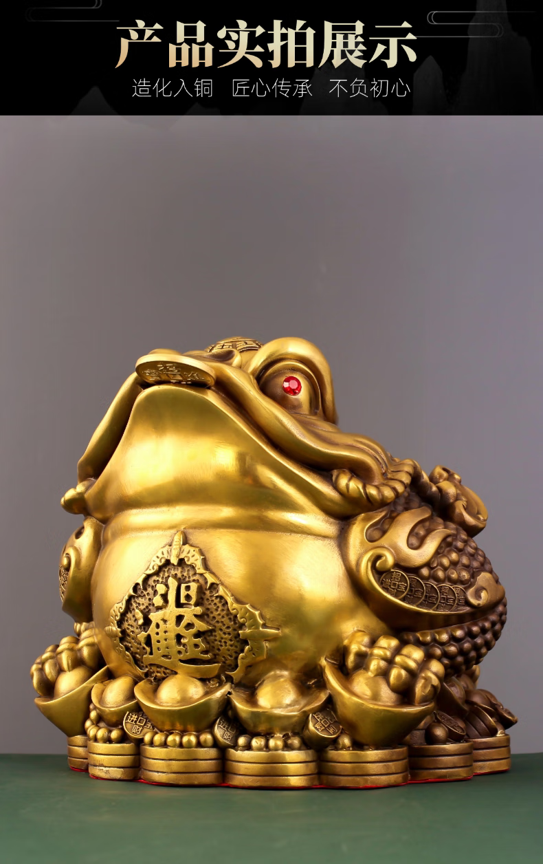 Wen Yijia Copper Golden Toad Ornament Lucky Toad Office Living Room Tea Pet Lucky Ornament Home Prosperous House Daily Jin Dou JY Money Daily Jin Toad 6 inches Comes with base