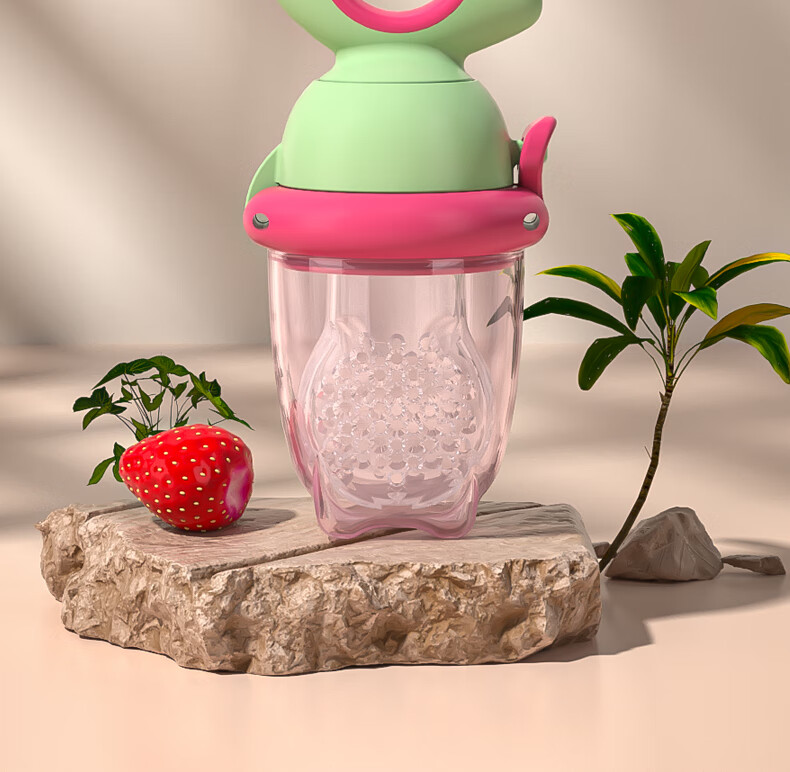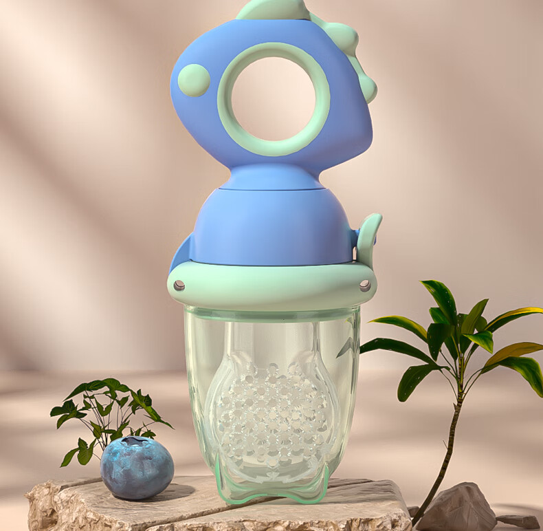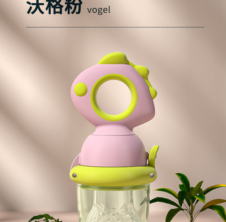 Tiantou baby food bite bag fruit and vegetable happy fruit artifact teething stick can rotate to push pacifier feeding tool color box-dinosaur style-pink 1 pack