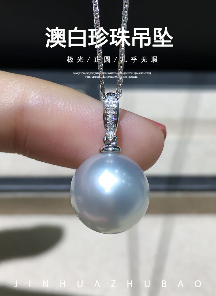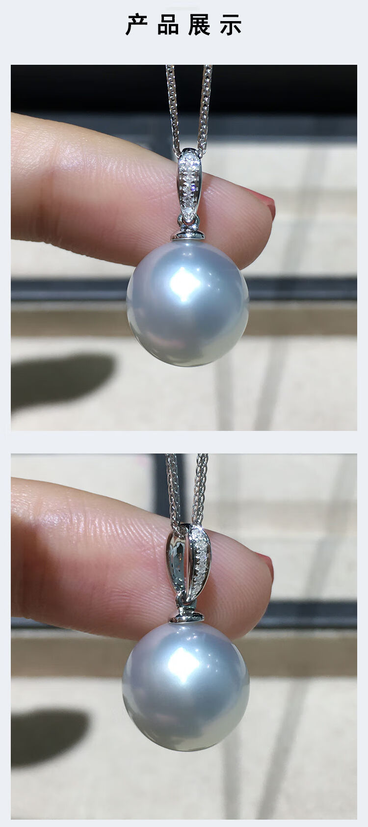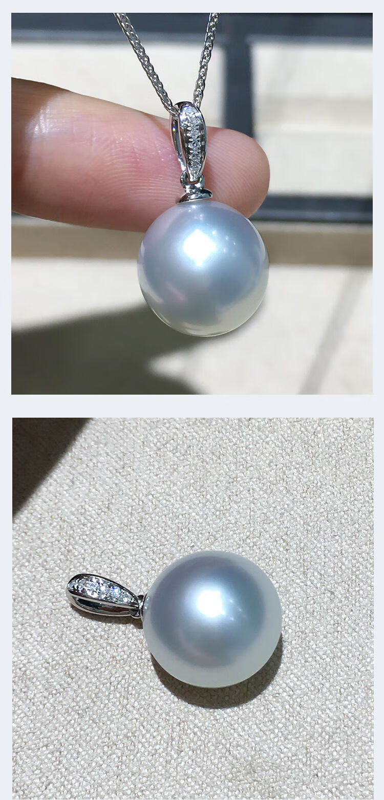 Sen used cold light Australian white pearl pendant, natural South Sea white beads, 18K gold diamond seawater pearl necklace, round melon seed buckle, 18K Birkin diamond + slightly blemished Australian white (excluding chain 15-16mm