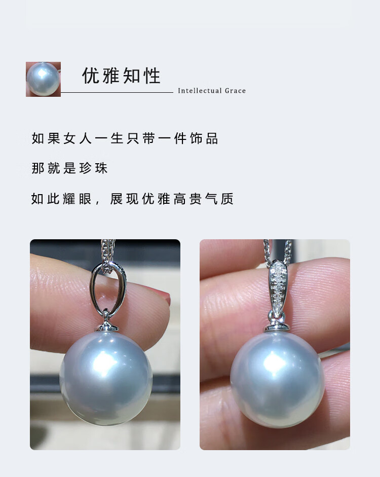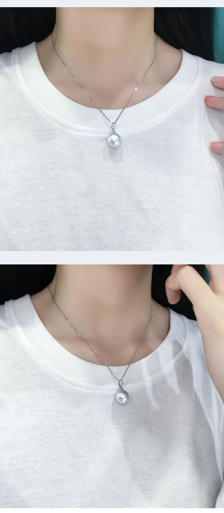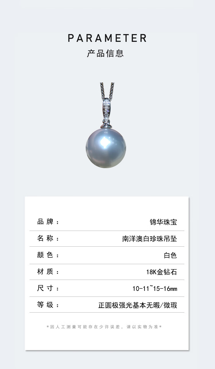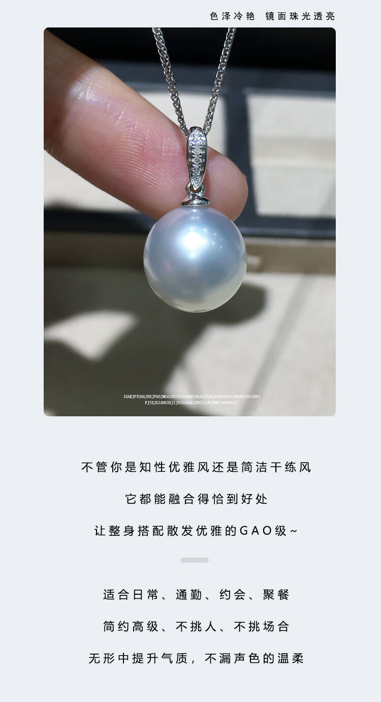Sen used cold light Australian white pearl pendant, natural South Sea white beads, 18K gold diamond seawater pearl necklace, round melon seed buckle, 18K Birkin diamond + slightly blemished Australian white (excluding chain 15-16mm