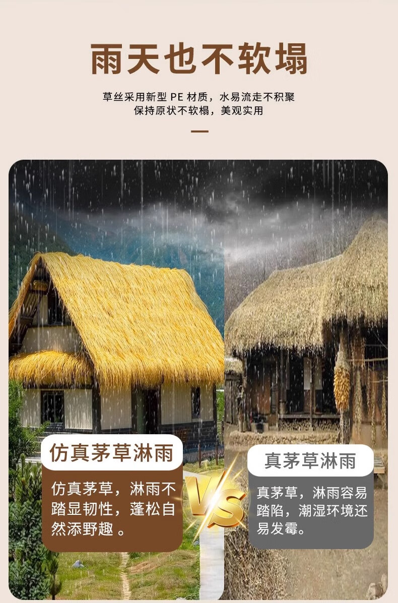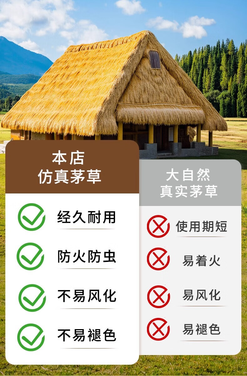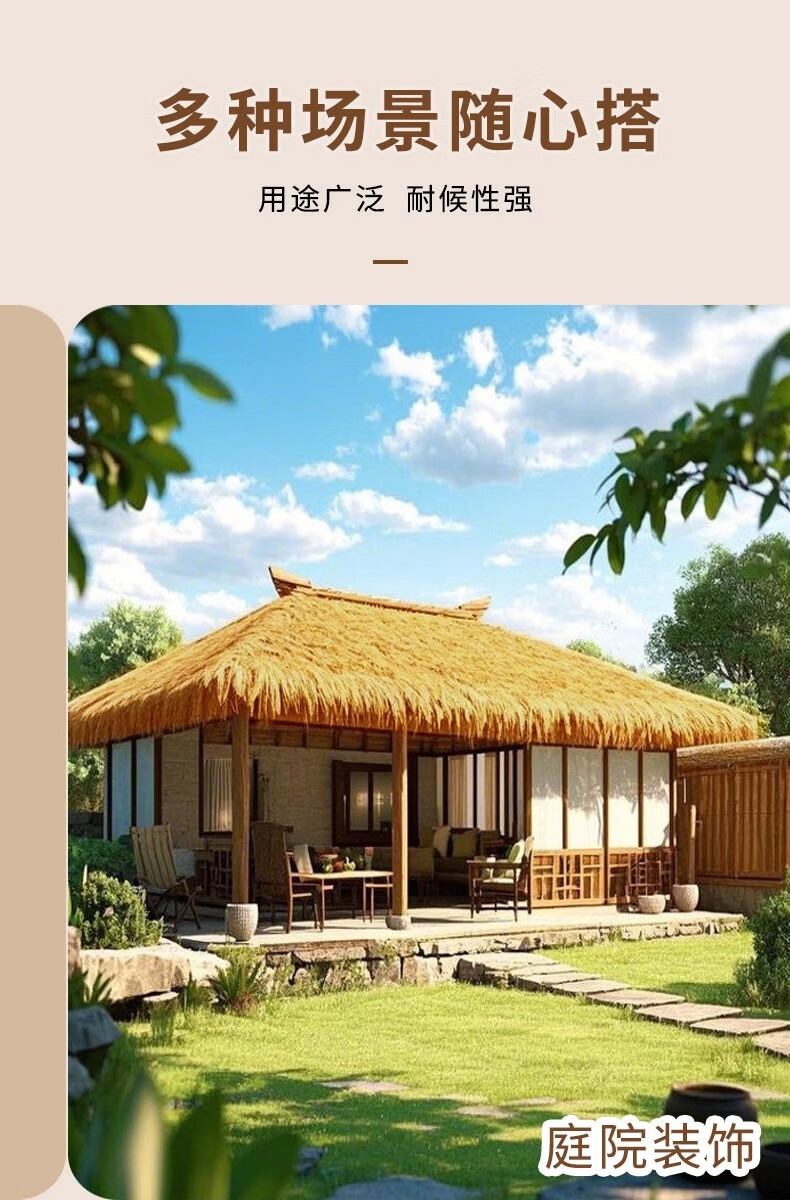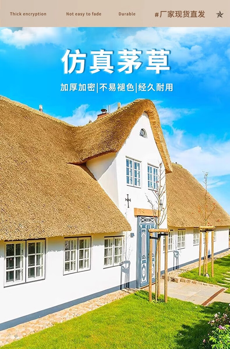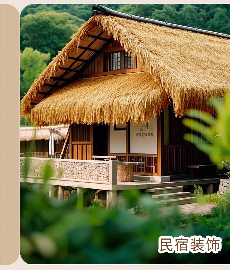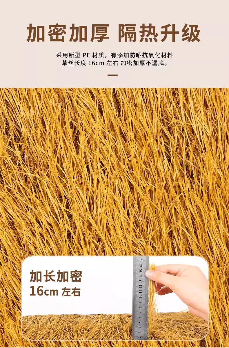 Elegant simulated thatched roof, fake straw insulation, outdoor artificial fur grass pavilion B&B wooden house, encrypted and waterproof (1 meter wide * 8 meters long)