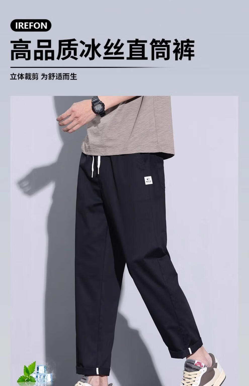Jeanswest Autumn Thin Casual Pants Men's Trendy Brand Loose Straight 2025 New Ice Silk Sports Long Pants Light Green M 27/28 Size