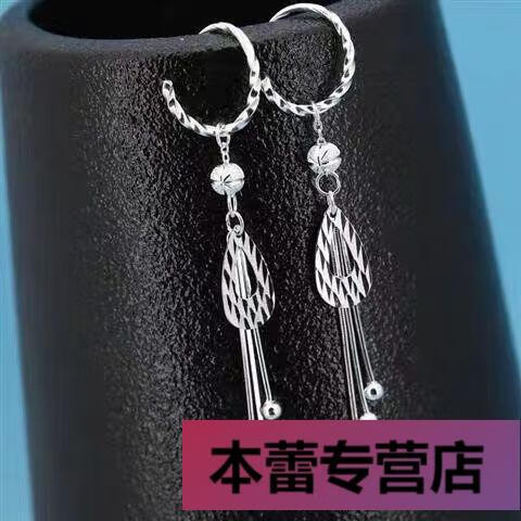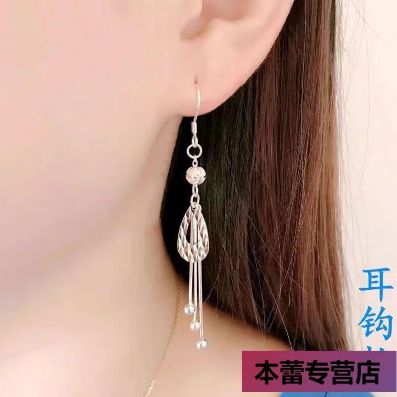OFK Hong Kong Silver 9999 Sterling Silver Earrings Feminine and Versatile Water Drop Long Tassel Silver Earrings Hypoallergenic Sterling Silver Transfer Bead Water Drop Earrings 6.78g