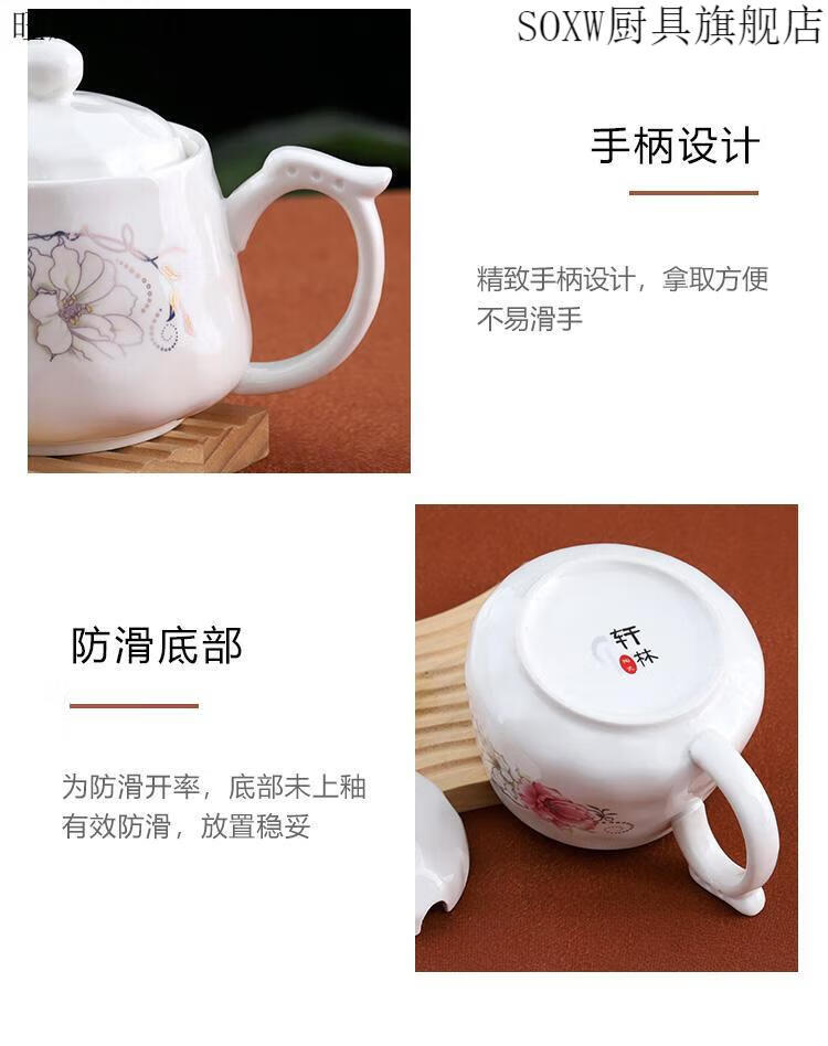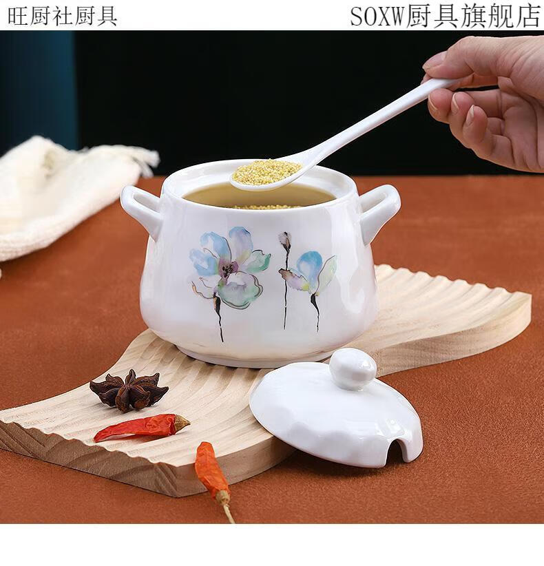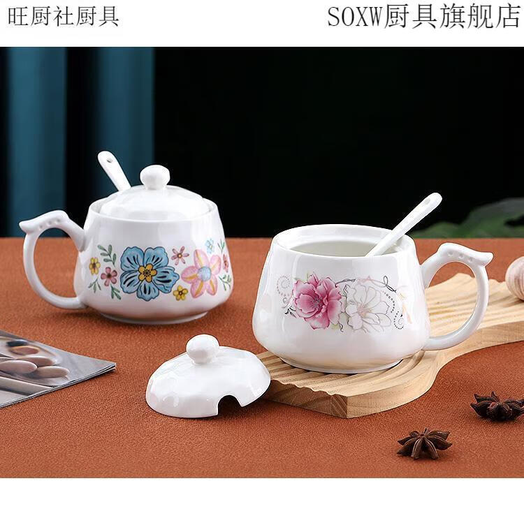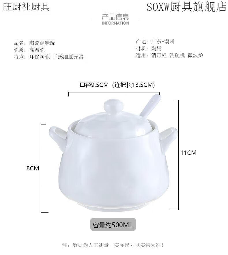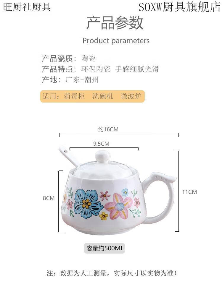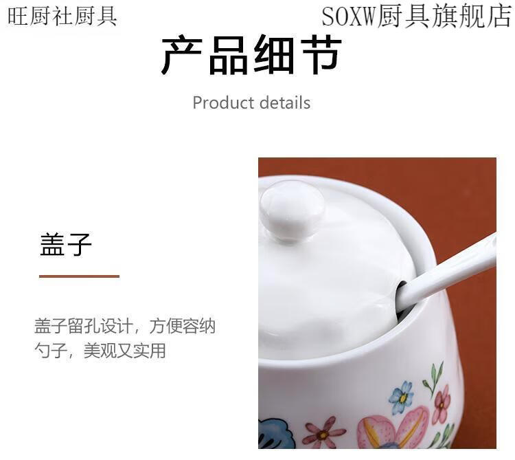 SOXW ceramic large capacity seasoning jar with handle chili oil jar kitchen high temperature resistant lidded spoon double-ear seasoning jar with handle - Huakai Fugui 500ml
