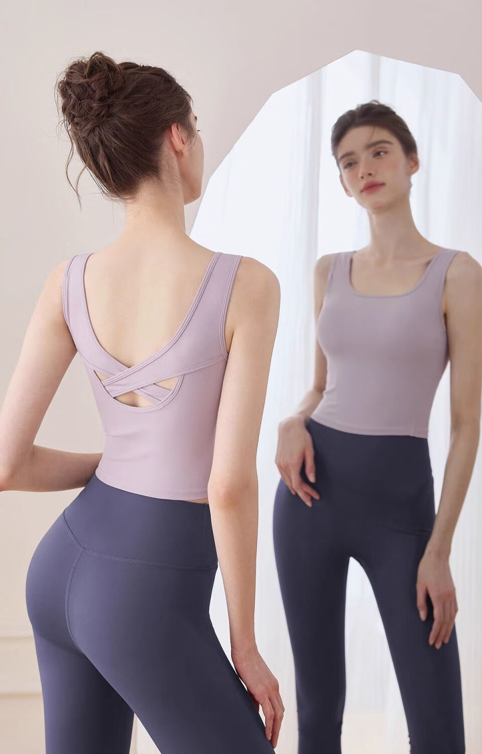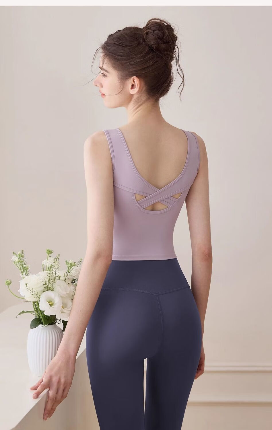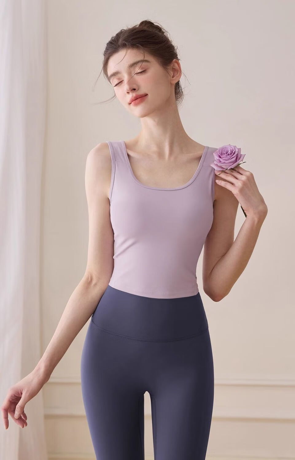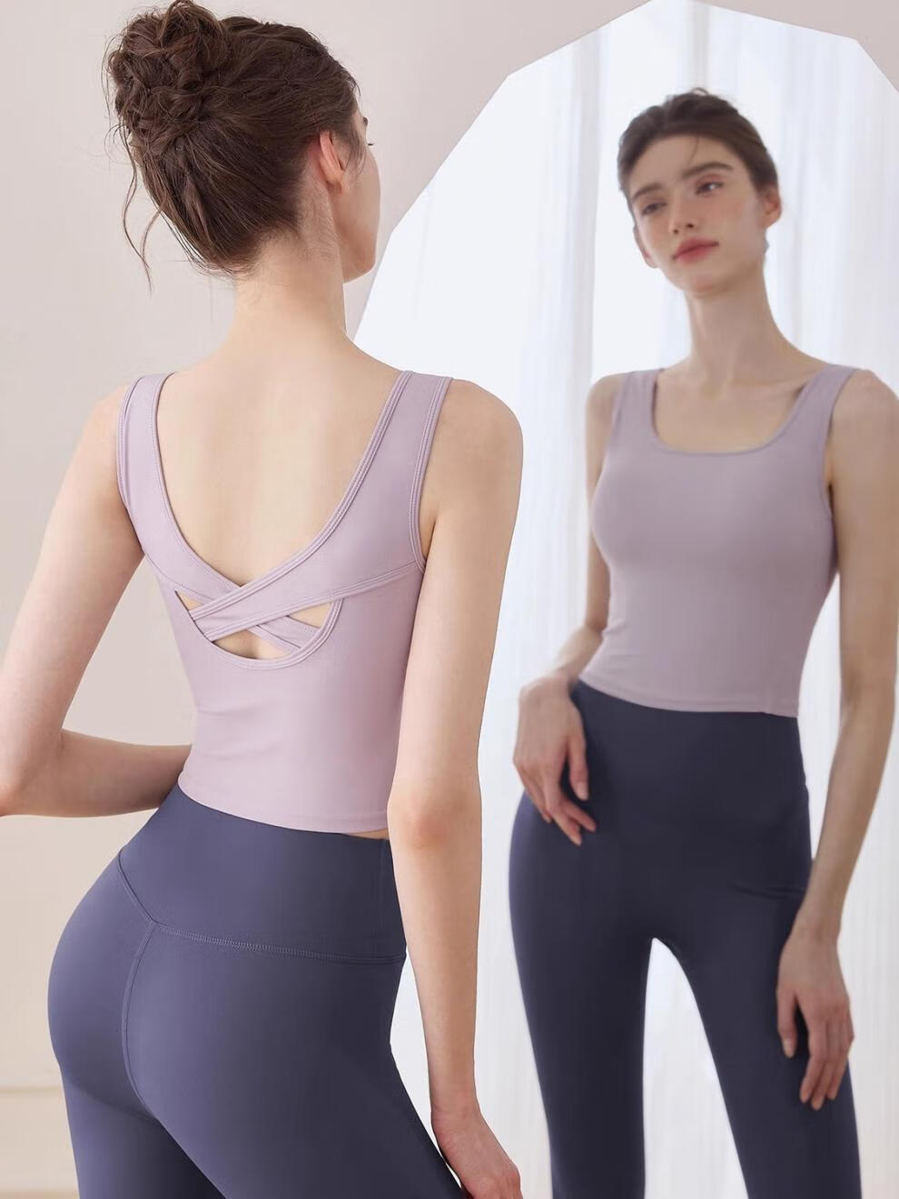 Catman yoga clothes for women 2025 new vest with chest pad Pilates training suit can be worn outside, beautiful spring and summer tops, hyacinth purple vest 2XL recommended 140-155 Jin Jin equals 0.5 kg
