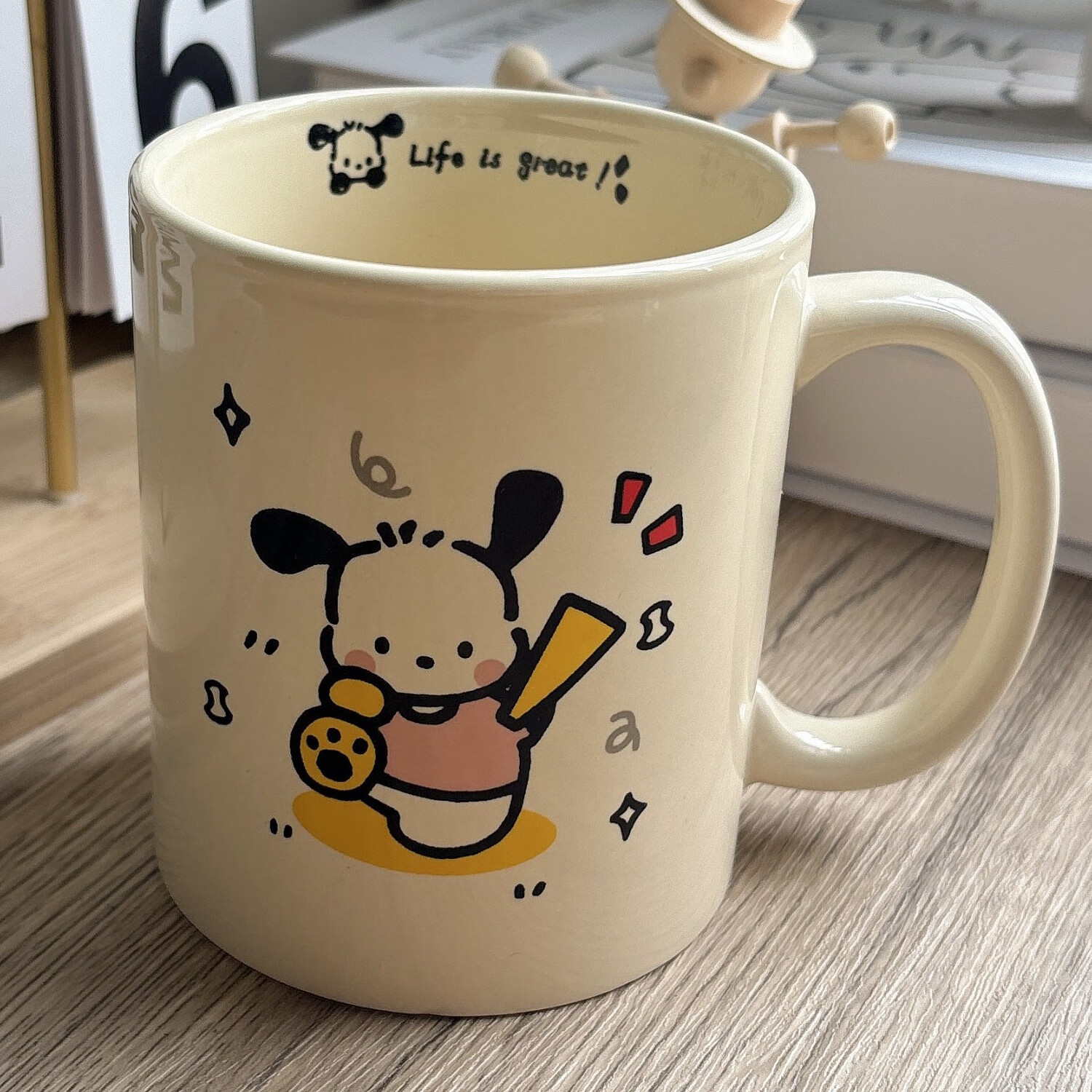Cute fireworks pacha puppy mug cup high-looking simple couple ceramic cup ins feng shui cup household off-white 1 piece 350ml